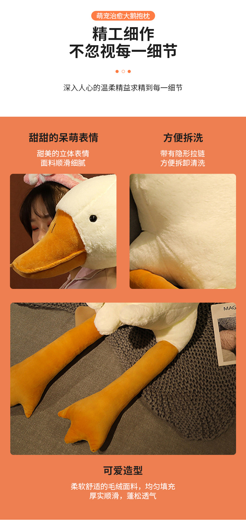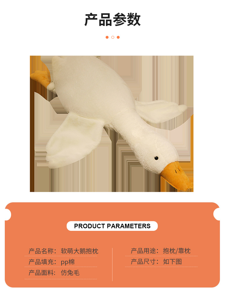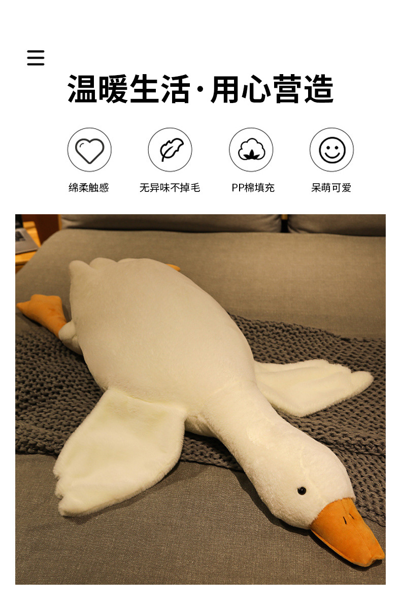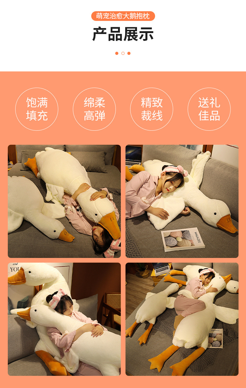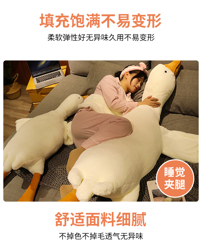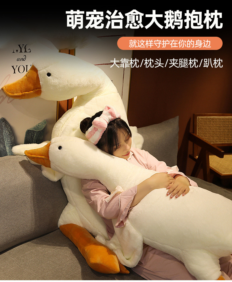 Almohada de ganso blanco grande de peluche de juguete grande muñeca de ganso con muñeca para dormir Ragdoll dormir pierna clip regalo de cumpleaños para las niñas
