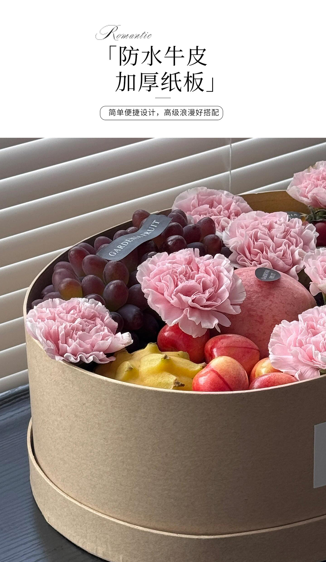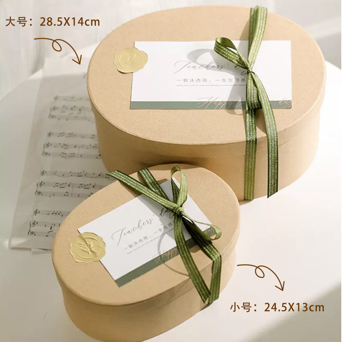 Caja de regalo de papel kraft oval, caja de flores de frutas, caja de flores de regalo de cumpleaños, caja de embalaje de flores, caja de materiales de frutas
