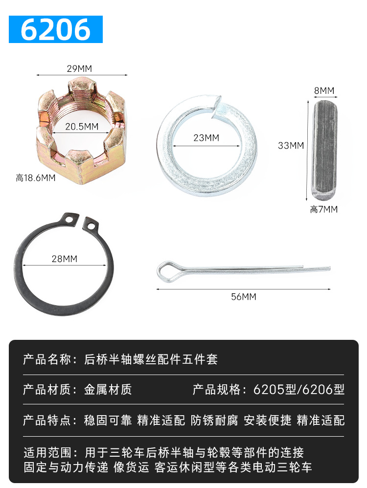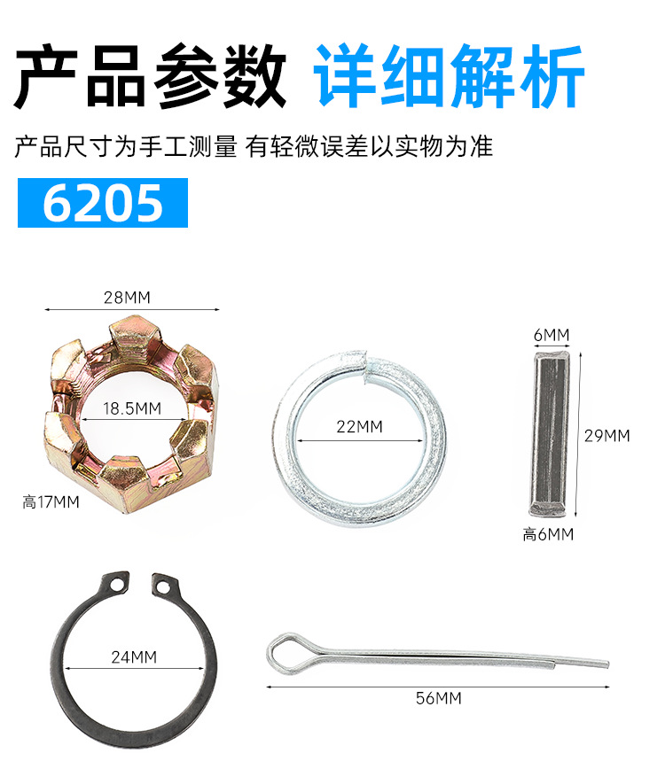 | Especificaciones de embalaje | Juego de tornillos de medio eje 6205,Juego de tornillos de medio eje 6206 |