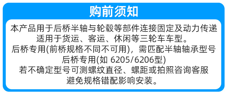 Adaptado a la junta de tornillo de fijación de medio eje de triciclo Jinpeng Zongshen