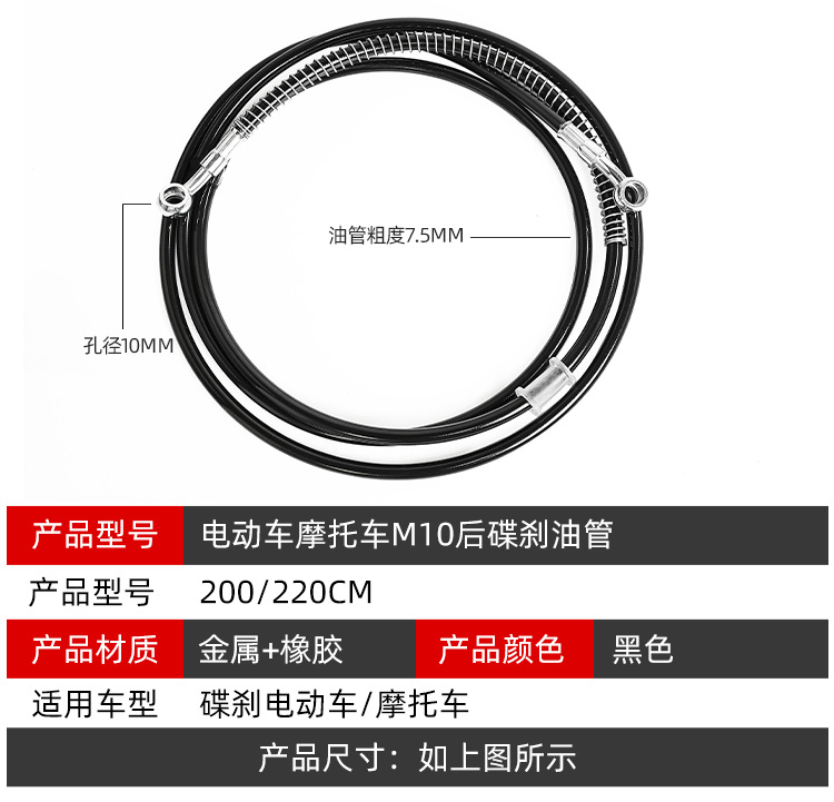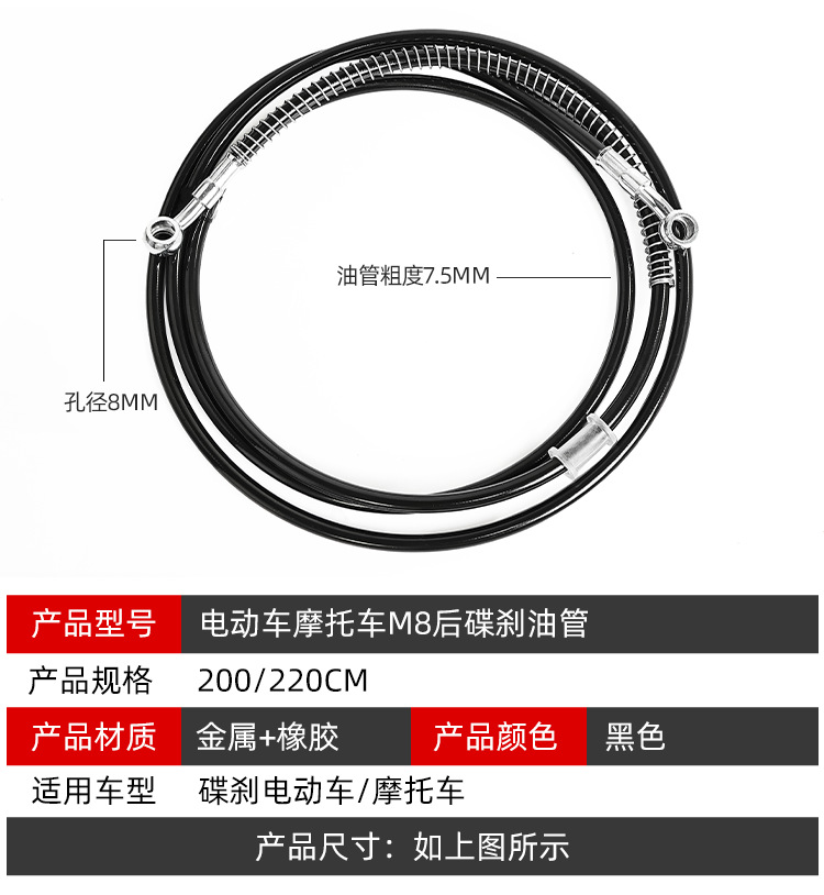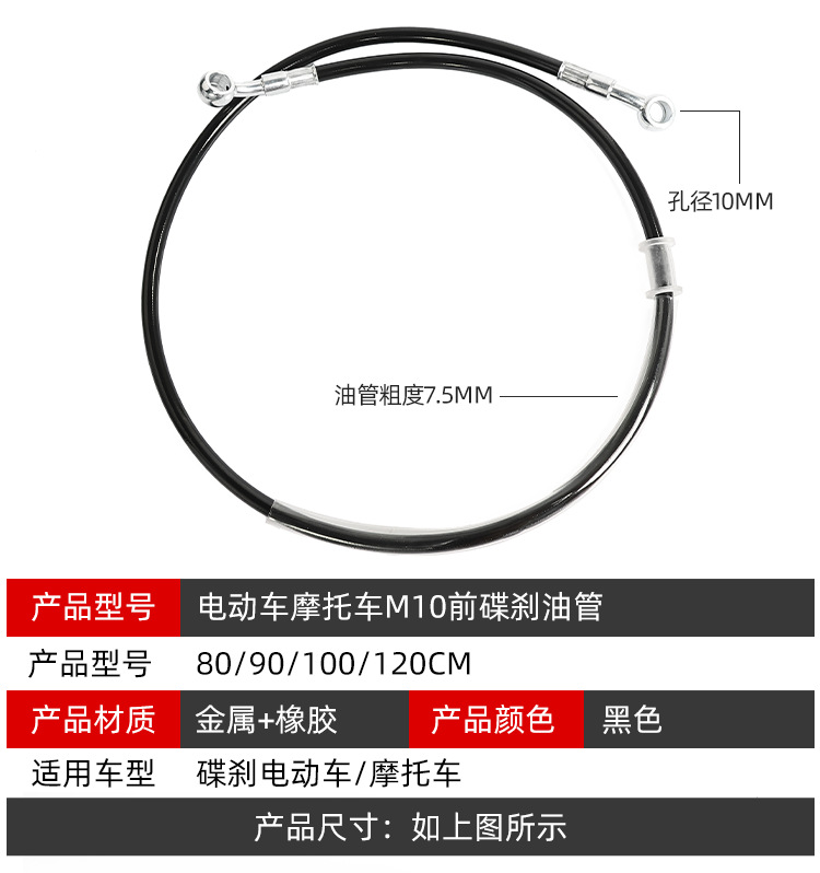 Aplicable Tailing Yadi No. 9 coche eléctrico freno de disco tubo de aceite freno delantero y trasero de motocicleta tubo de aceite de freno M8/10MM