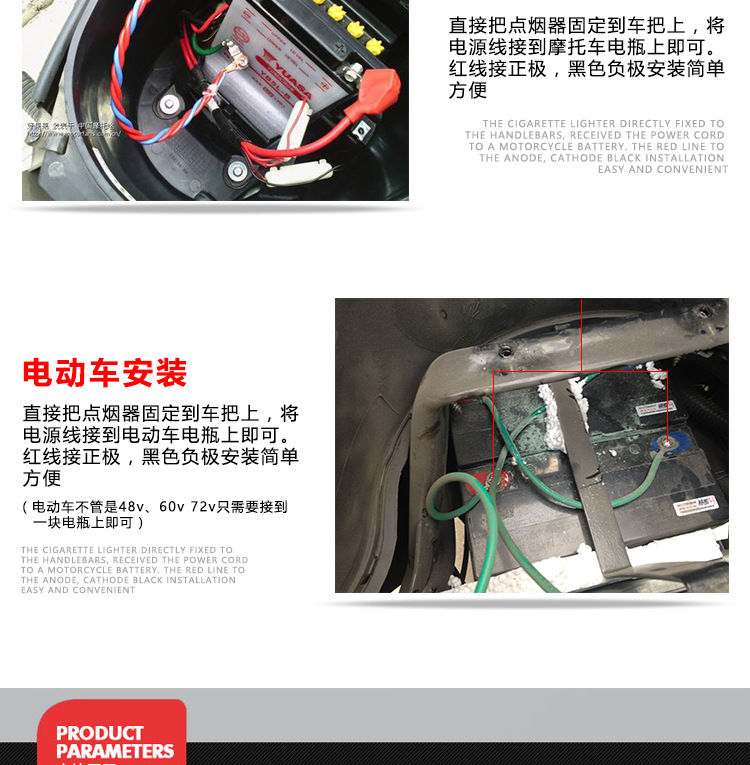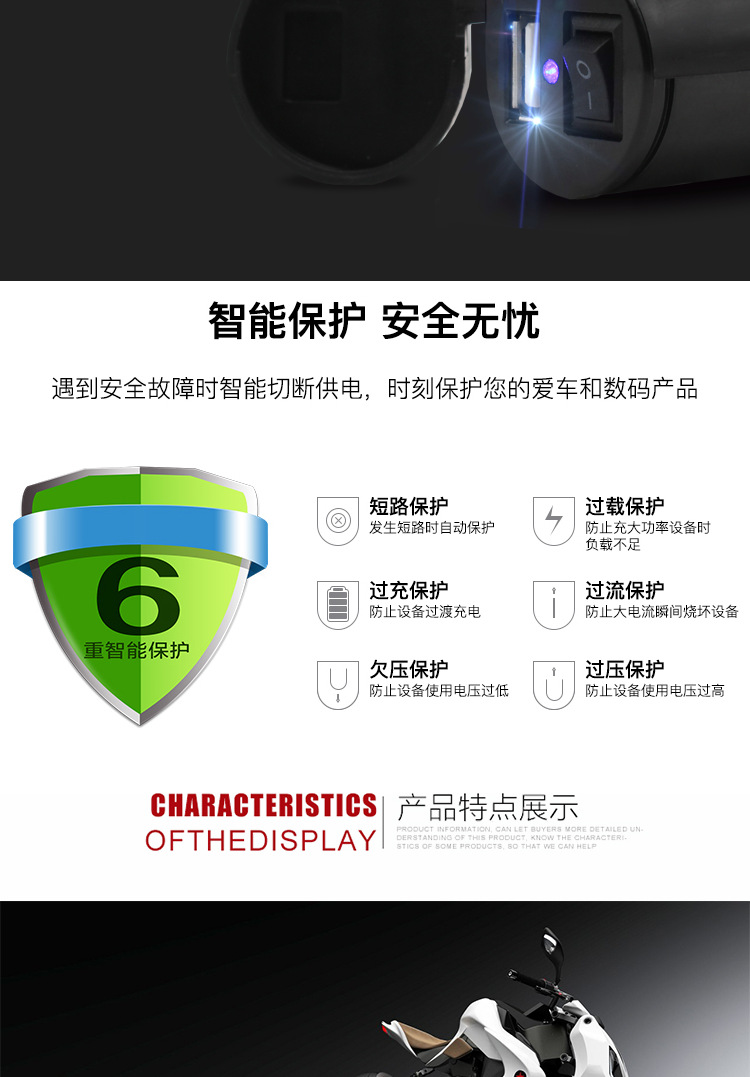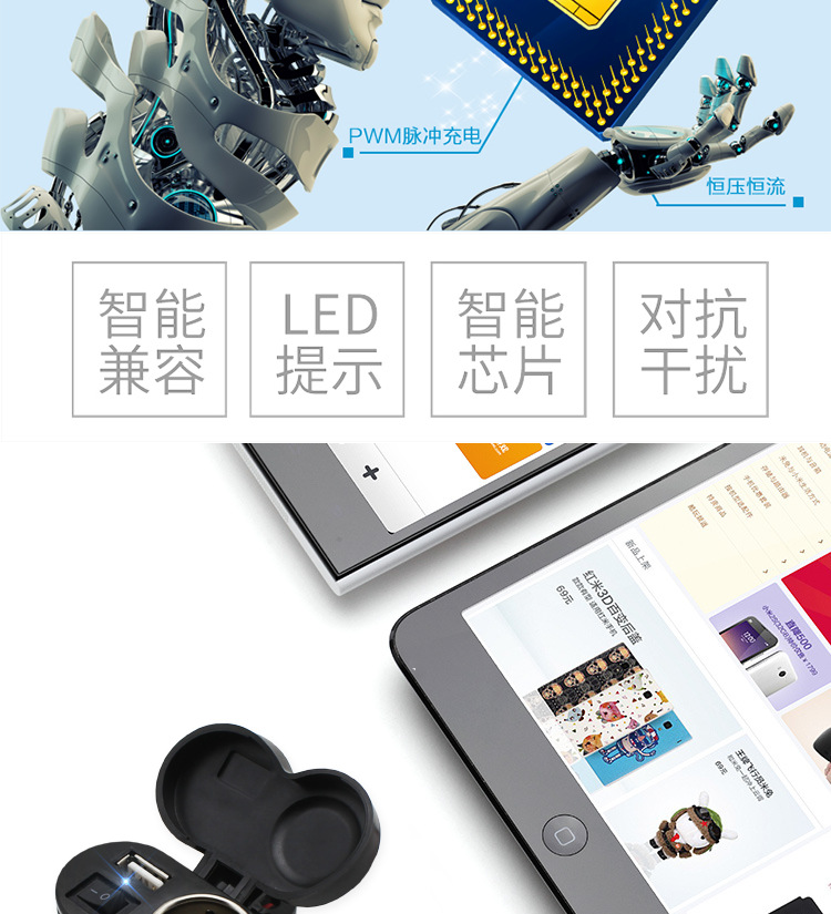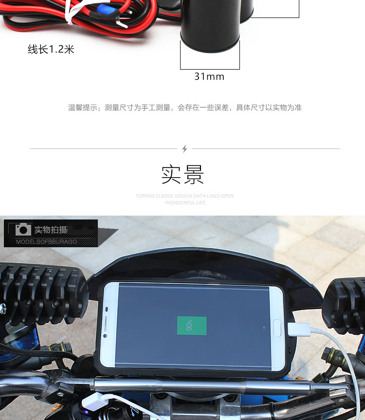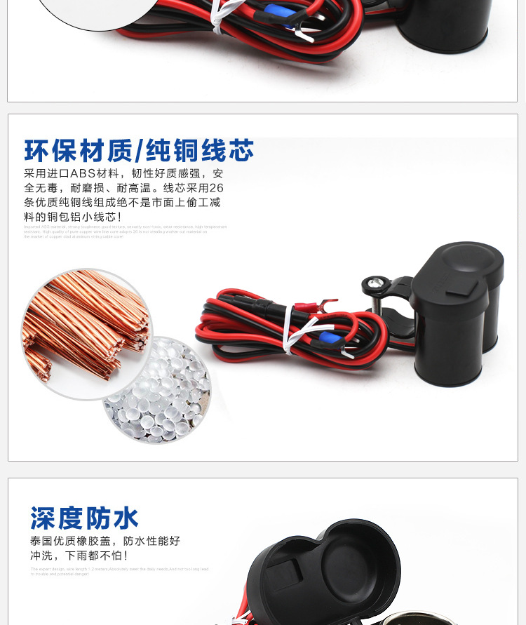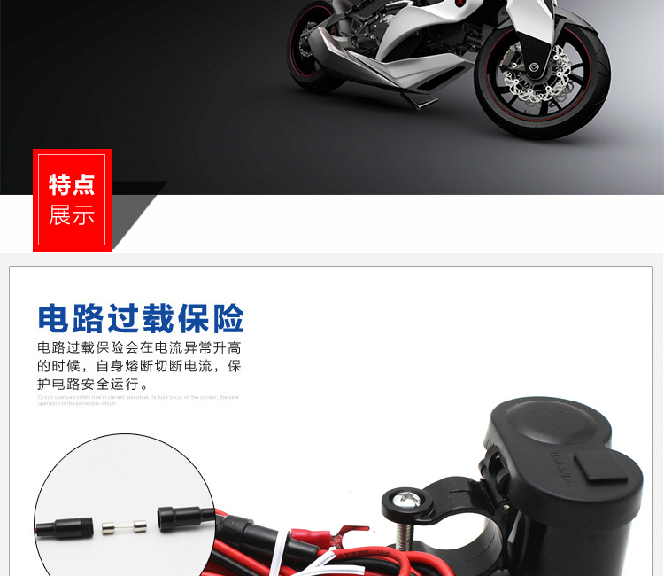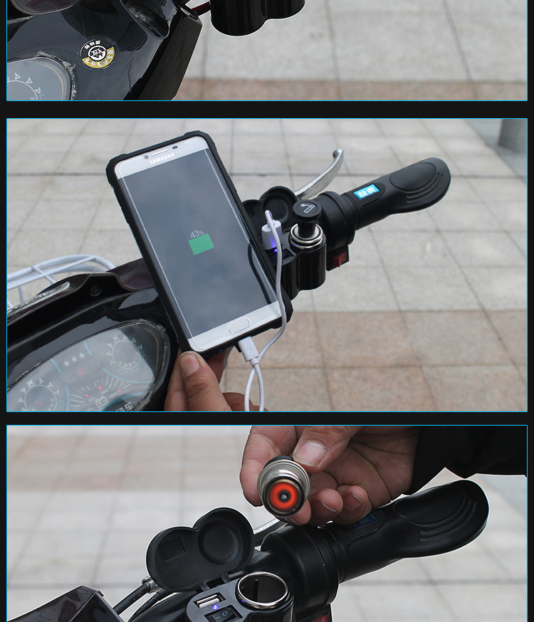 Manillar de automóvil eléctrico equipado con encendedor USB impermeable para motocicleta cargador de carga rápida de teléfono móvil 12 - 24V