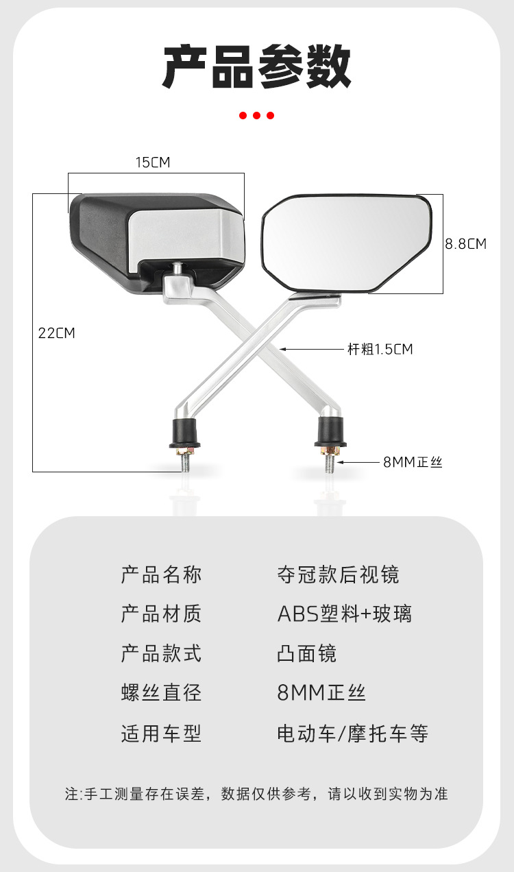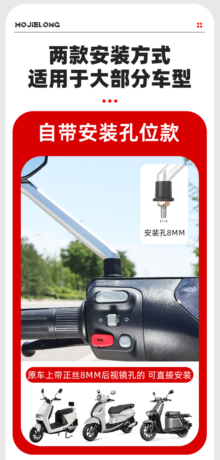 Suministro directo de fábrica de motocicletas eléctricas, espejo retrovisor de vehículos eléctricos, adecuado para espejo de marcha atrás Emma Tailing, scooter, espejo convexo M8