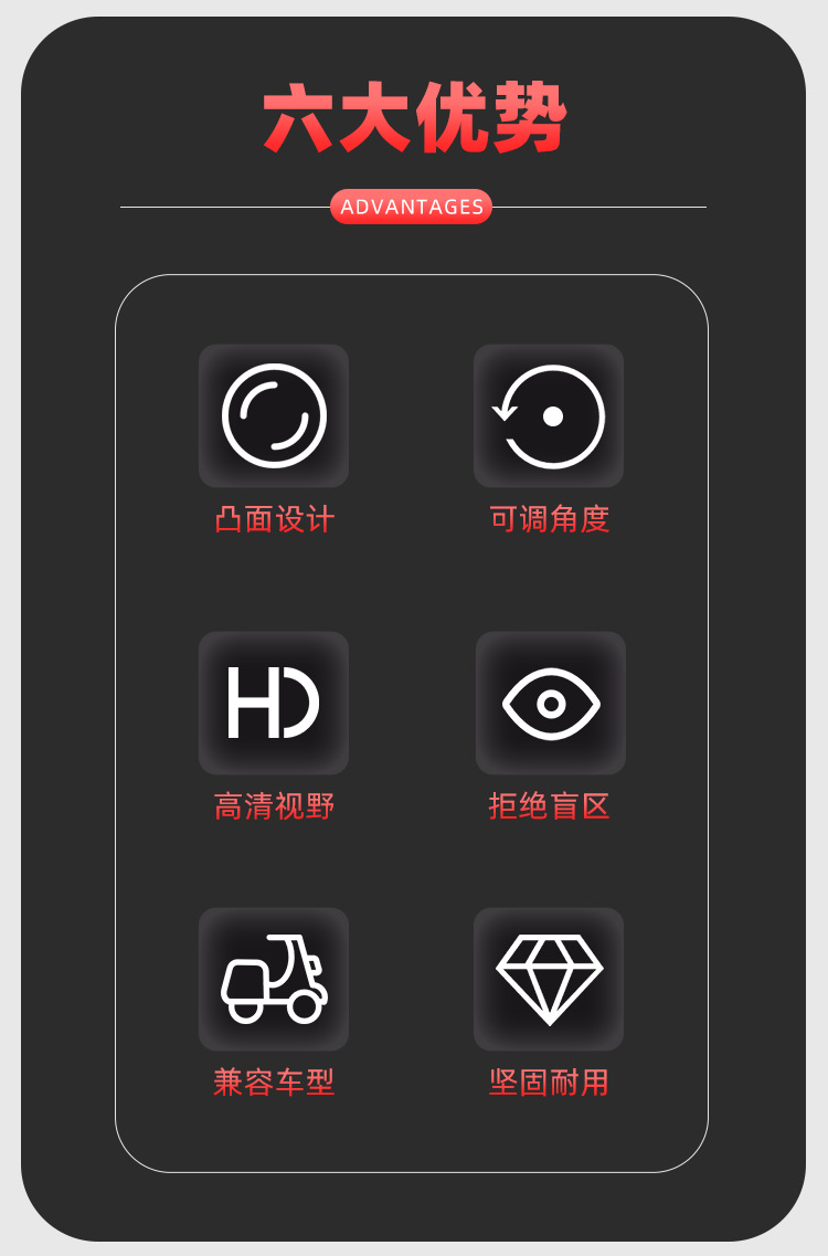 | Especificaciones de embalaje | Espejo retrovisor ganador [1 pago],Asiento de espejo de 8MM con espejo retrovisor ganador [un par] |