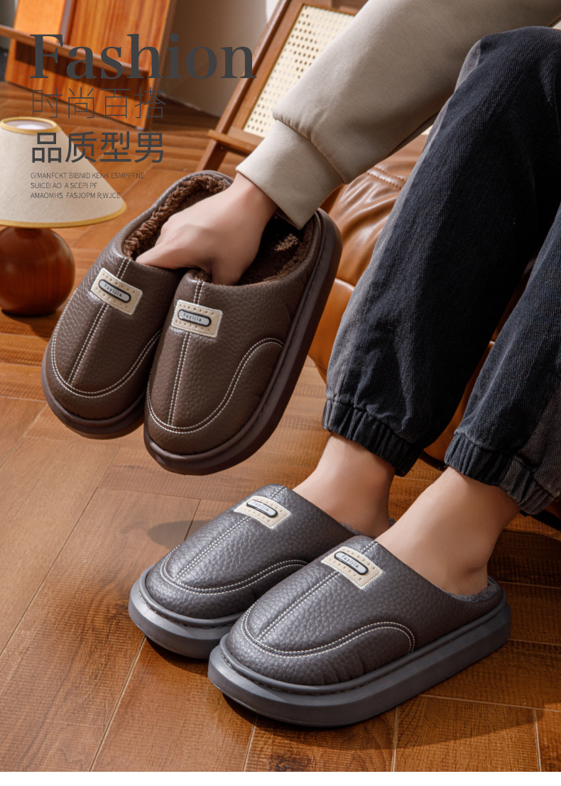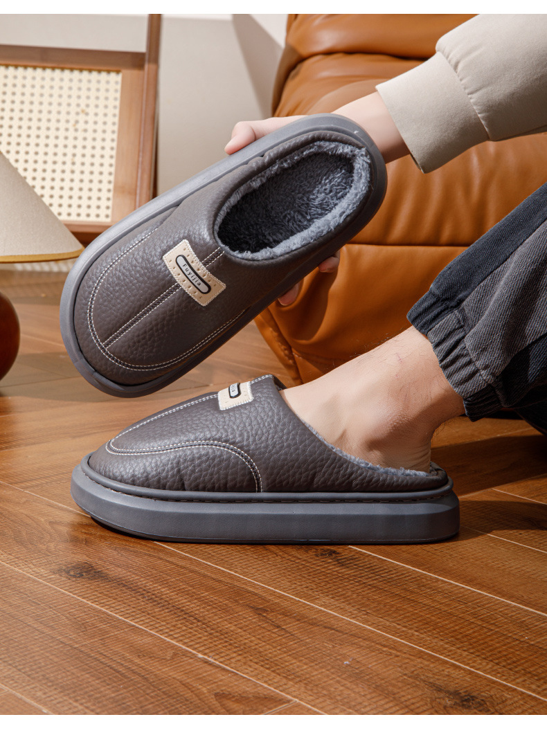 Zapatillas de algodón para hombres de invierno nuevo tamaño extra anti-deslizante interior calentamiento de fondo grueso de algodón grueso para hombres