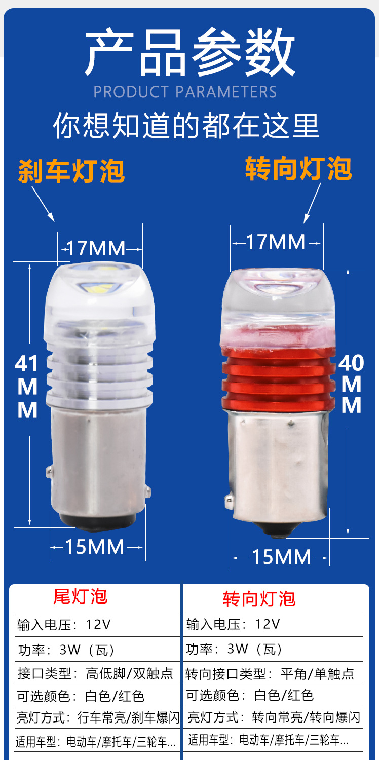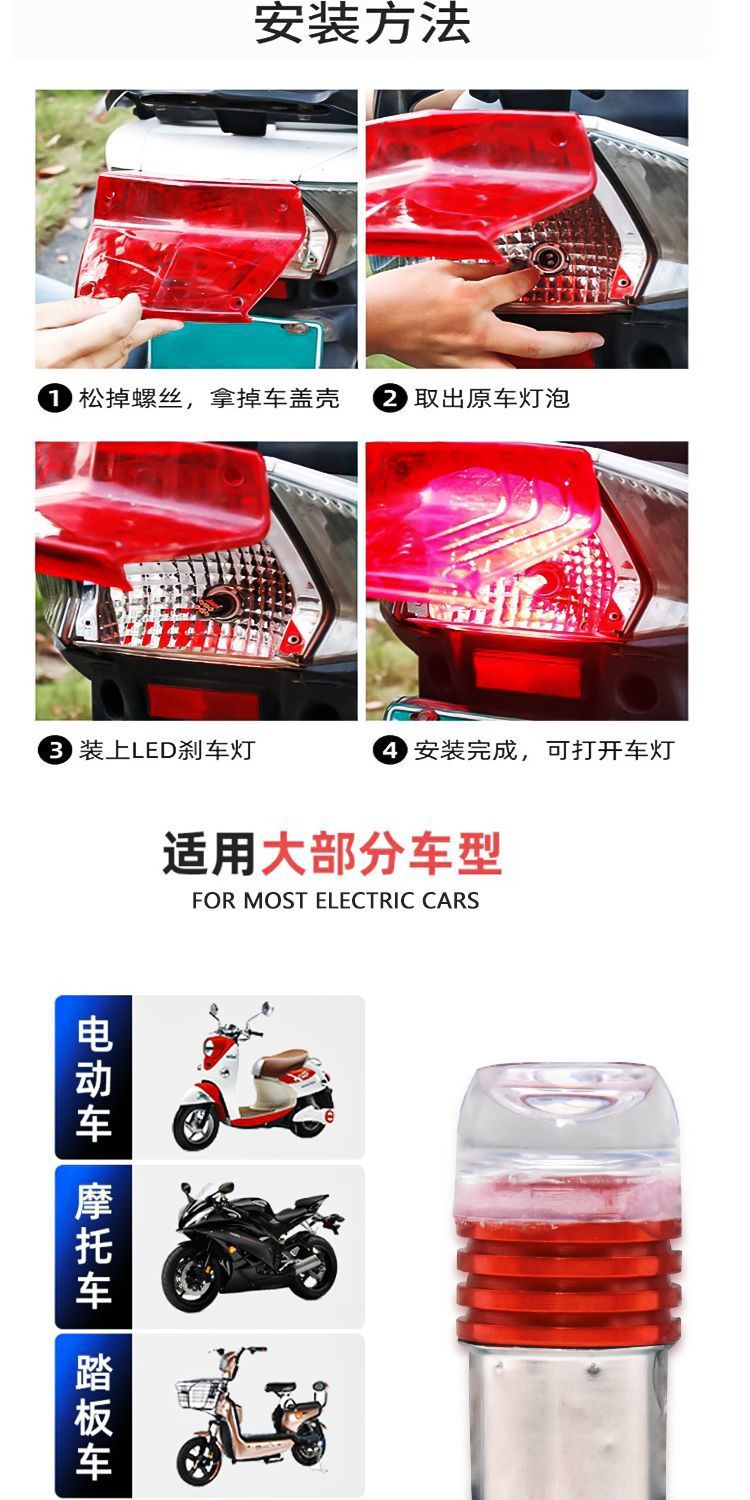Lámpara de dirección de motocicleta eléctrica renovada 12V LED LED LED de curva super brillante parpadeo de luz trasera accesorios de lámpara de freno