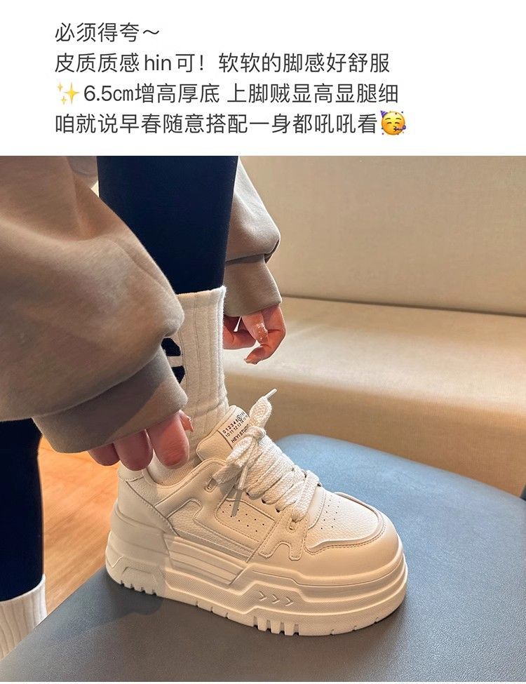 Pequeños zapatos blancos de piel suave con suela gruesa para niños y niñas en otoño de 2025 nuevos zapatos de alto valor de altura de skate casuales