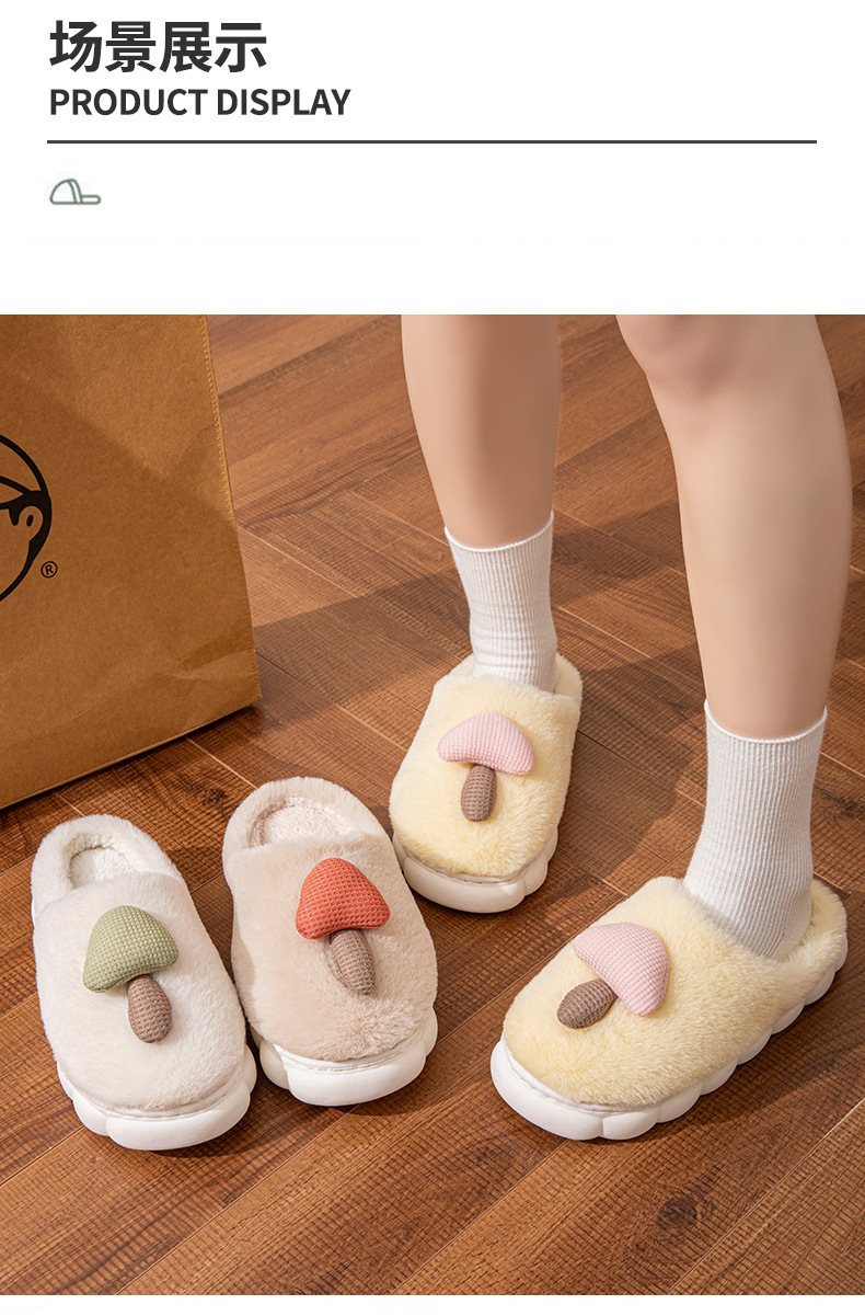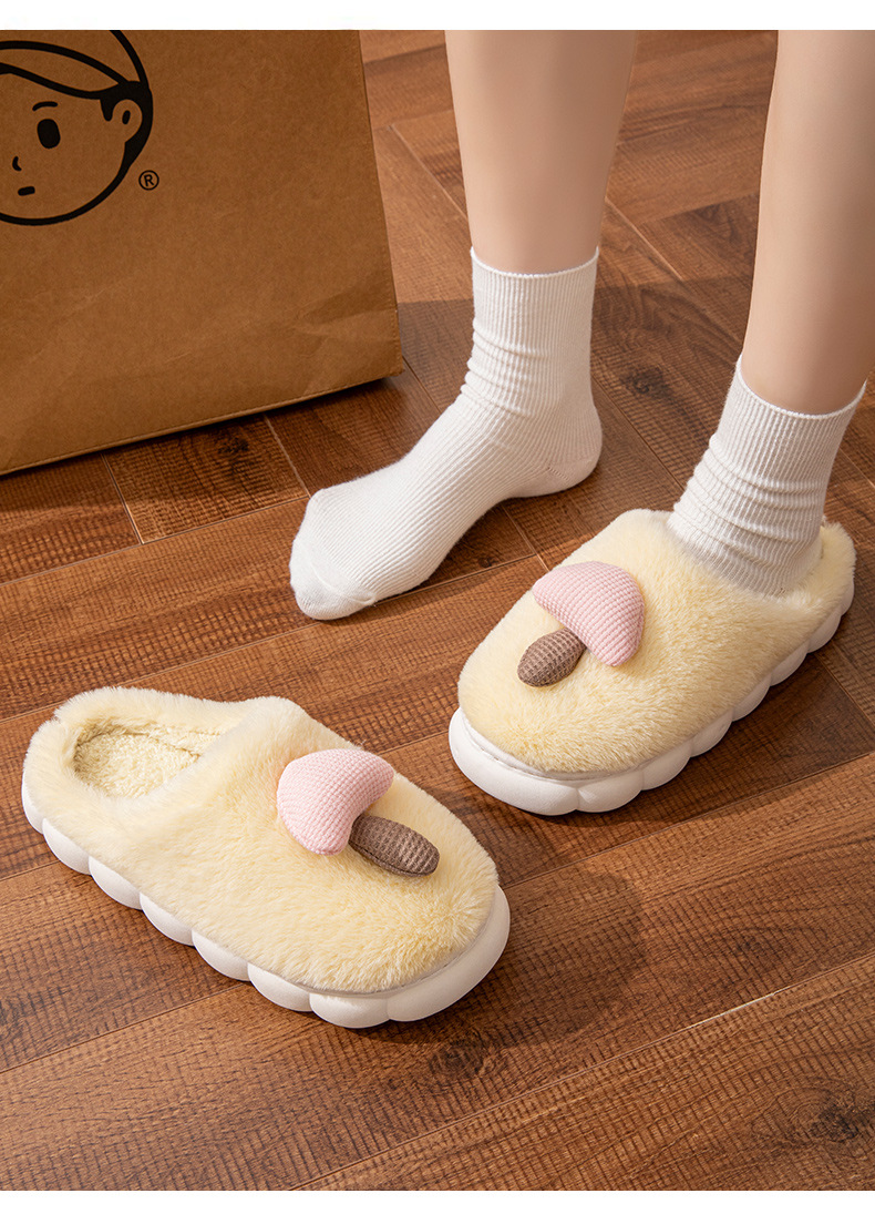 Zapatillas de algodón de hongos de invierno transfronterizas, zapatillas de invierno de peluche cálidas, zapatillas de pelo para parejas domésticas, mujeres