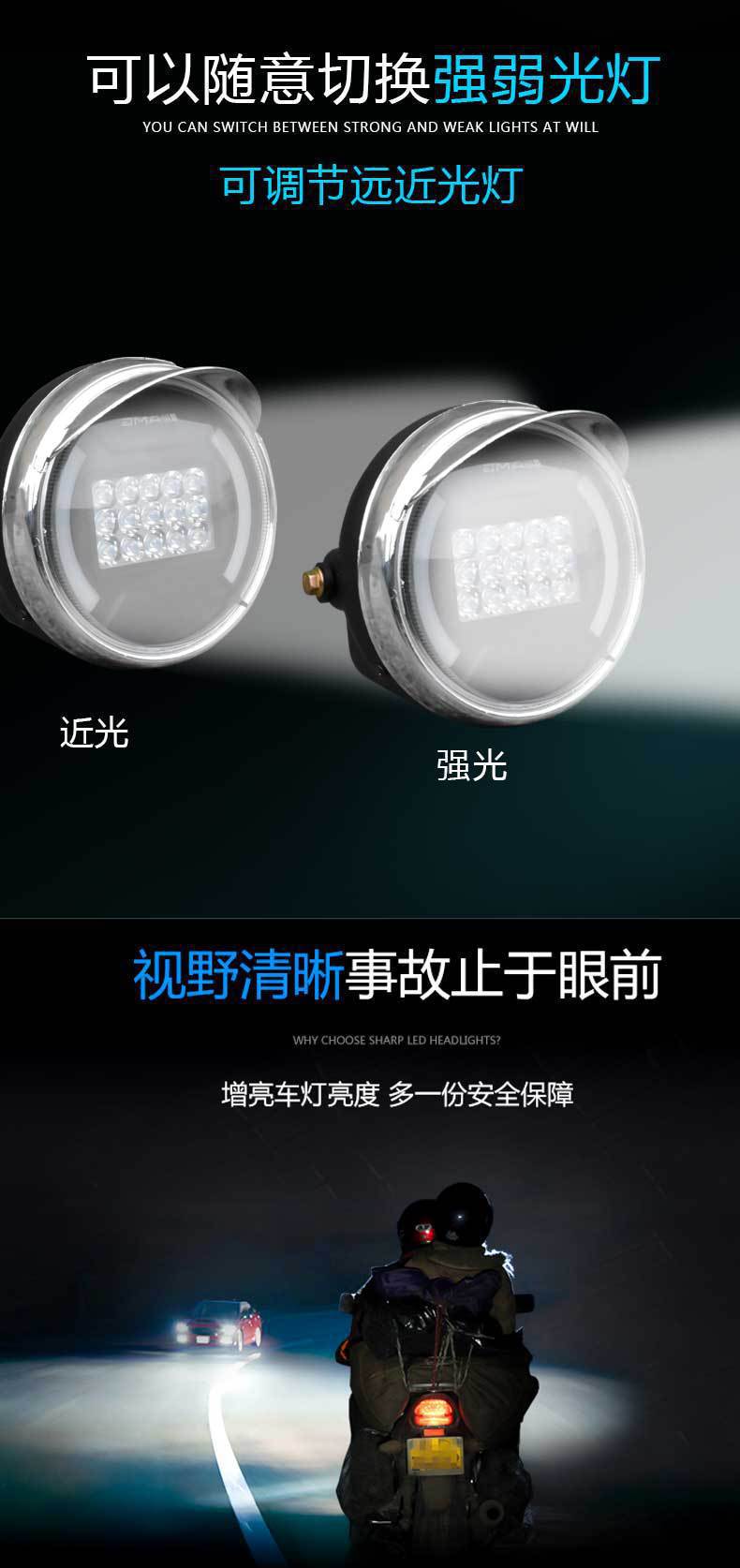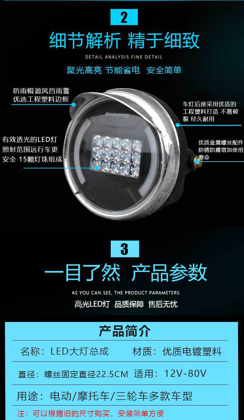 Triciclo eléctrico faro redondo LED mecha súper brillante 12v-80V iluminación modificada faro de motocicleta
