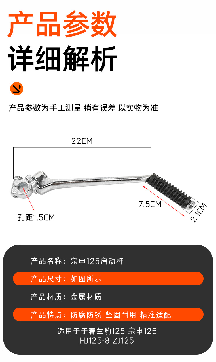 Motocicleta Pearl River Chunlan Leopard Zongshen 125 palanca de arranque ZS125 palanca de pedaleo plegable palanca de arranque