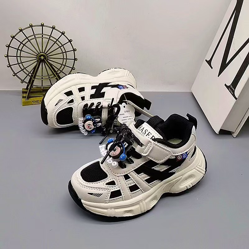 Croton Keqiu nuevas zapatillas deportivas botones giratorios zapatos deportivos de cuero zapatos deportivos de fondo ligero para niños pequeños y medianos zapatos para correr zapatos de cuero para niños