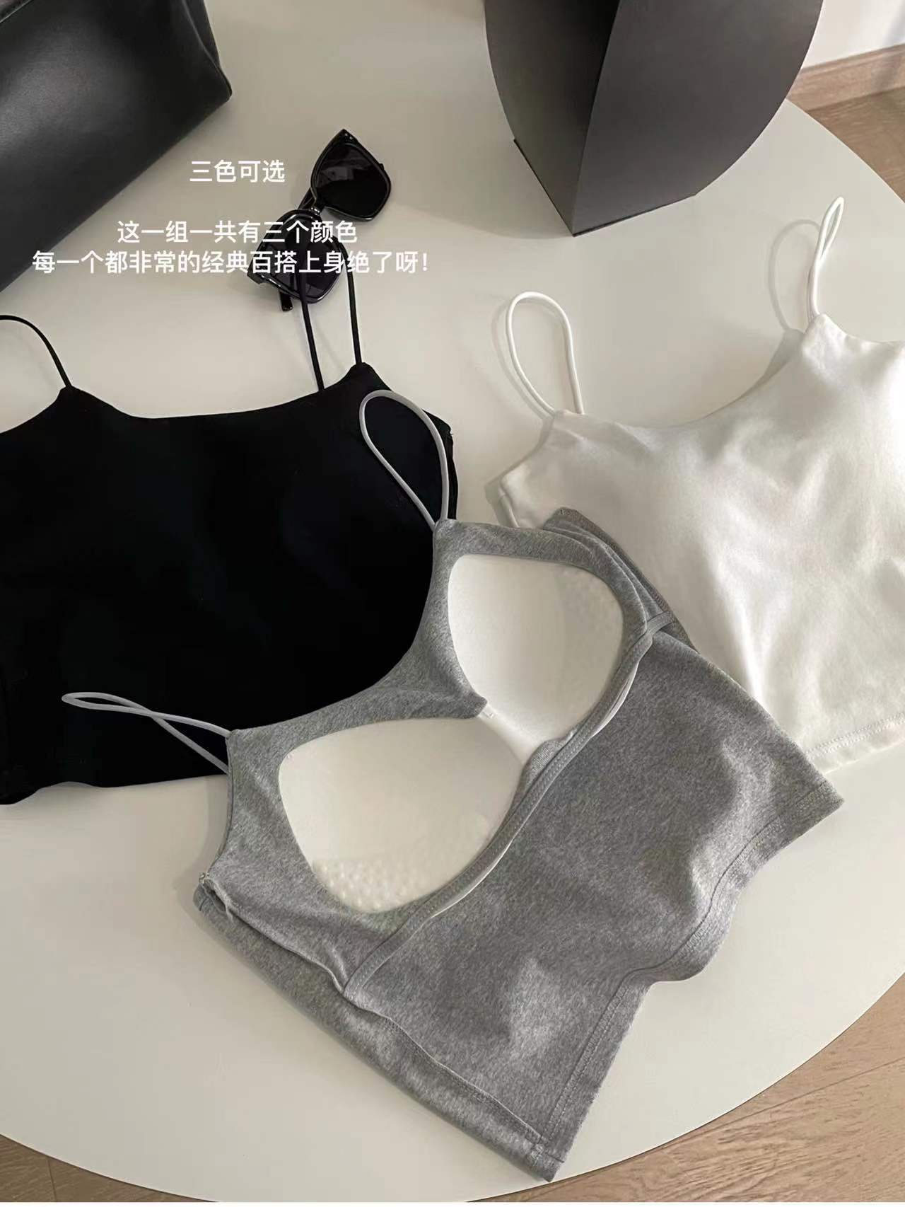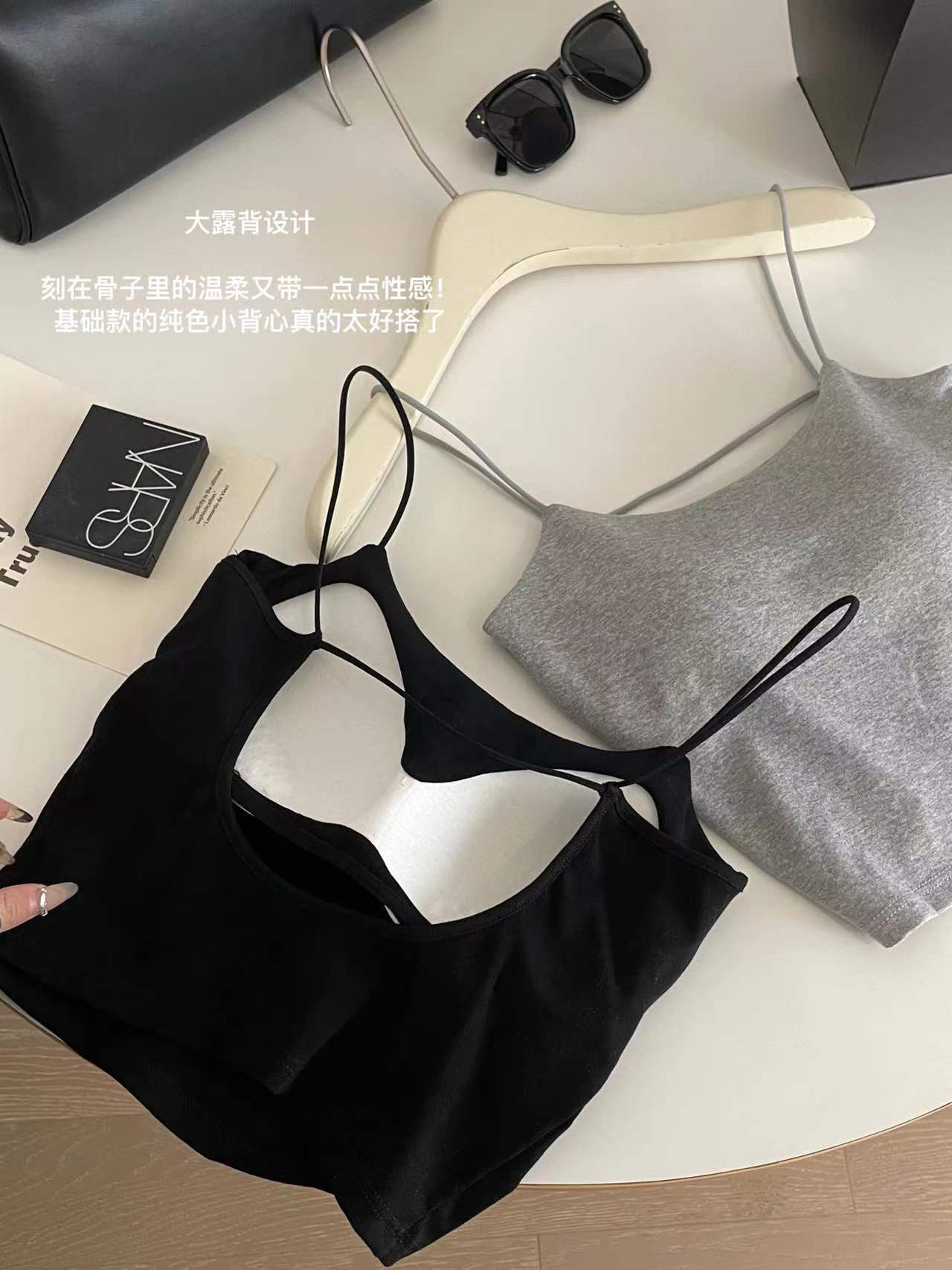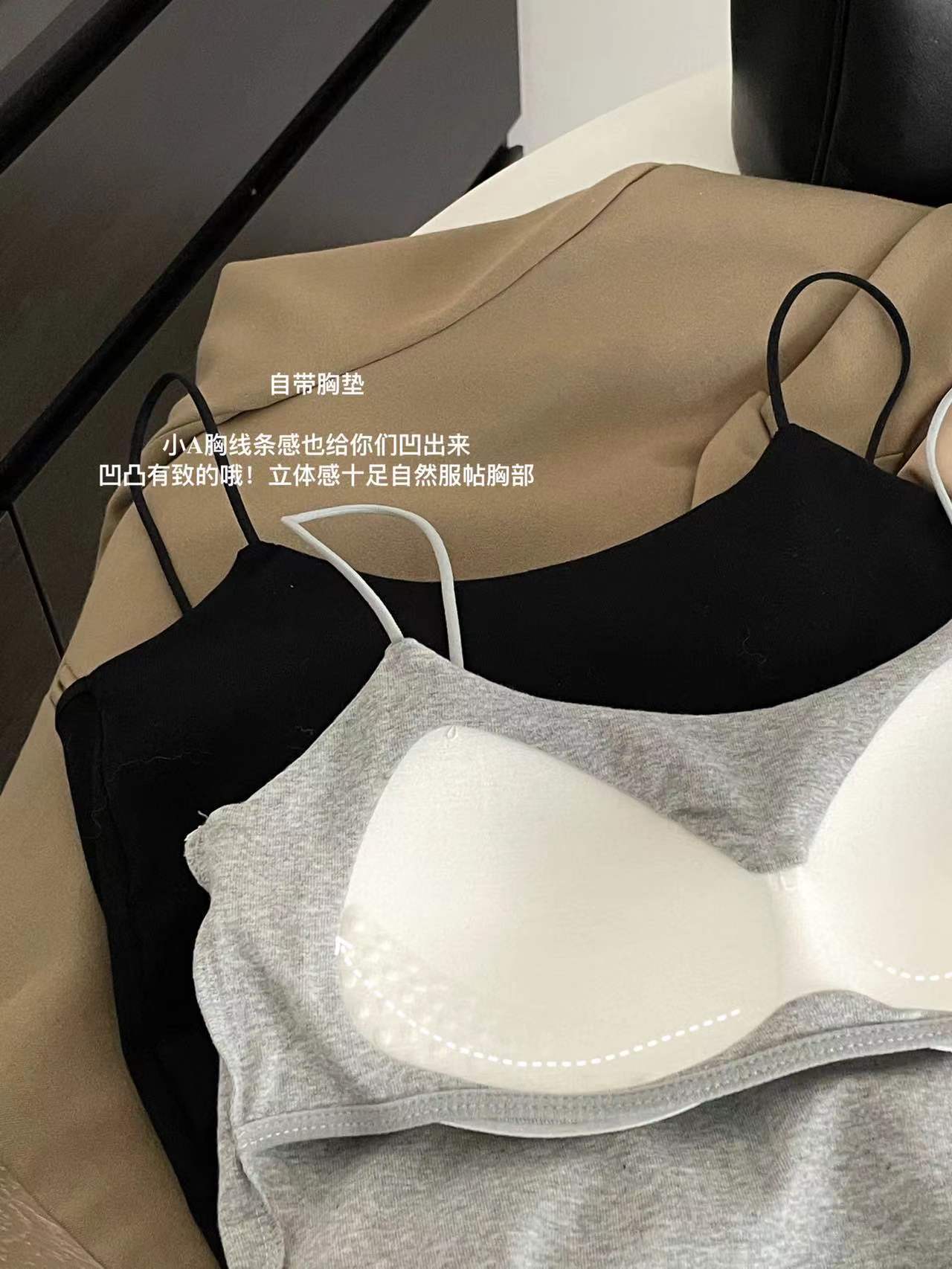Estilo japonés chica caliente nuevo estilo belleza espalda delgada correa de hombro propio pecho de las mujeres pad integrado chaleco Copa se puede usar fuera ropa interior a juego