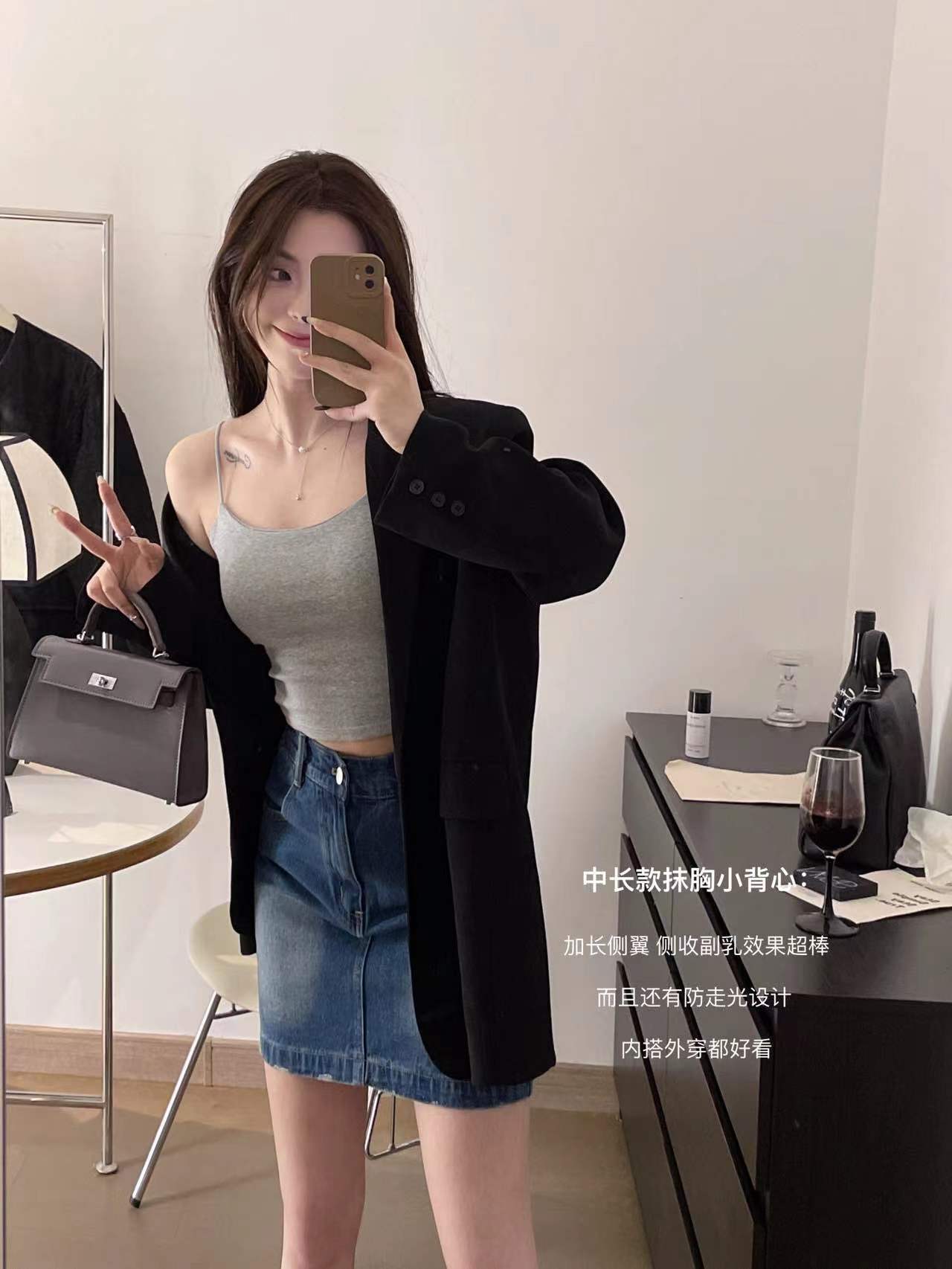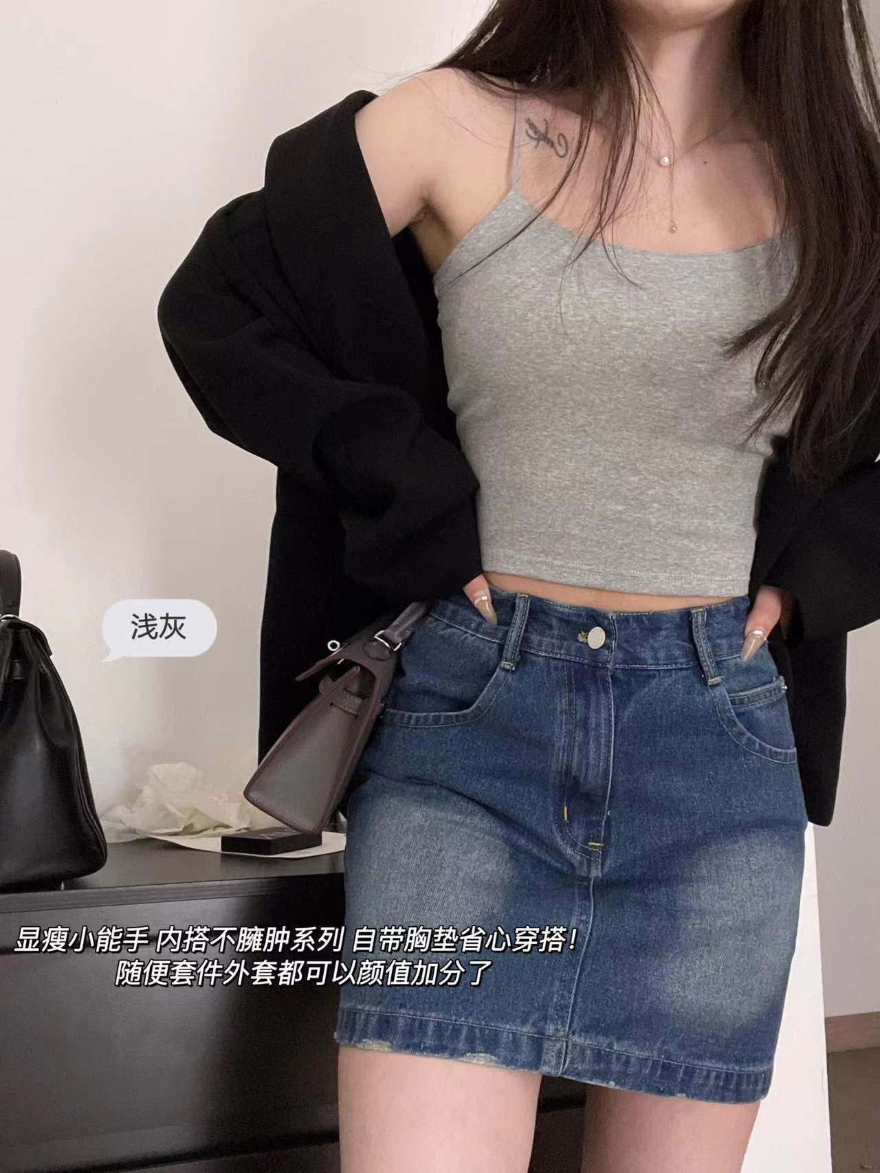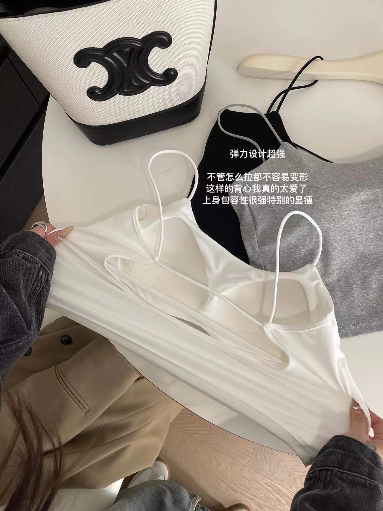 Estilo japonés chica caliente nuevo estilo belleza espalda delgada correa de hombro propio pecho de las mujeres pad integrado chaleco Copa se puede usar fuera ropa interior a juego