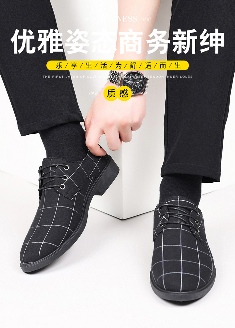 Primavera y otoño Zapatos de cuero formales de negocios casuales británicos Zapatos de hombre Zapatos individuales de lona interior Zapatos de traje con cordones Zapatos casuales de hombre