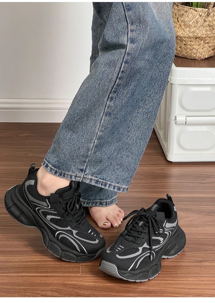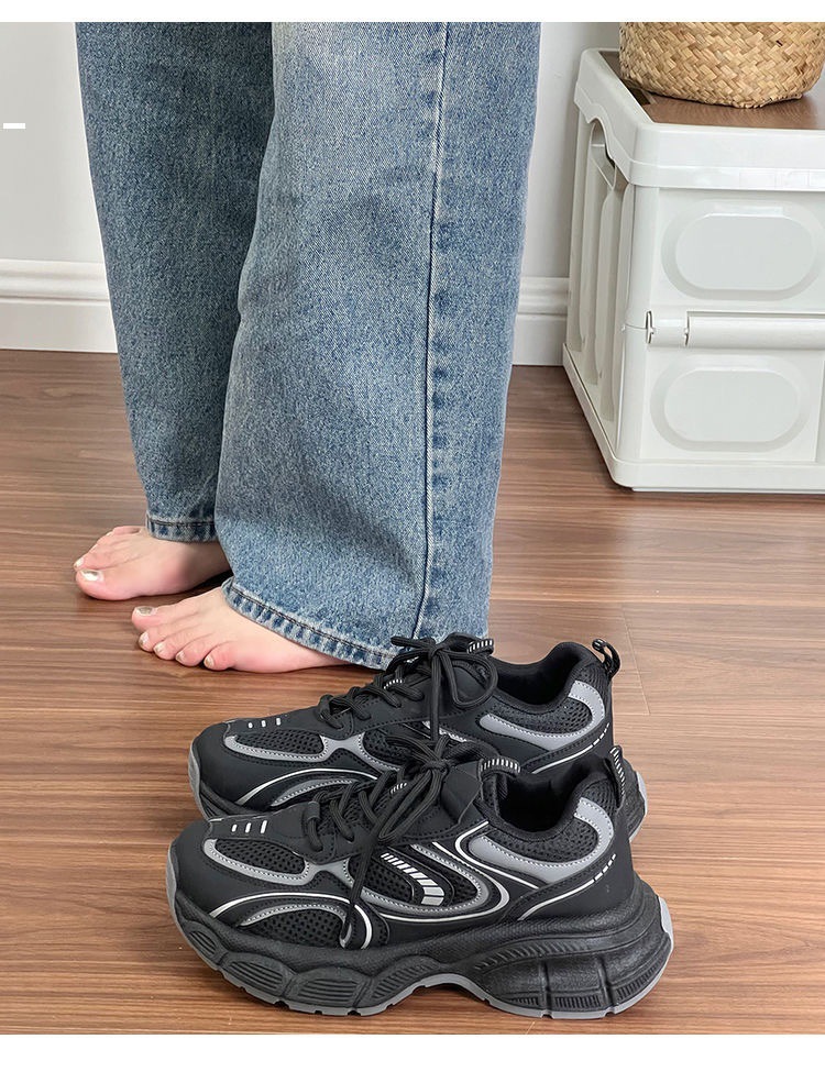 Nicho explosivo negro padre zapatos hijas 2025 otoño invierno nuevo versátil estudiantes zapatos deportivos casuales ligeros con suela gruesa
