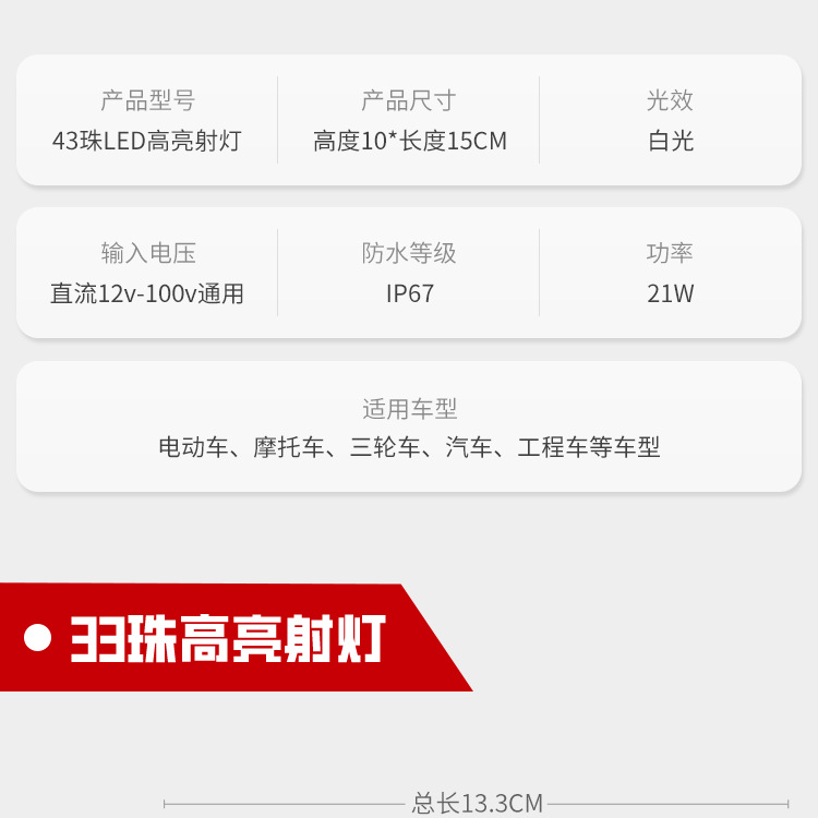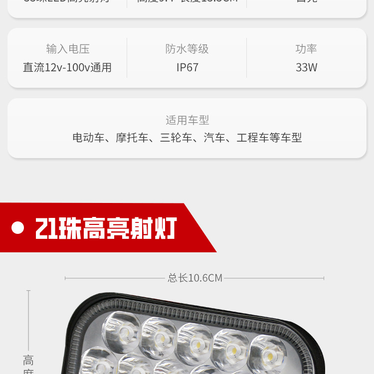 Coche eléctrico motocicleta LED faro triciclo luz 12v80v luz fuerte modificado camión de cuatro ruedas coche proyector
