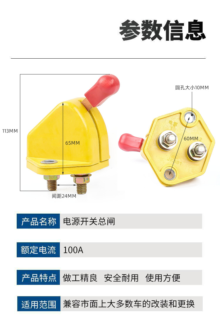 General triciclo interruptor principal agrícola coche camión tractor batería fuente de alimentación apagado cuchillo antifugas