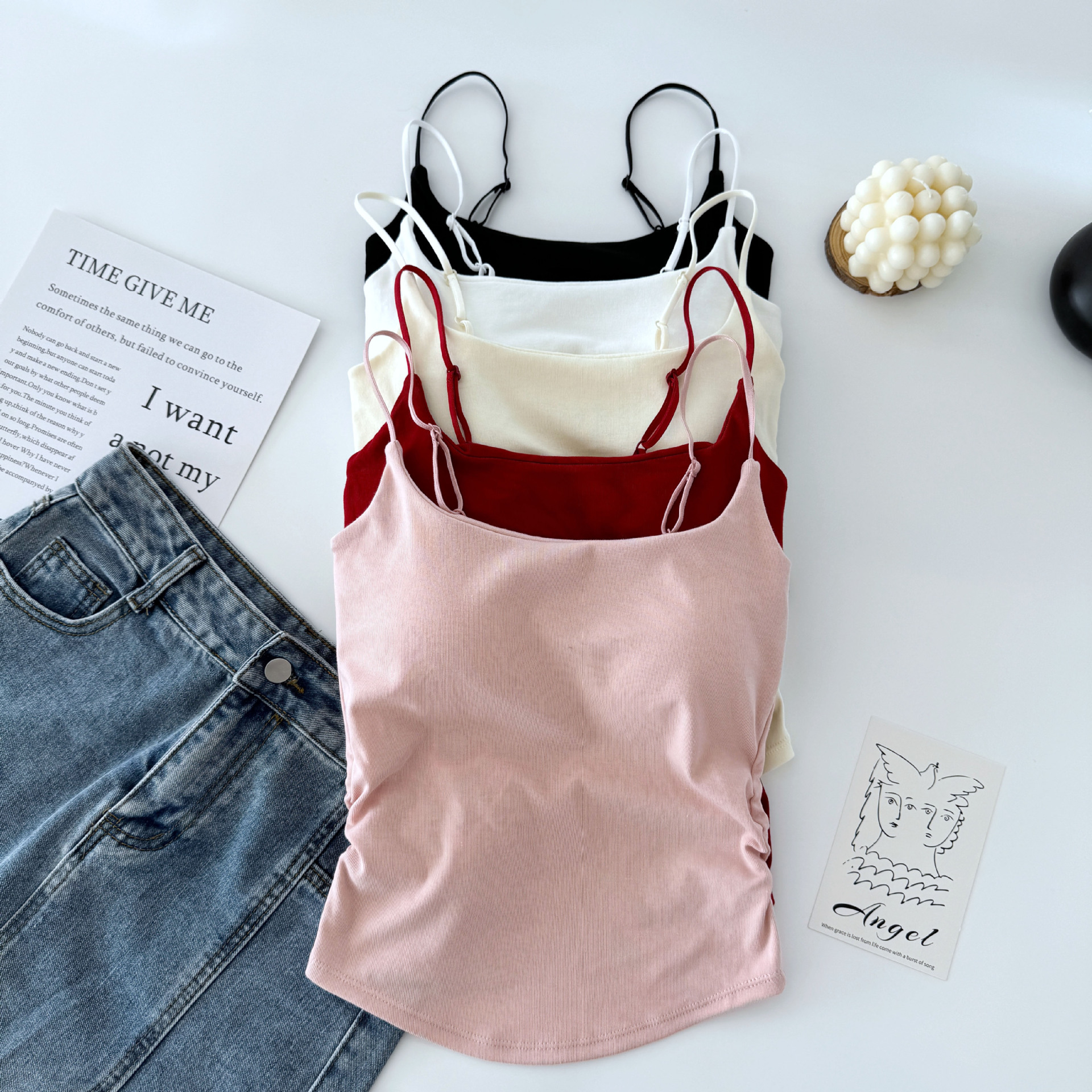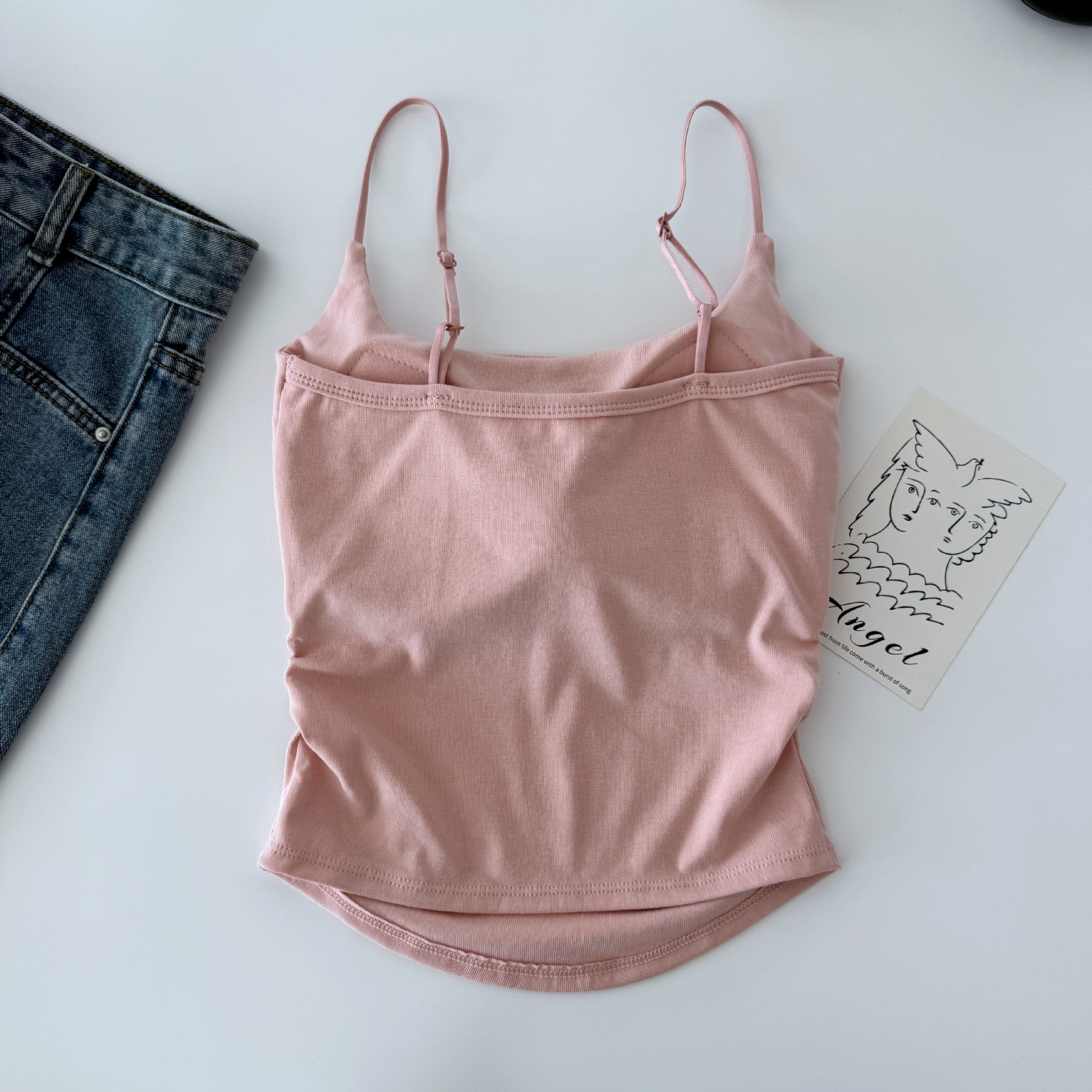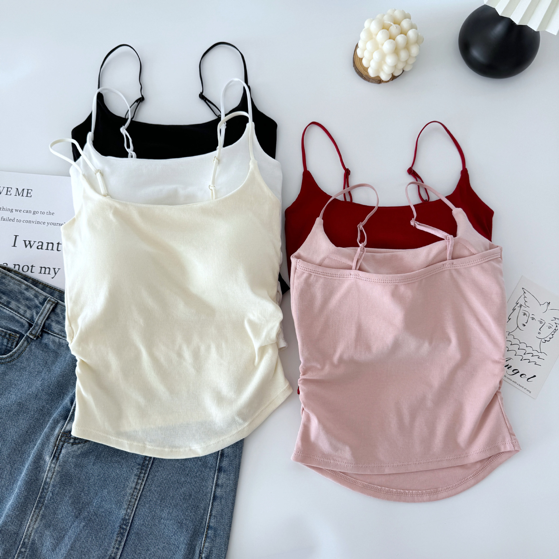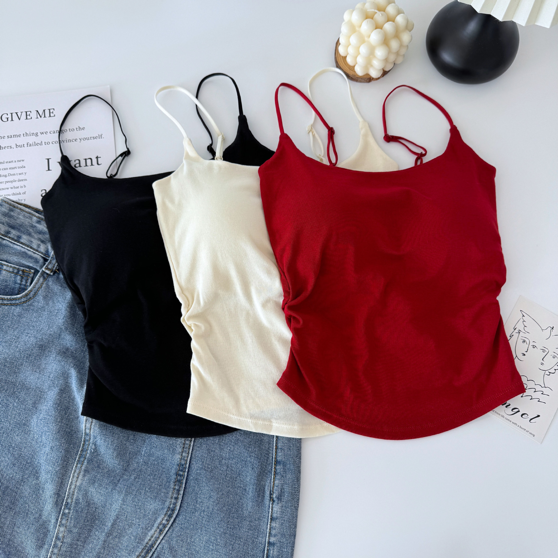 Deseo puro versátil pequeño diseño de la Honda plisada sexy camisola las mujeres desgaste interior y exterior que adelgaza la parte superior con el cojín del pecho