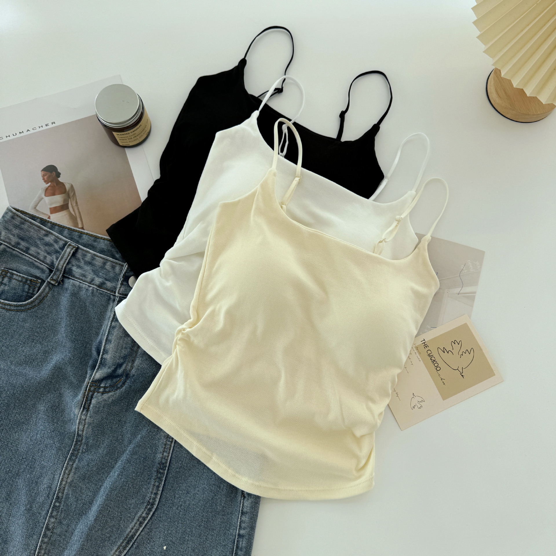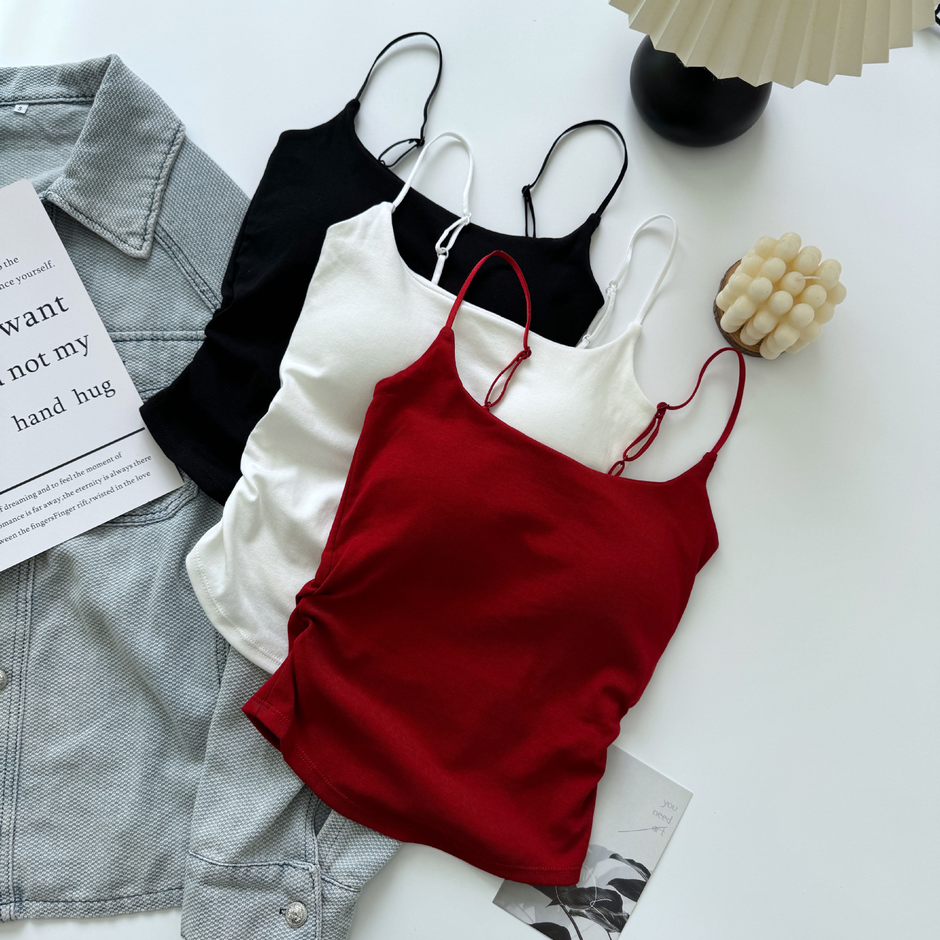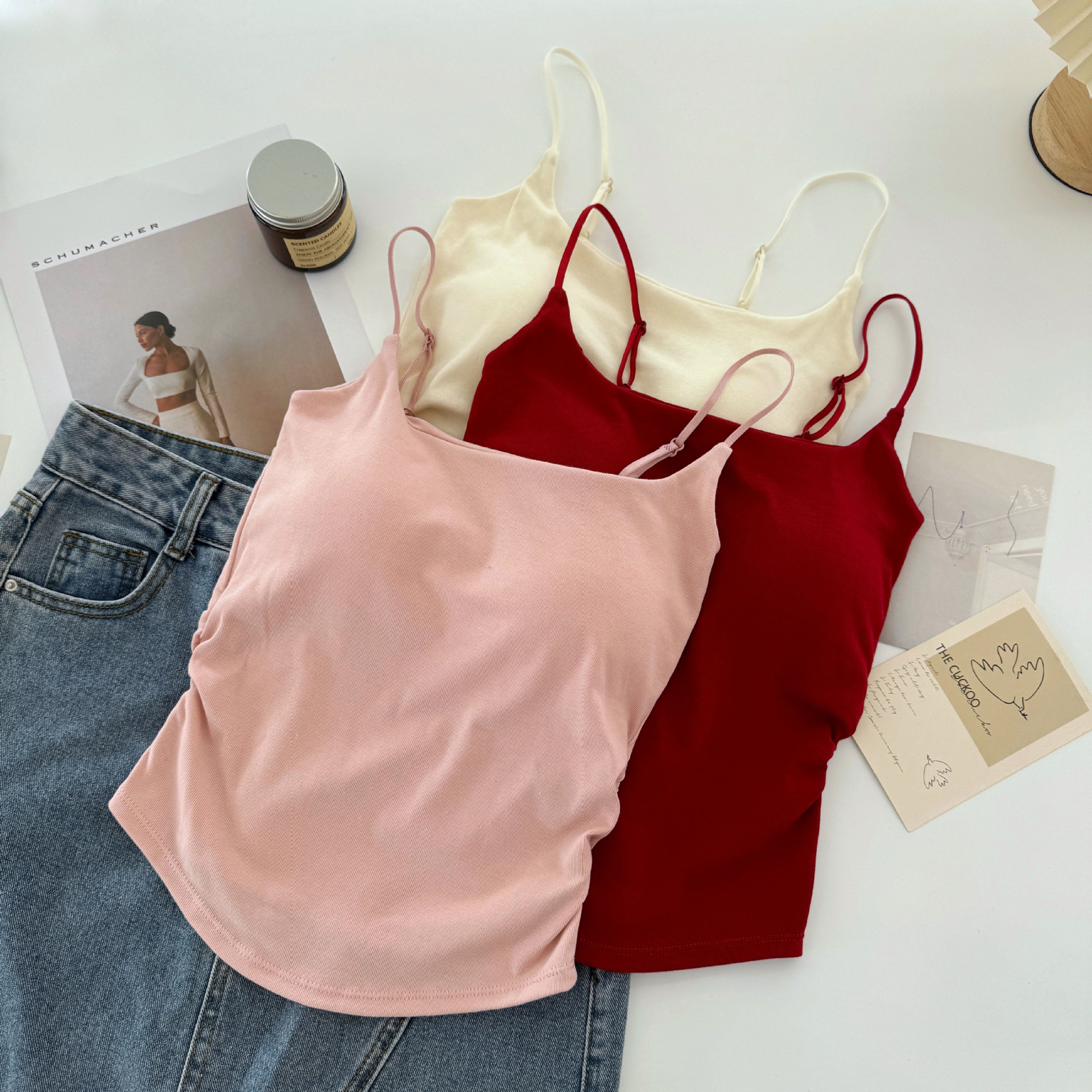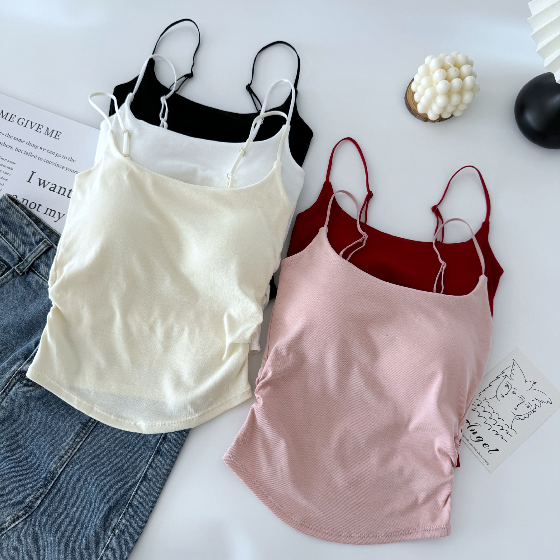 Deseo puro versátil pequeño diseño de la Honda plisada sexy camisola las mujeres desgaste interior y exterior que adelgaza la parte superior con el cojín del pecho