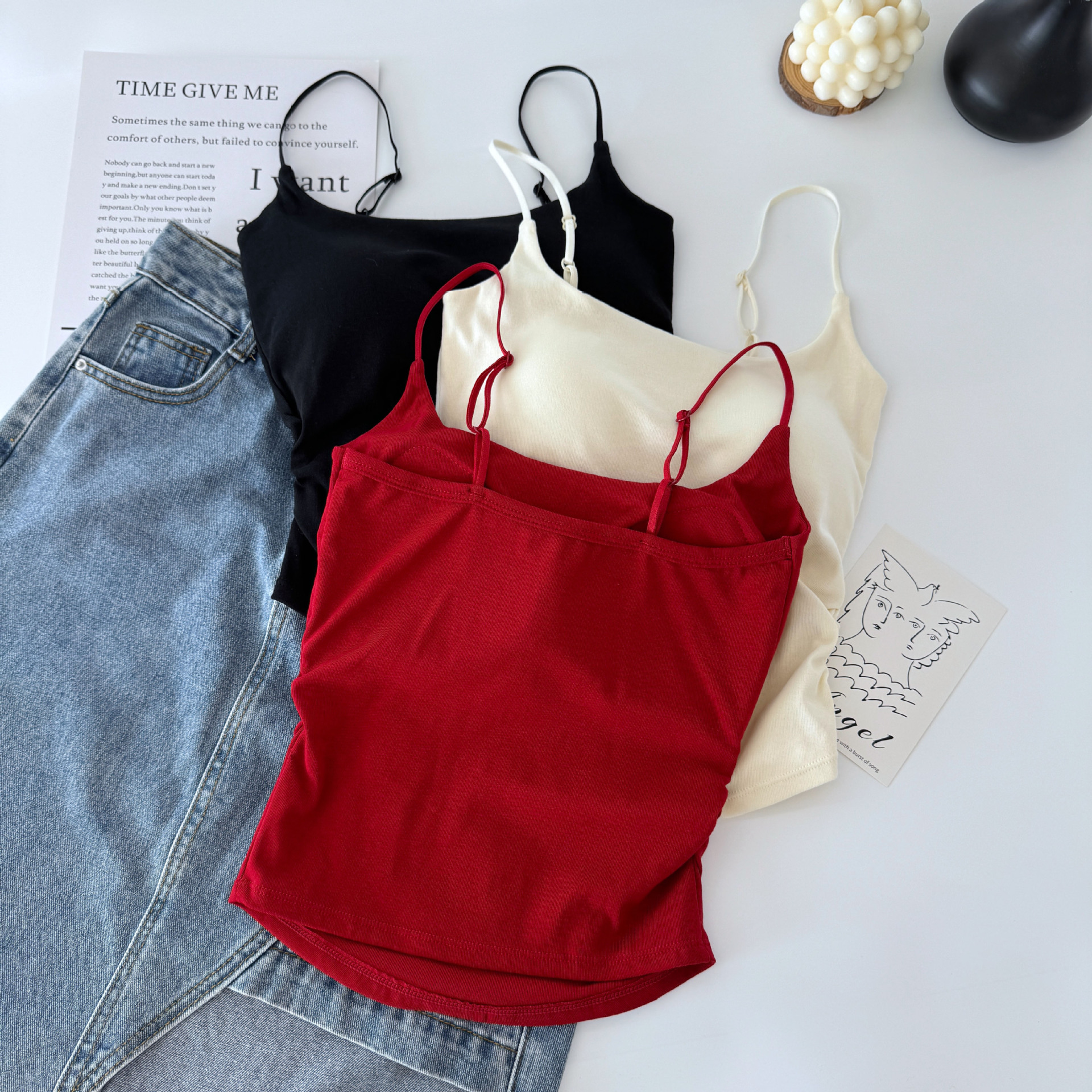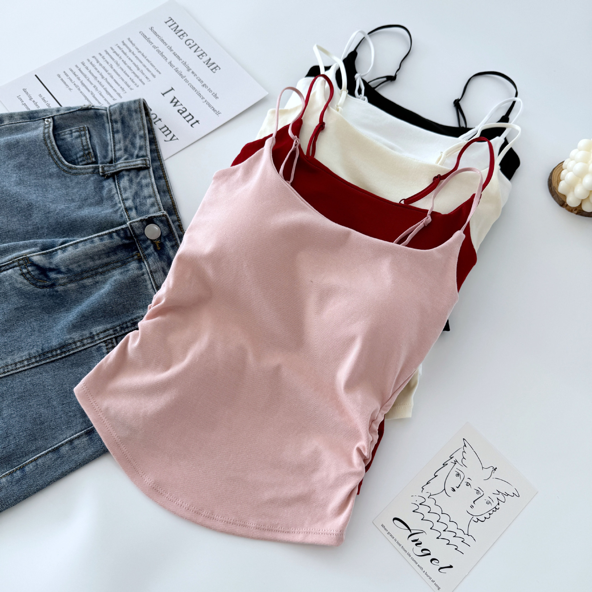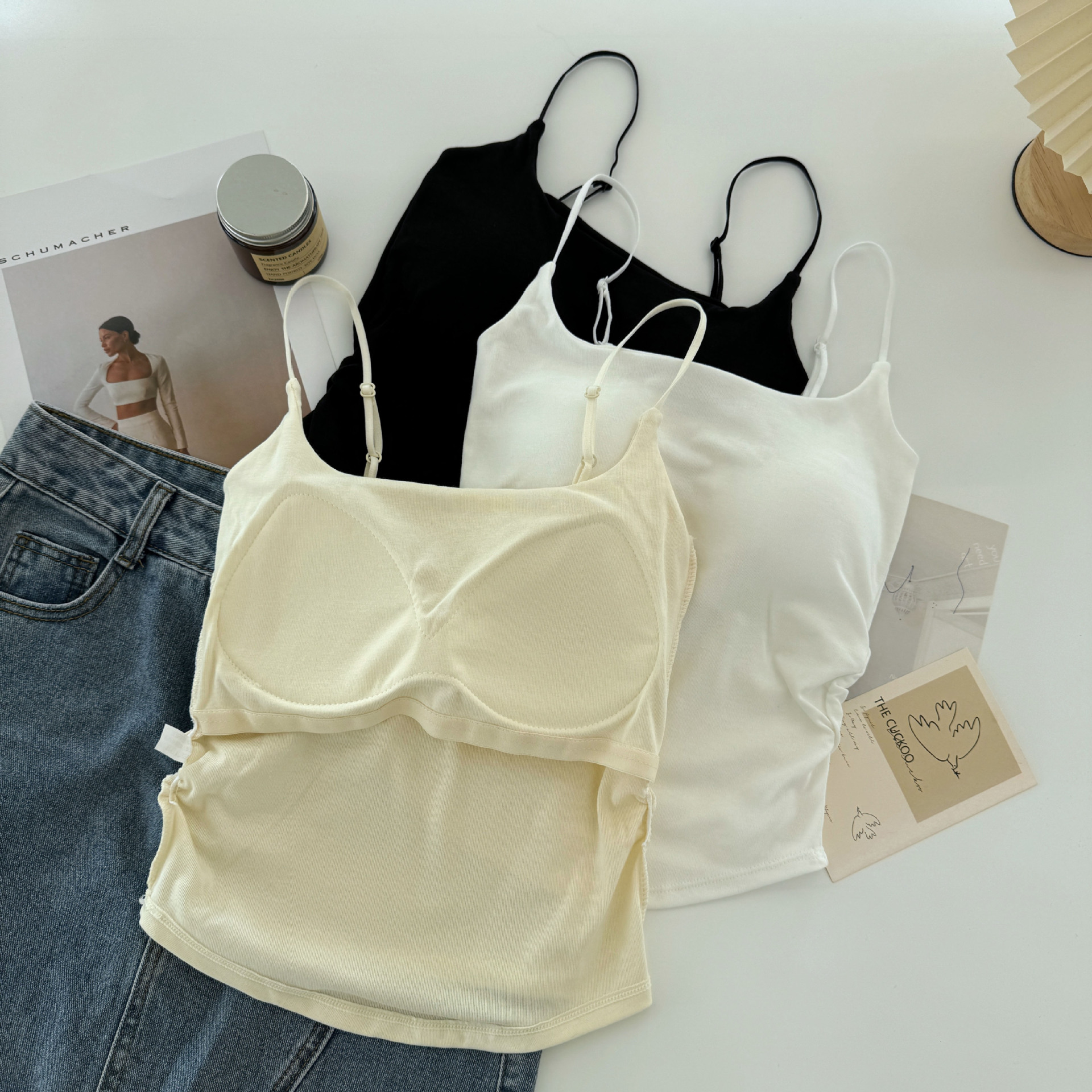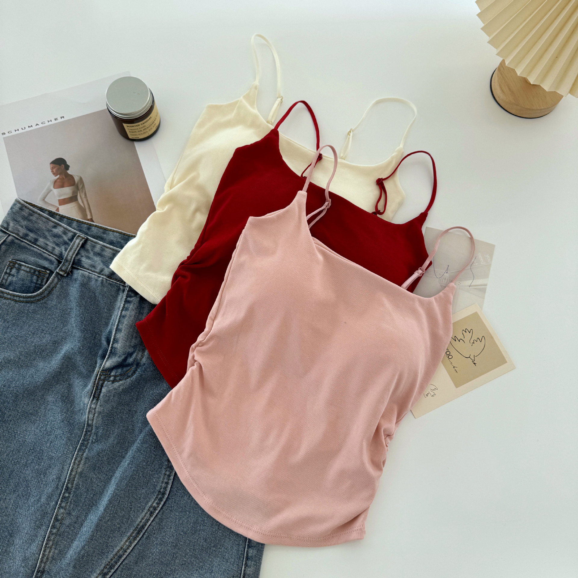 Deseo puro versátil pequeño diseño de la Honda plisada sexy camisola las mujeres desgaste interior y exterior que adelgaza la parte superior con el cojín del pecho