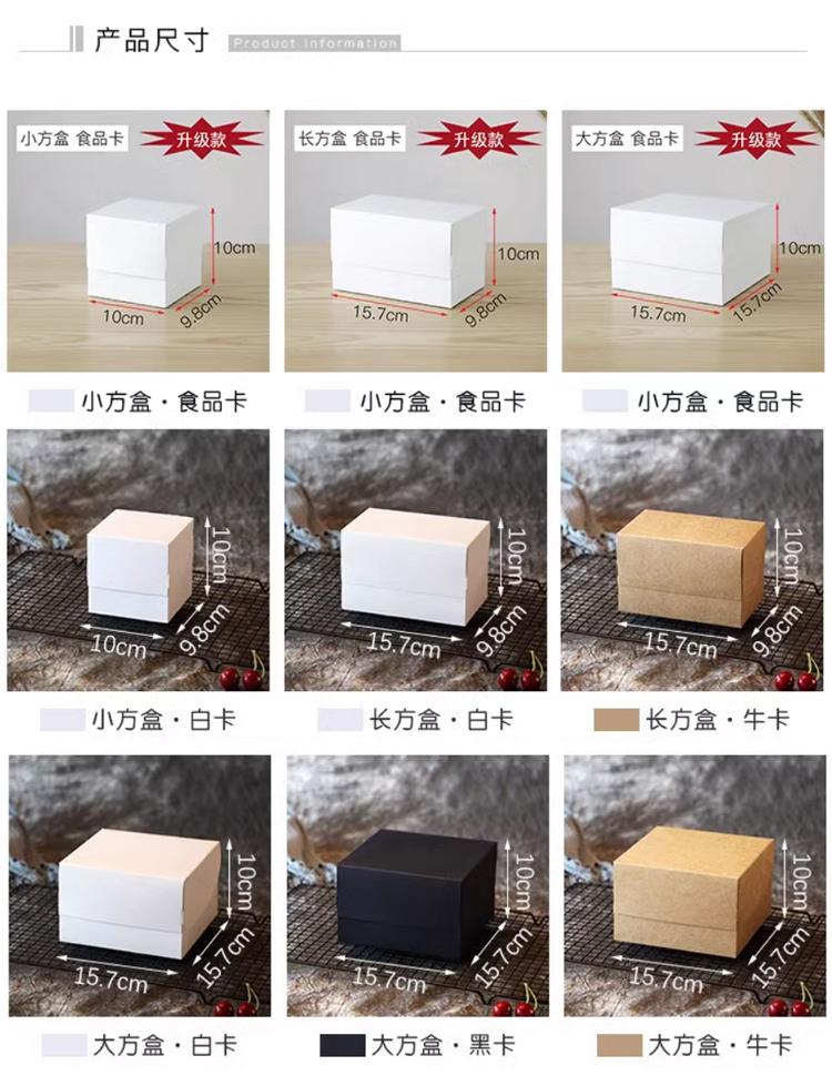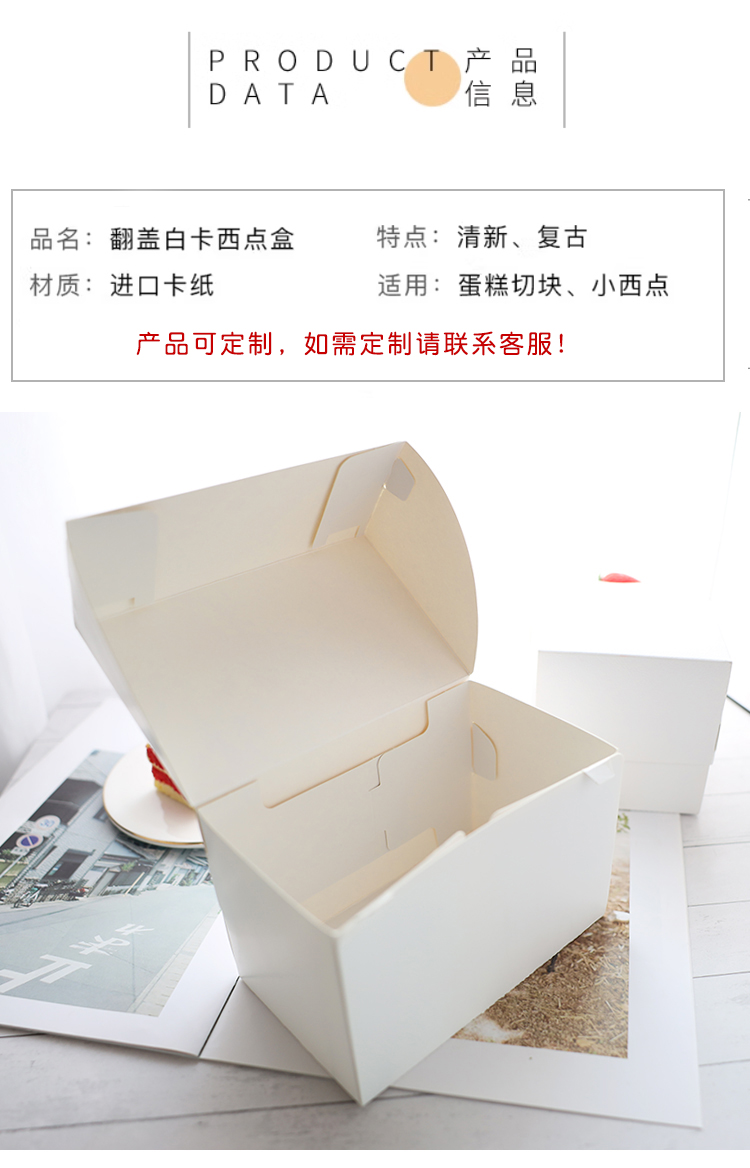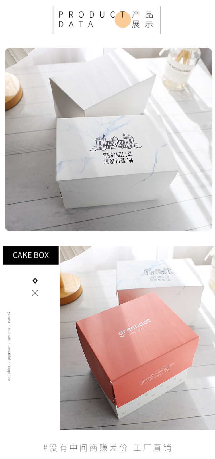 Caja de cartón de embalaje de tarjetas blancas pequeña caja de punto occidental horneado caja de pastel de cumpleaños caja de corte caja de mousse caja de lasana