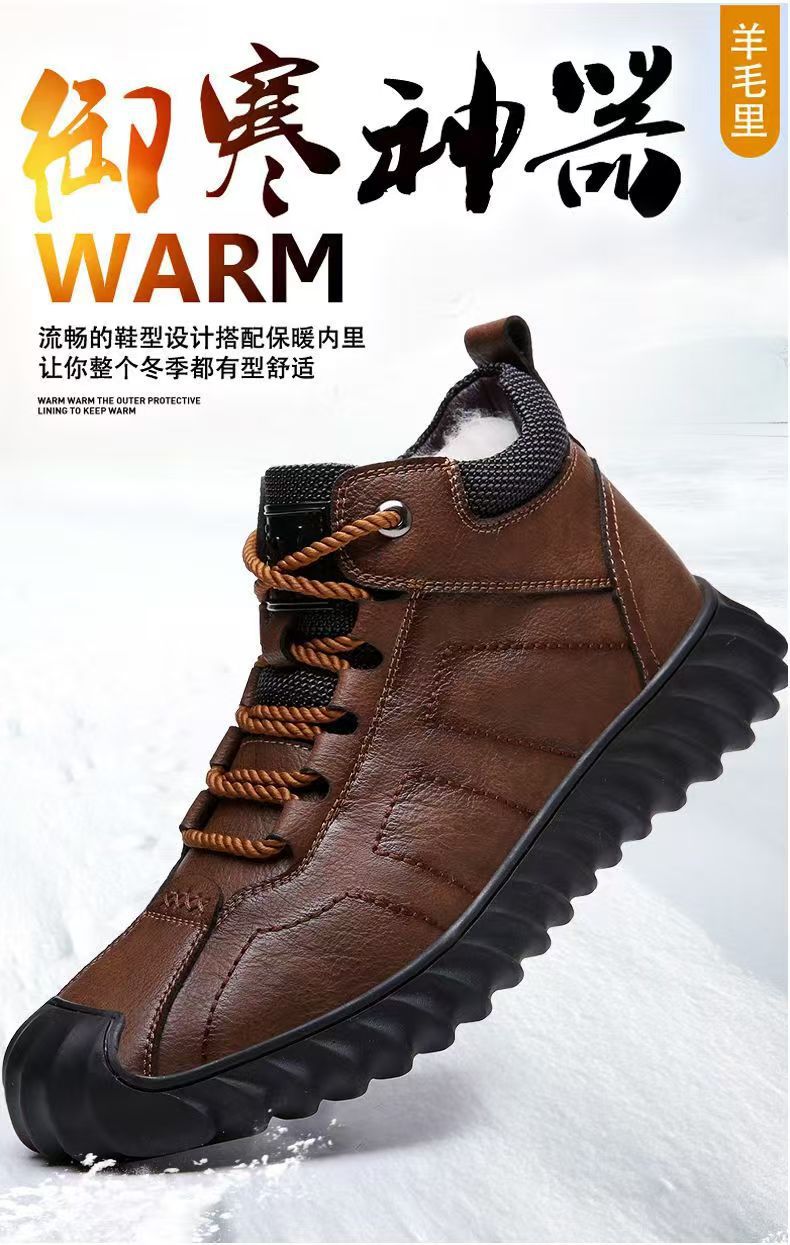 Spot invierno práctico nuevo estilo zapatos de algodón para hombres más botas de algodón altas cálidas de terciopelo botas de nieve zapatos de papá botas Martin