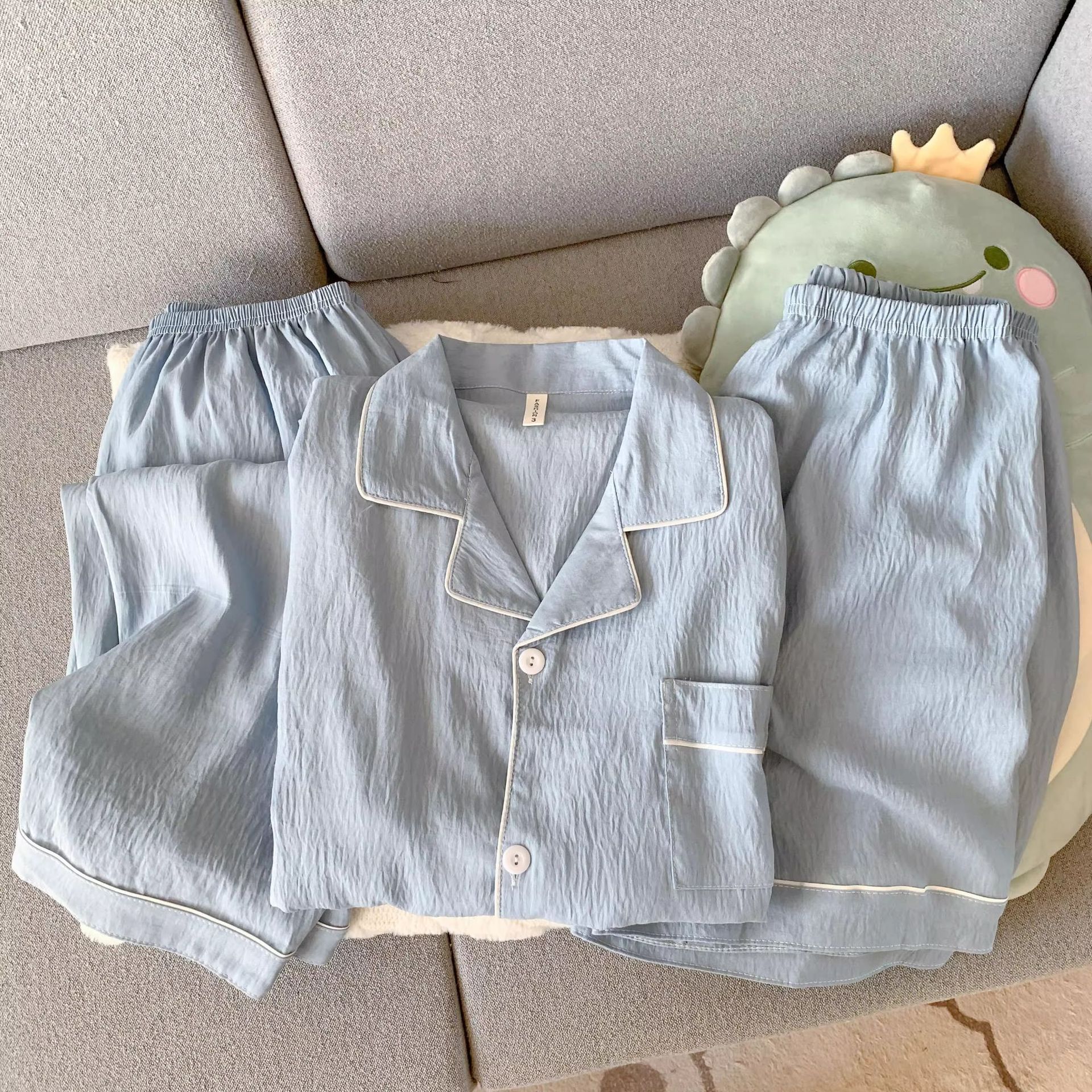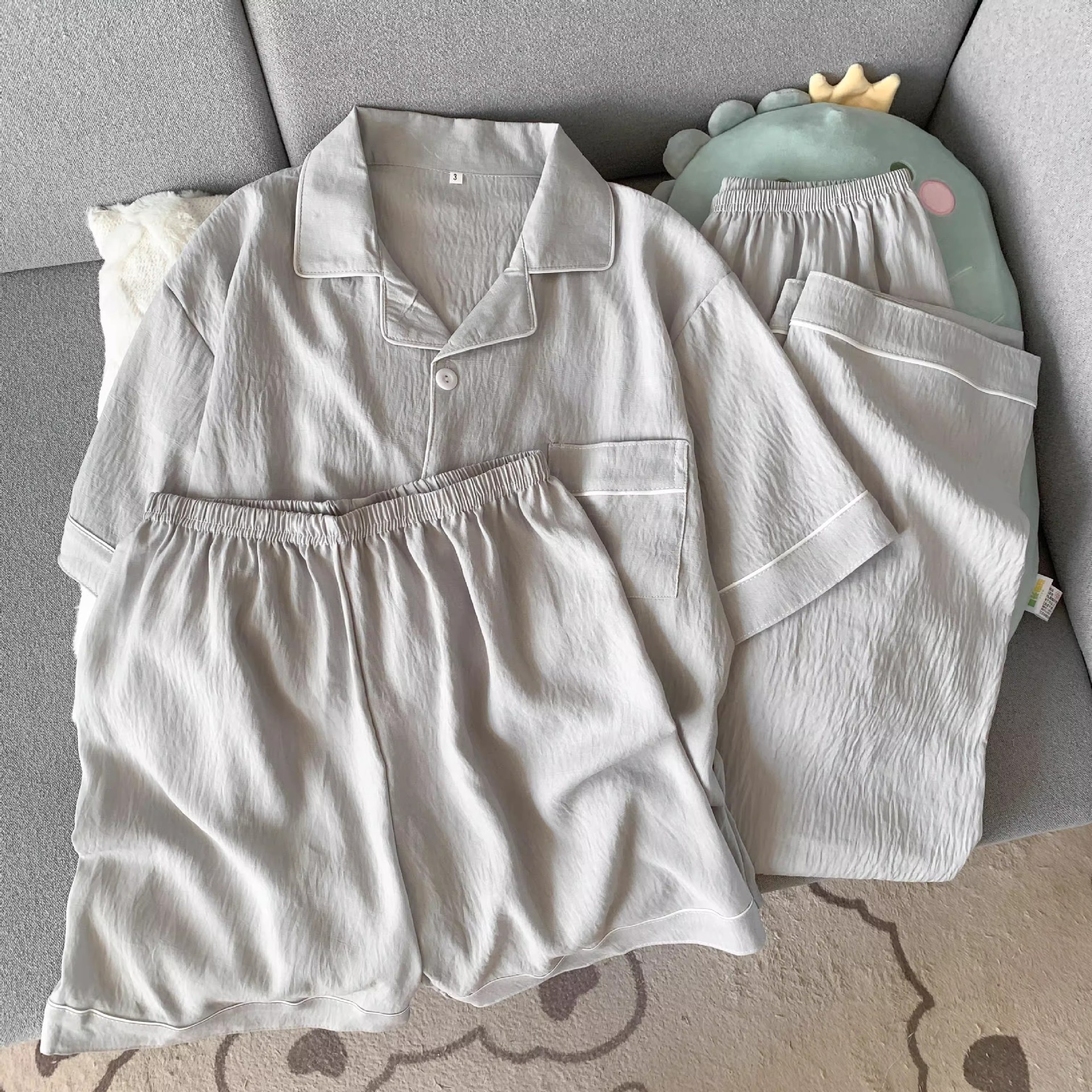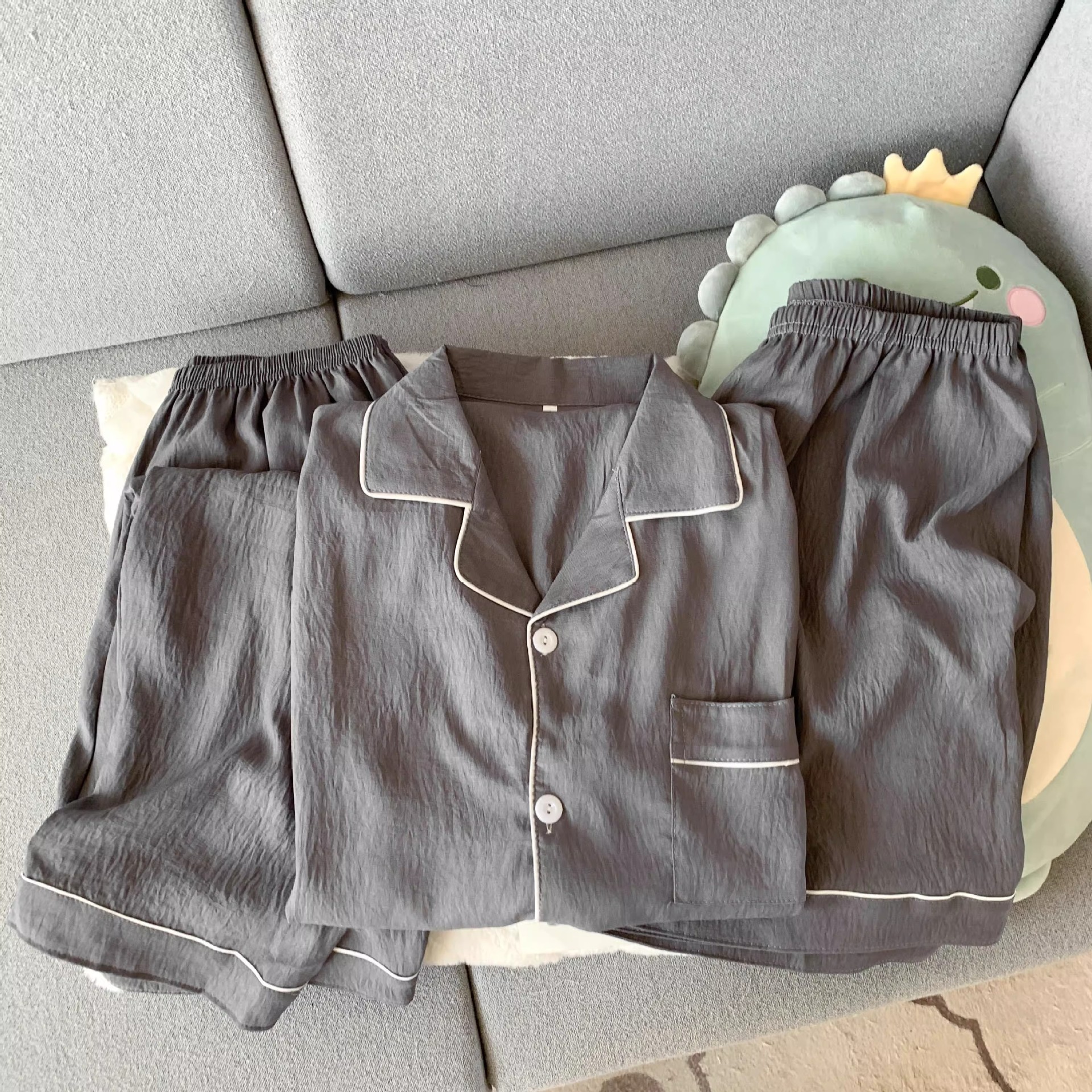 Pijamas de hombre de hilo de algodón puro de nubes, manga corta de verano, color sólido simple, sensación de alta gama, ropa de hogar de tres piezas