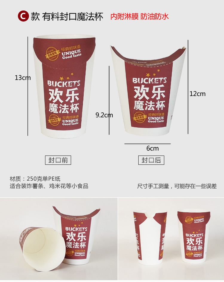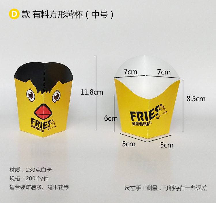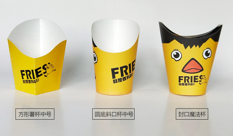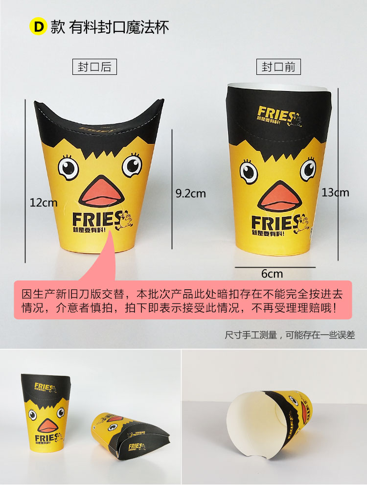 Taza de papas fritas, taza mágica desechable, taza de embalaje de papas fritas, huevo, pollo, caja de embalaje de bocadillos cuadrados