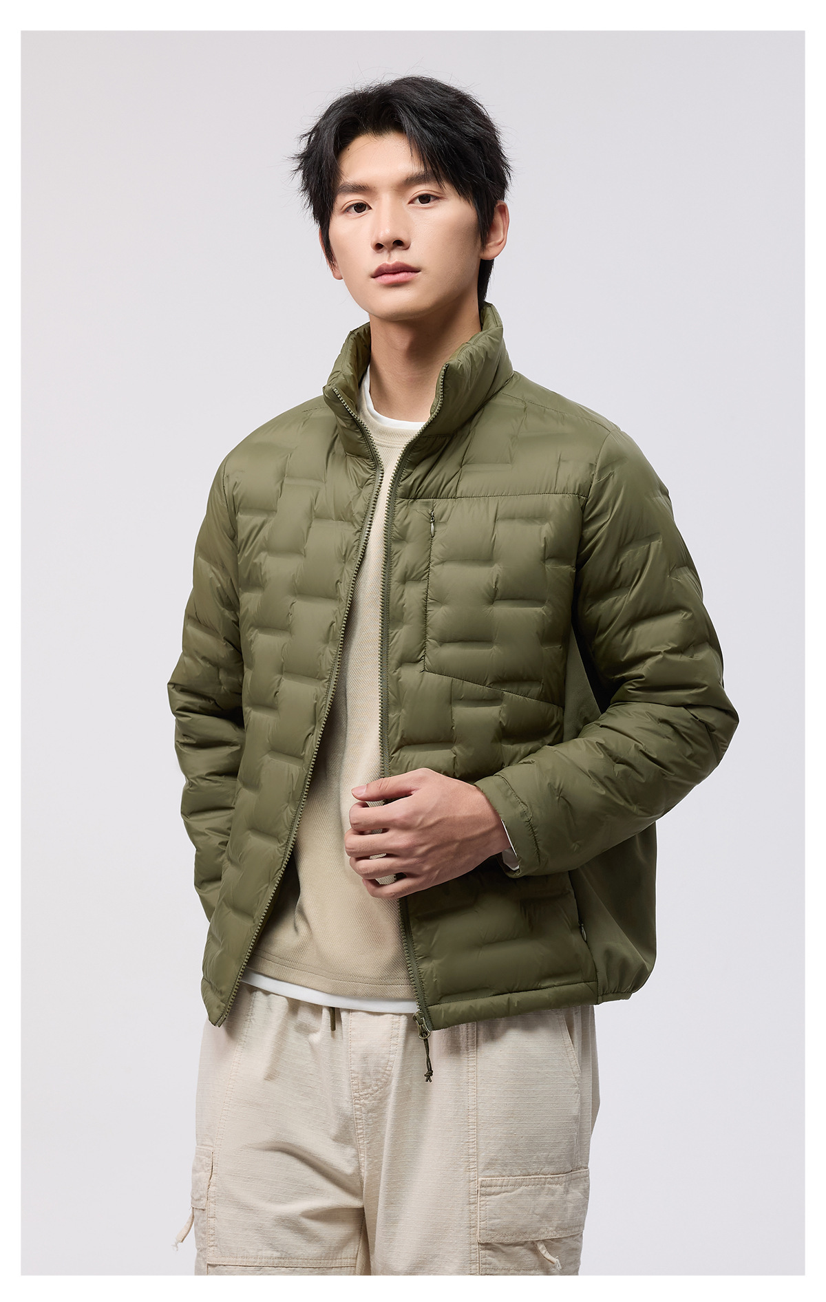 Chaqueta de plumón ligera para hombres 90 vello otoño y invierno nuevo estilo casual versátil ligero de cuello vertical chaleco de calentamiento de goma prensada chaqueta