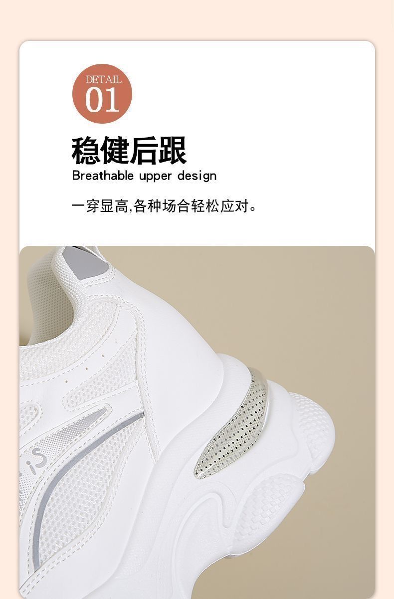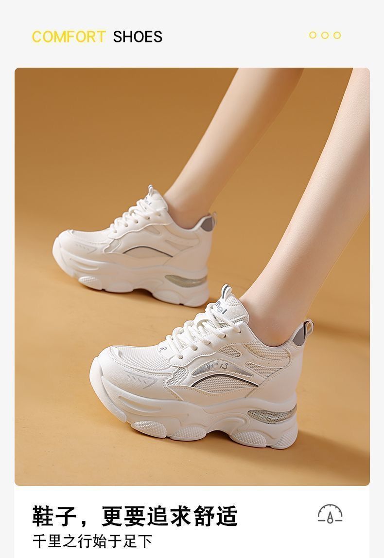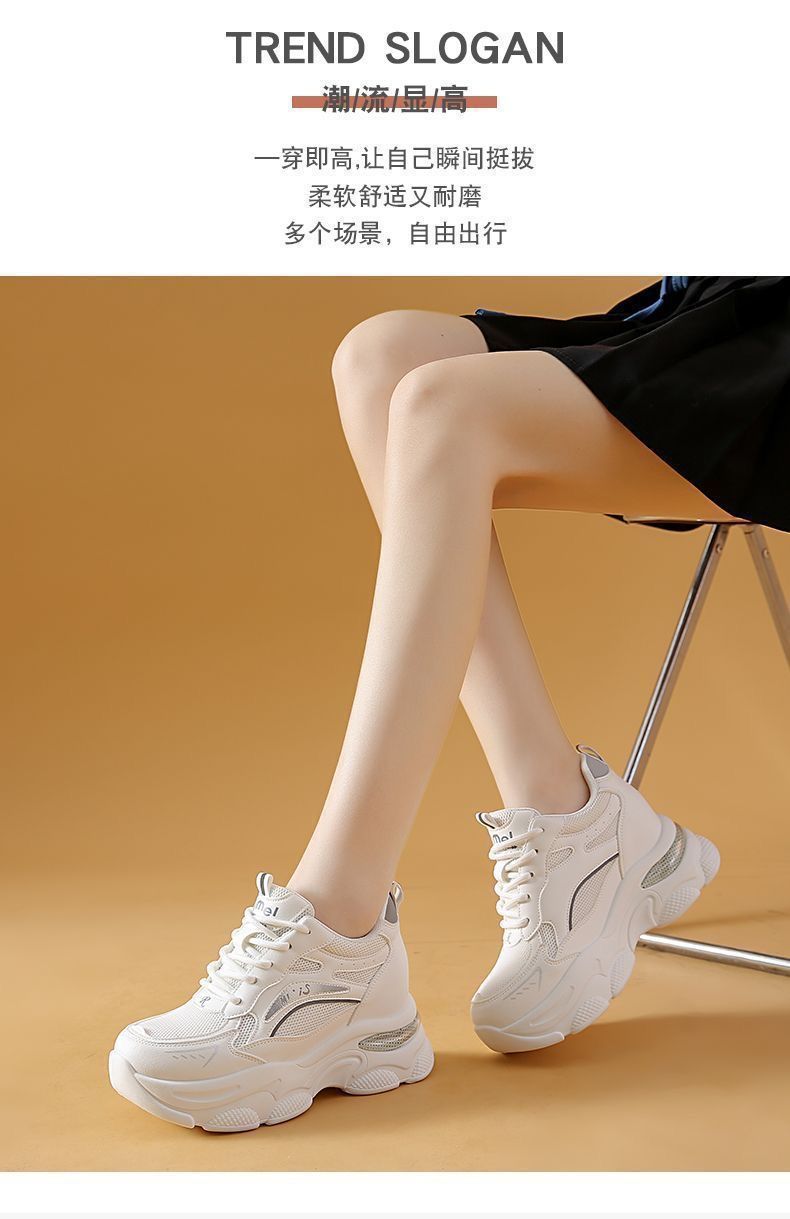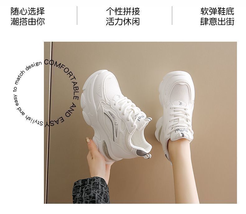 Inner realce zapatos de papá, zapatos deportivos casuales ligeros pequeños, zapatos de mujer de plataforma de todo fósforo de verano, zapatos blancos de red huecos