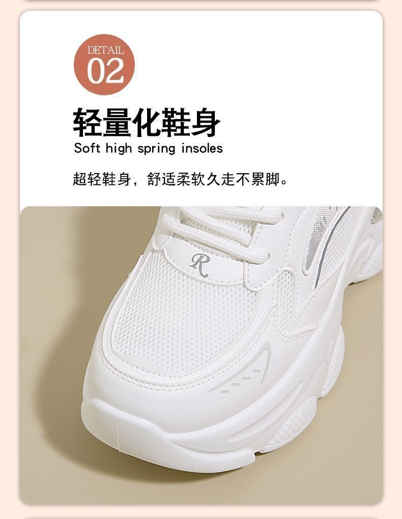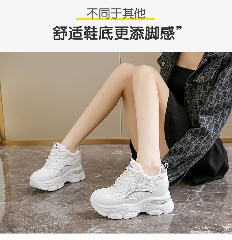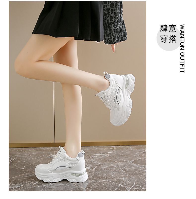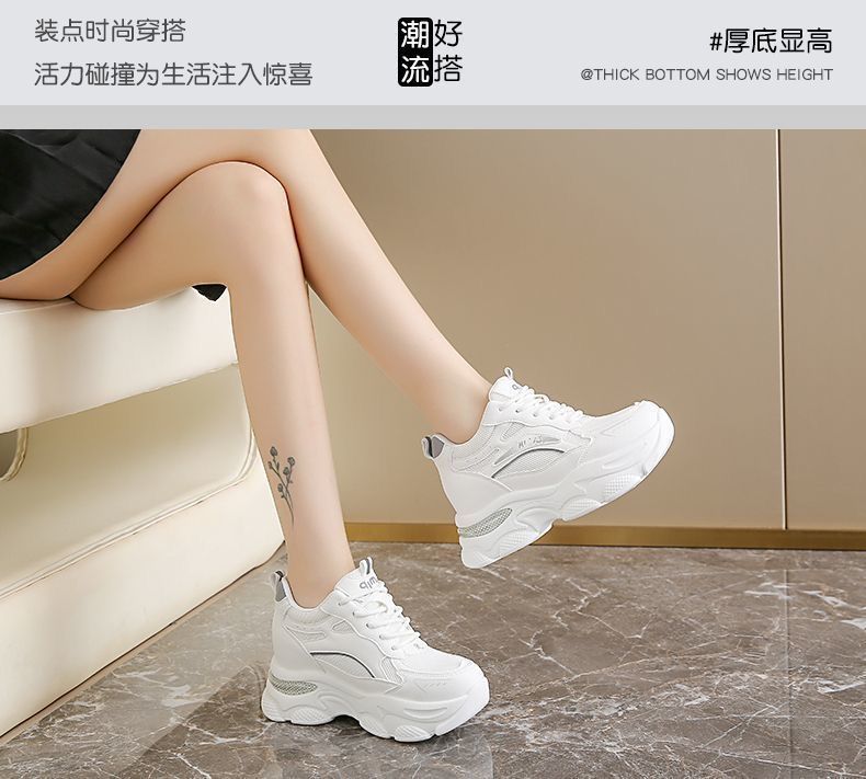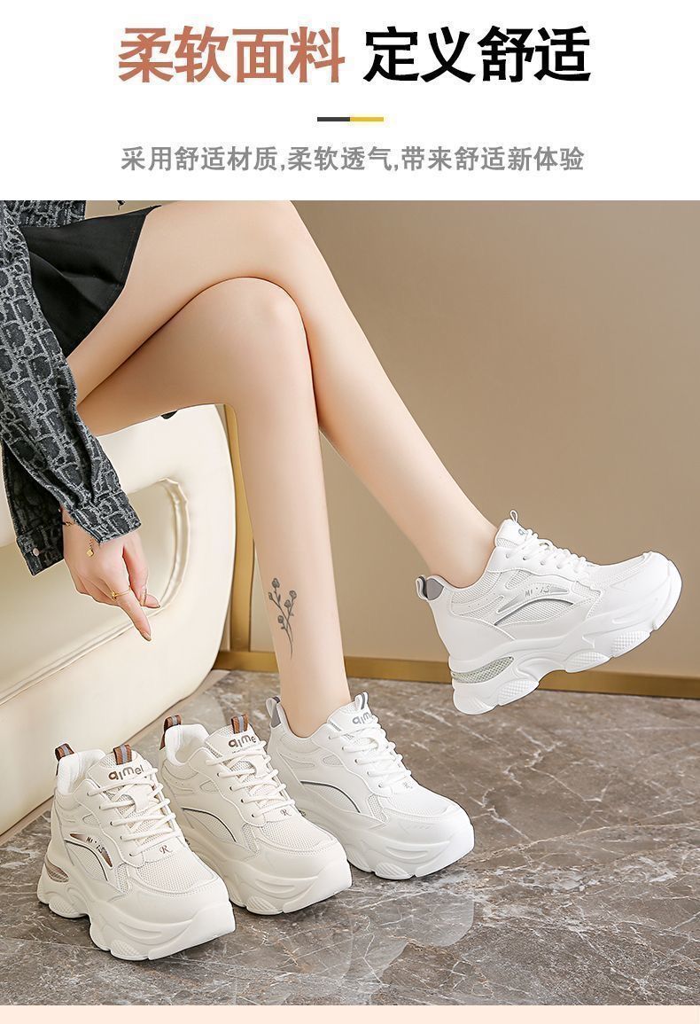 Inner realce zapatos de papá, zapatos deportivos casuales ligeros pequeños, zapatos de mujer de plataforma de todo fósforo de verano, zapatos blancos de red huecos