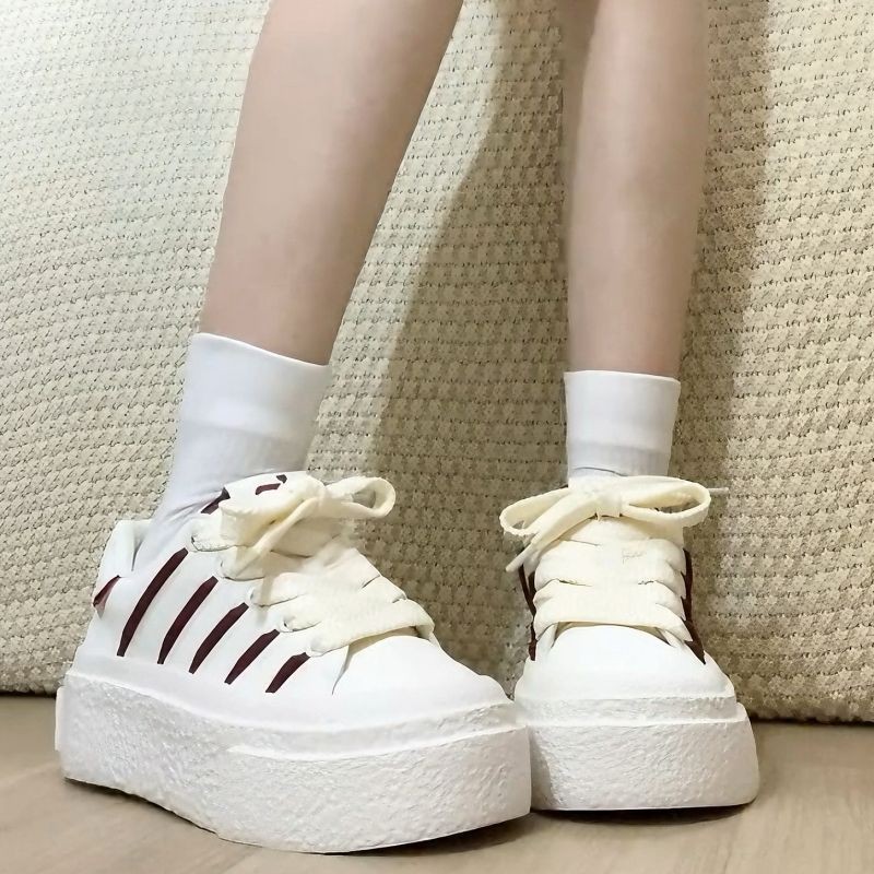 Leche fu cabeza redonda con suela gruesa zapatos blancos para mujeres 2025 nuevos veranos ligeros transpirables estudiantes de skate de viaje universal
