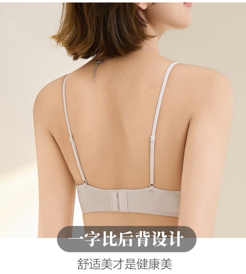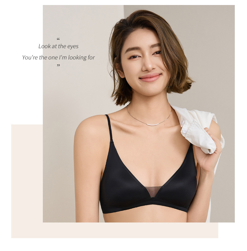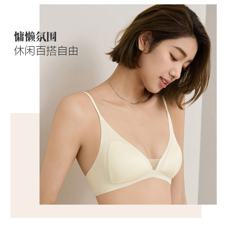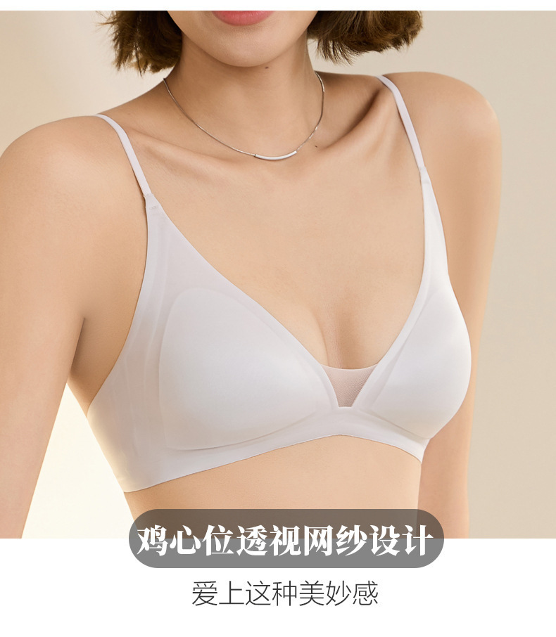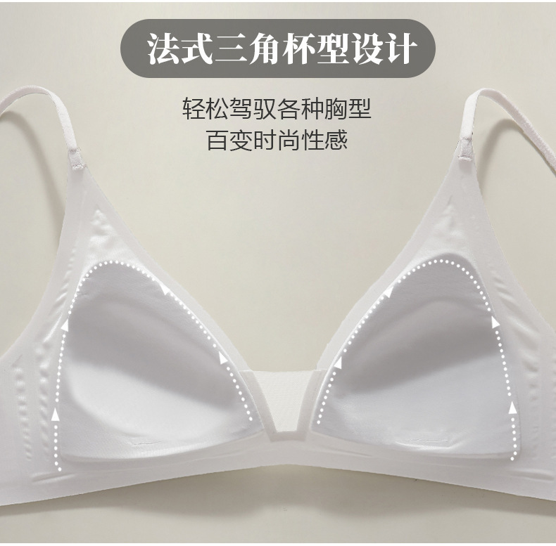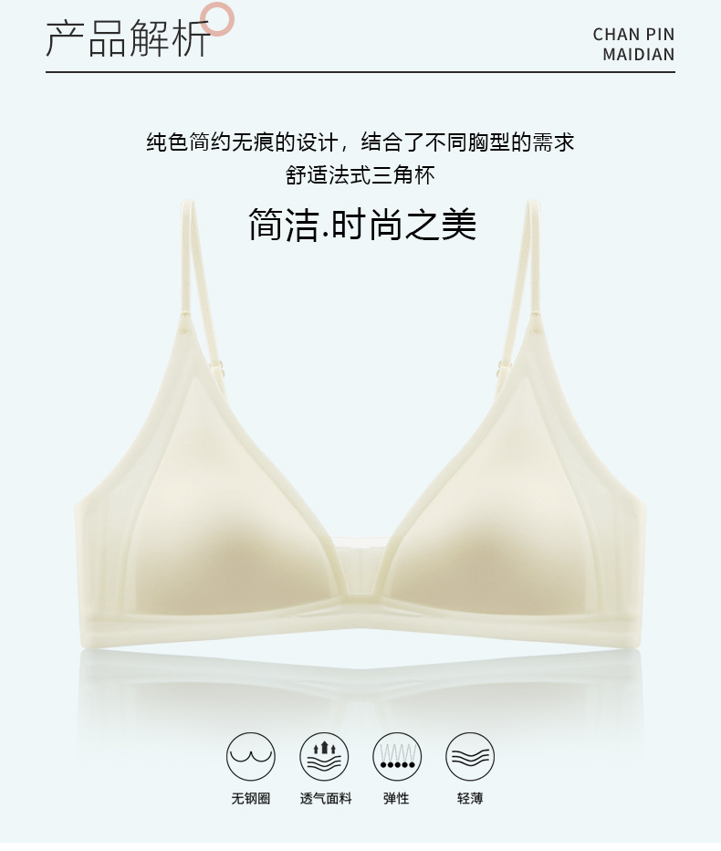 Copa triangular francesa gelatina desnuda sensación suave soporte transpirable sin anillo de acero delgado sostén de texto pequeño fila dos botones ropa interior sin marcas mujeres