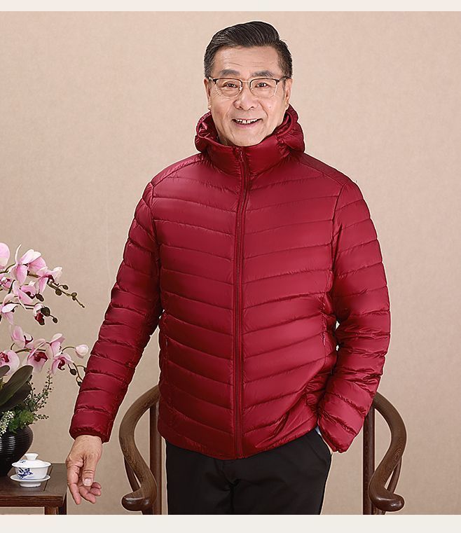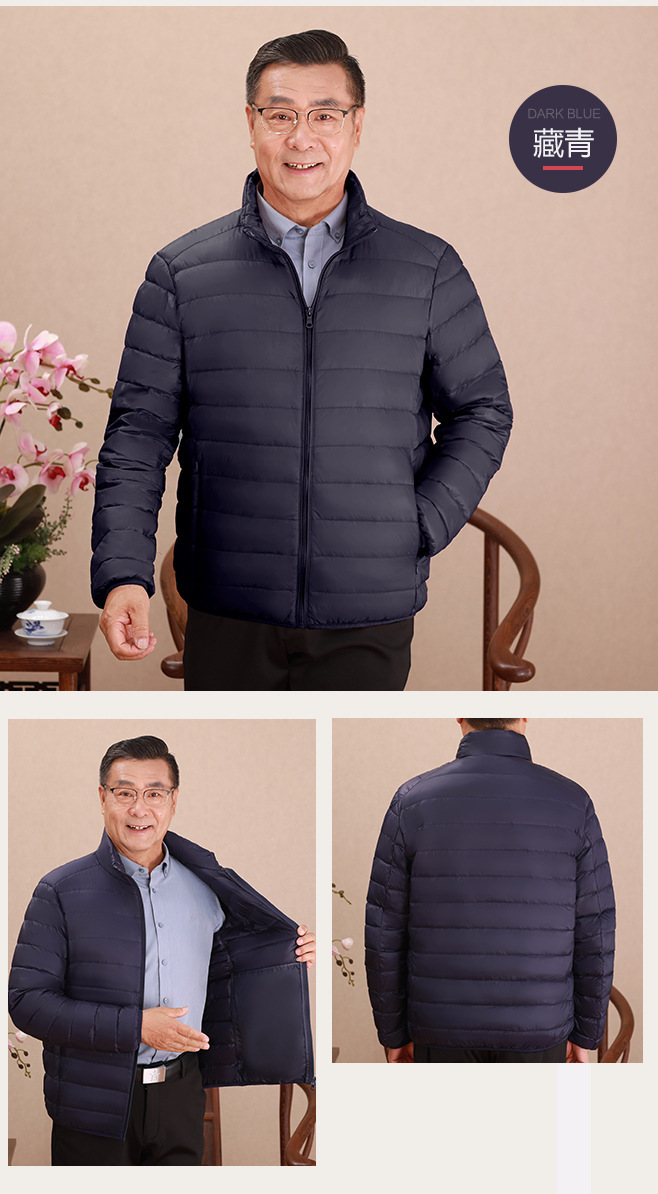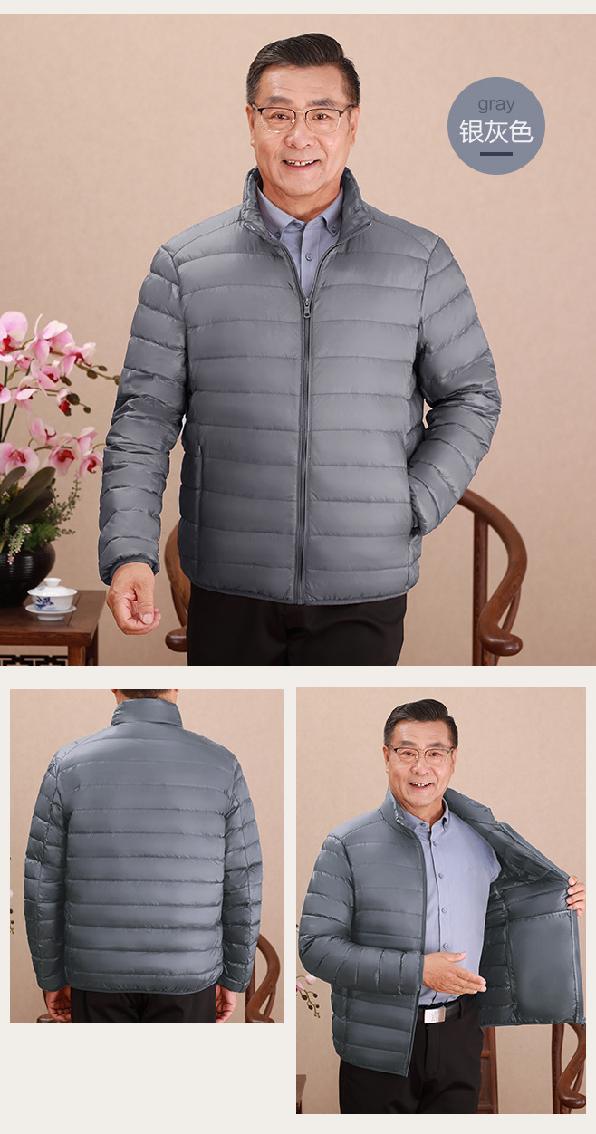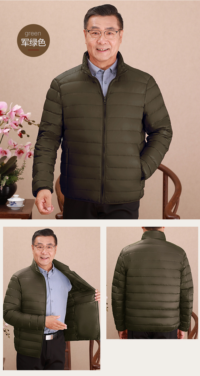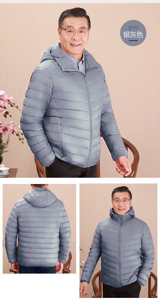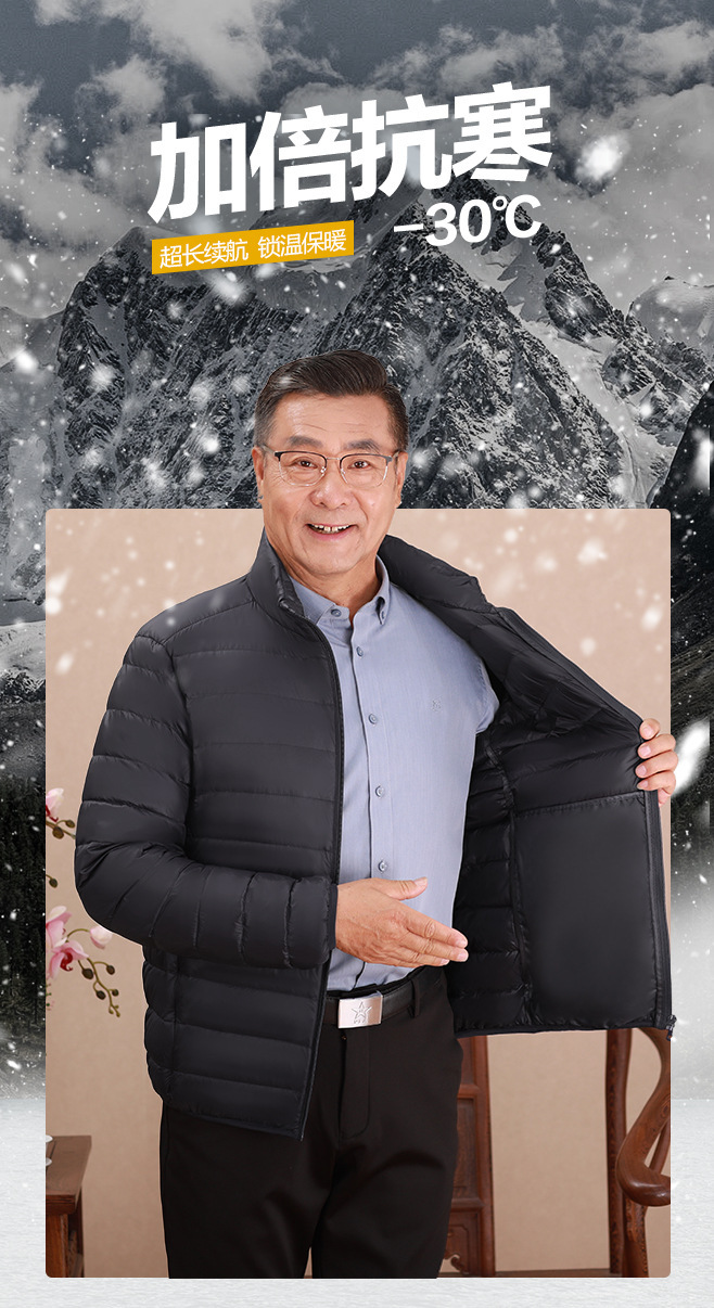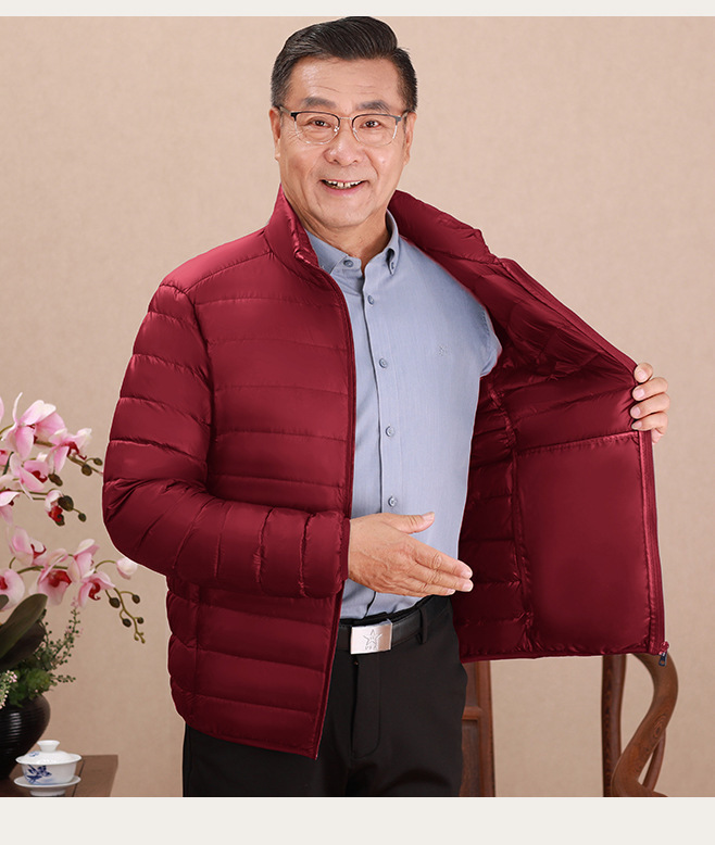 Invierno transfronterizo chaqueta de plumón ligera delgada joven hombre de mediana edad padre vestido de abrigo frío y grueso