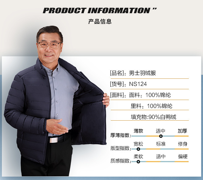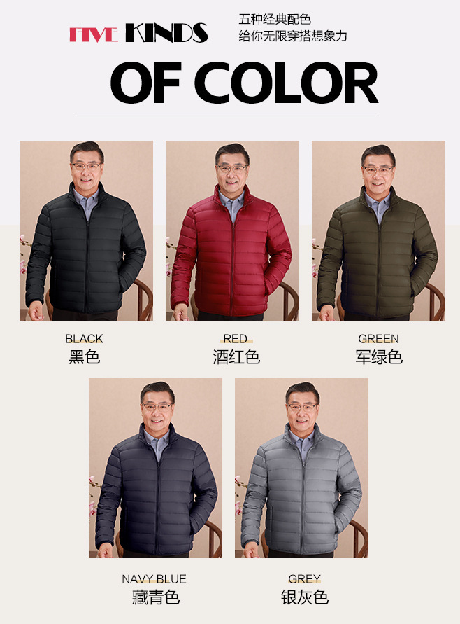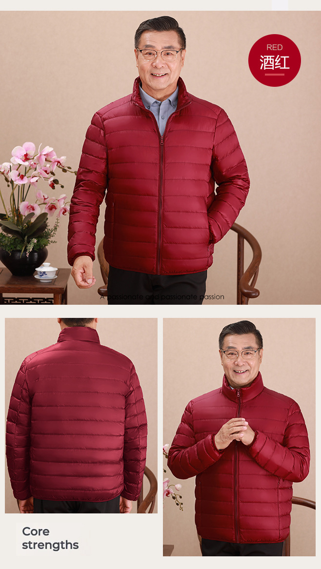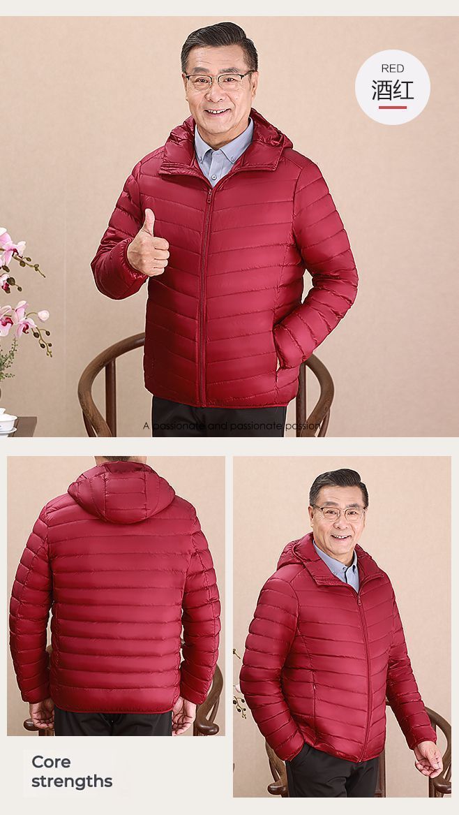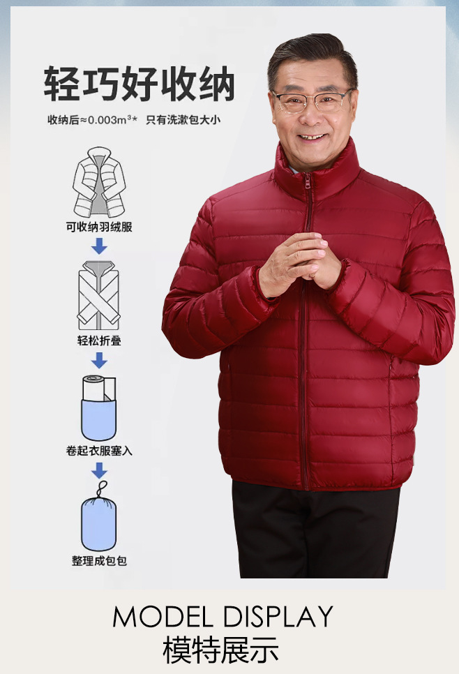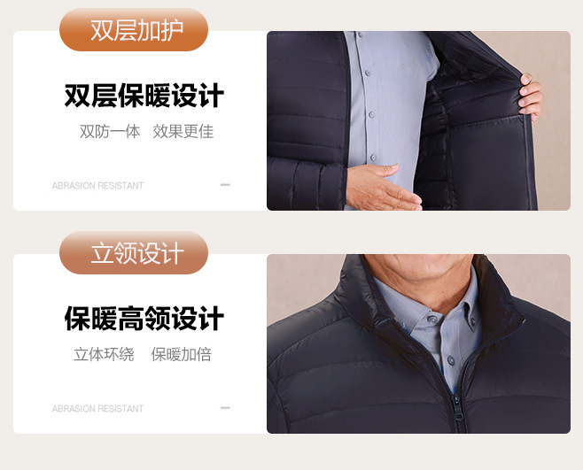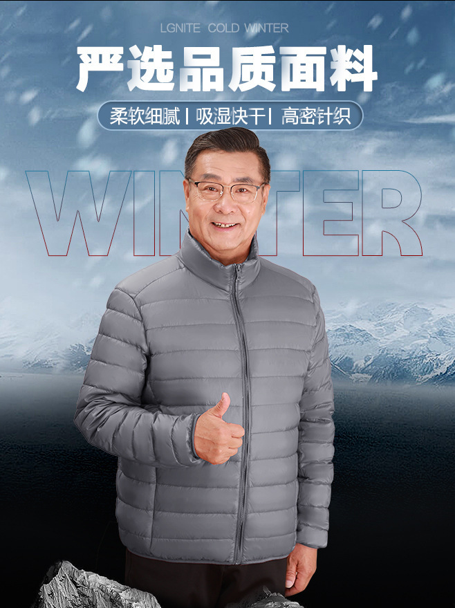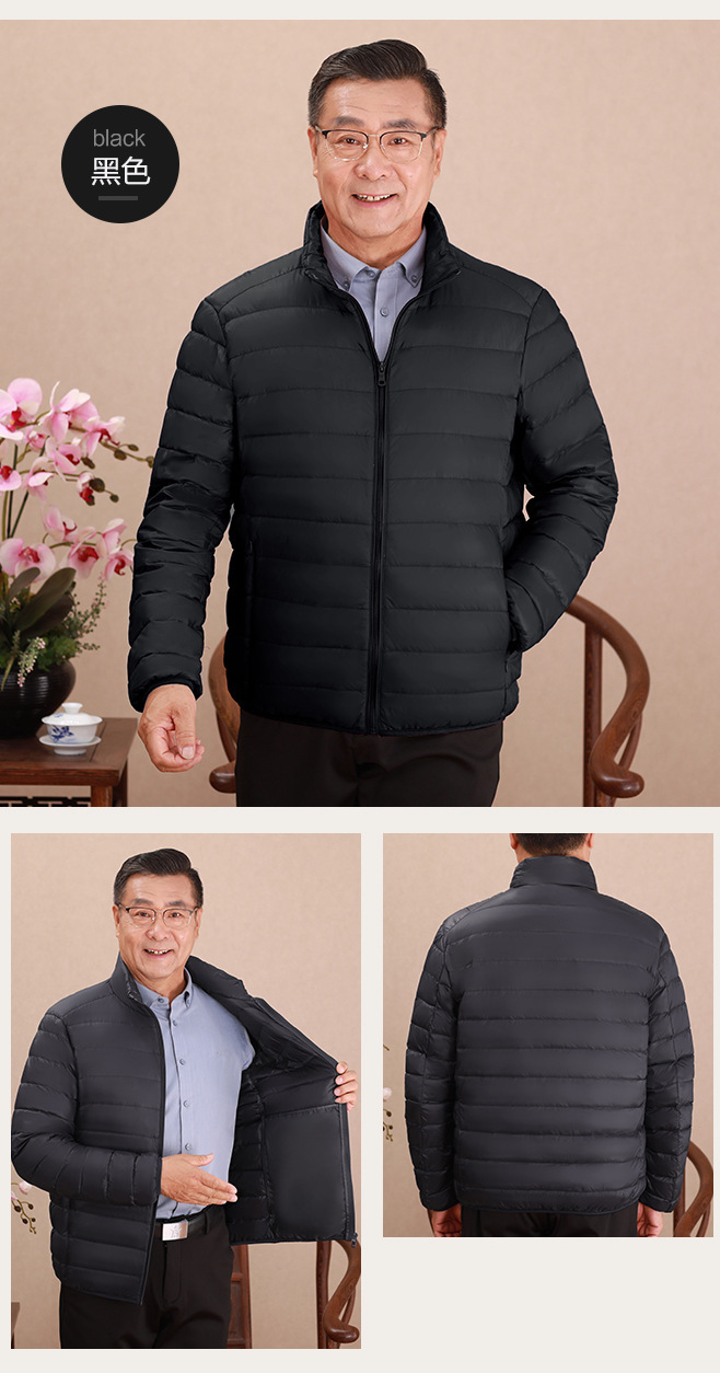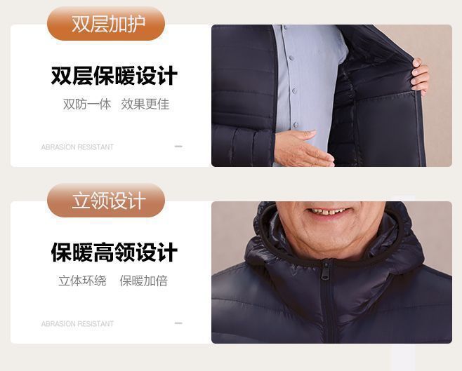 Invierno transfronterizo chaqueta de plumón ligera delgada joven hombre de mediana edad padre vestido de abrigo frío y grueso