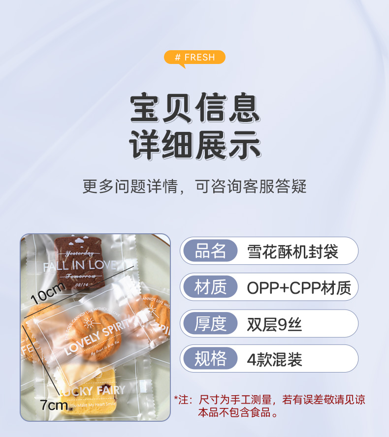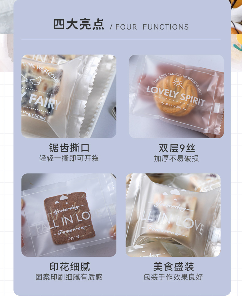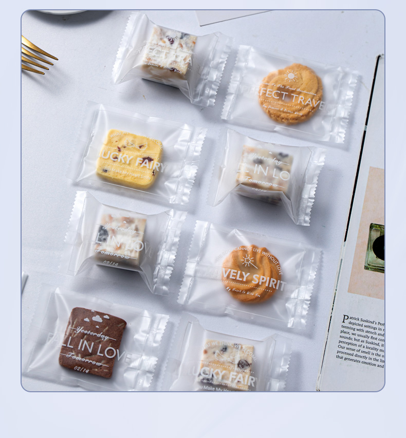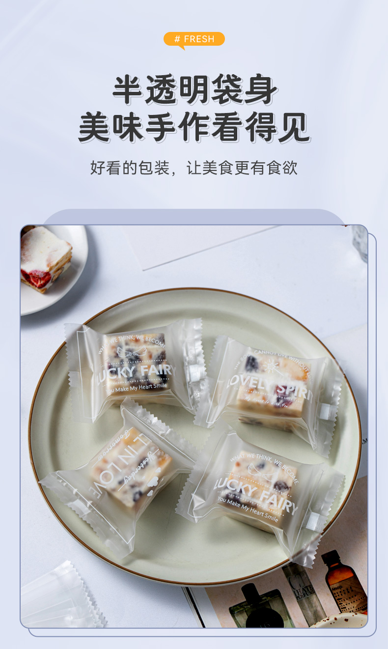 Bolsa de embalaje de copo de nieve, galletas, nougat, leche, dulces, bolsas selladas por máquina, bolsas de embalaje pequeñas, bolsas auto-selladas para hornear