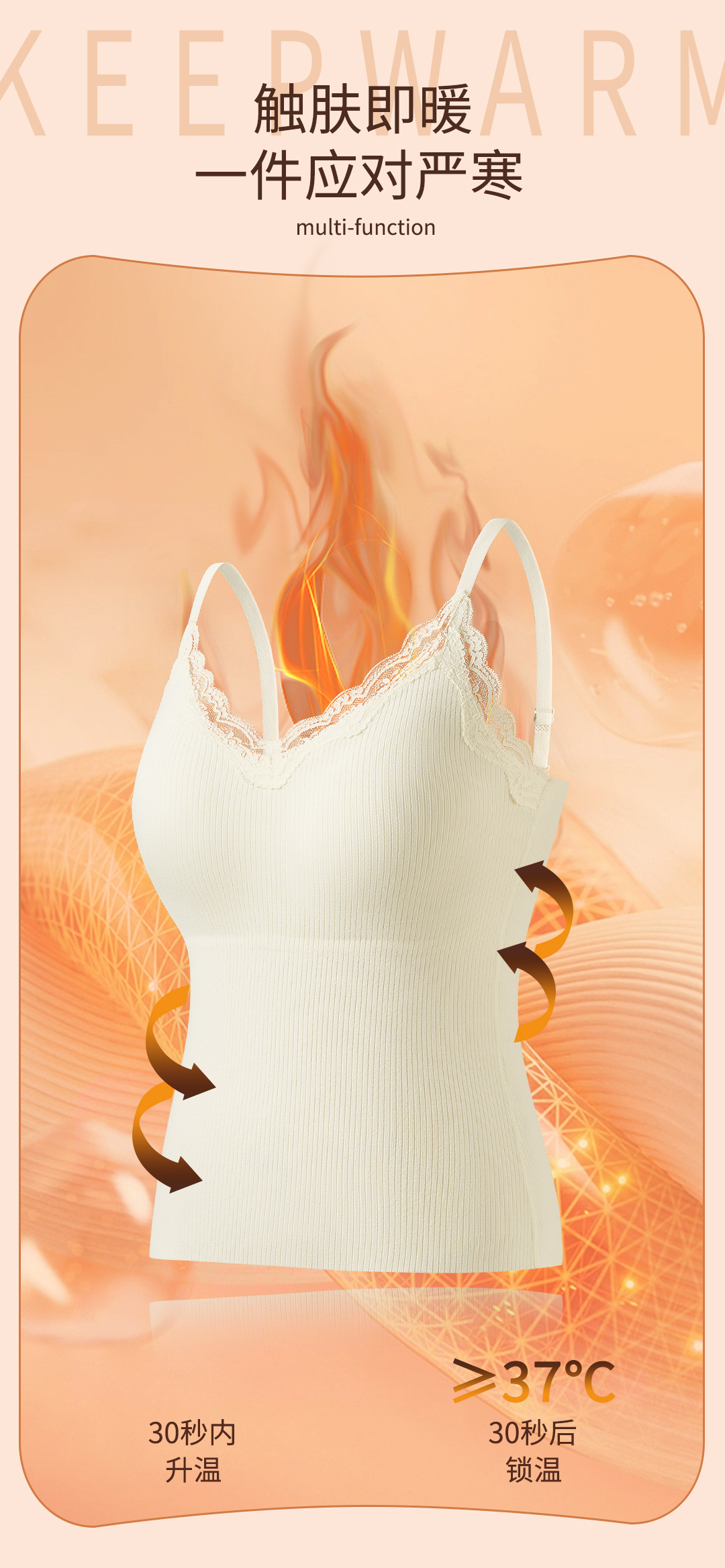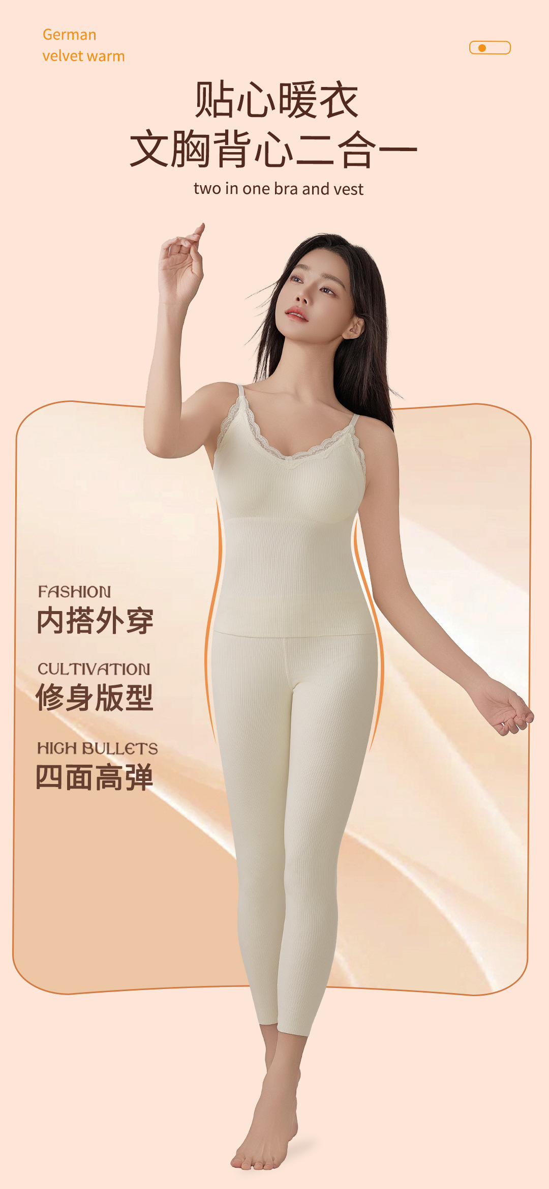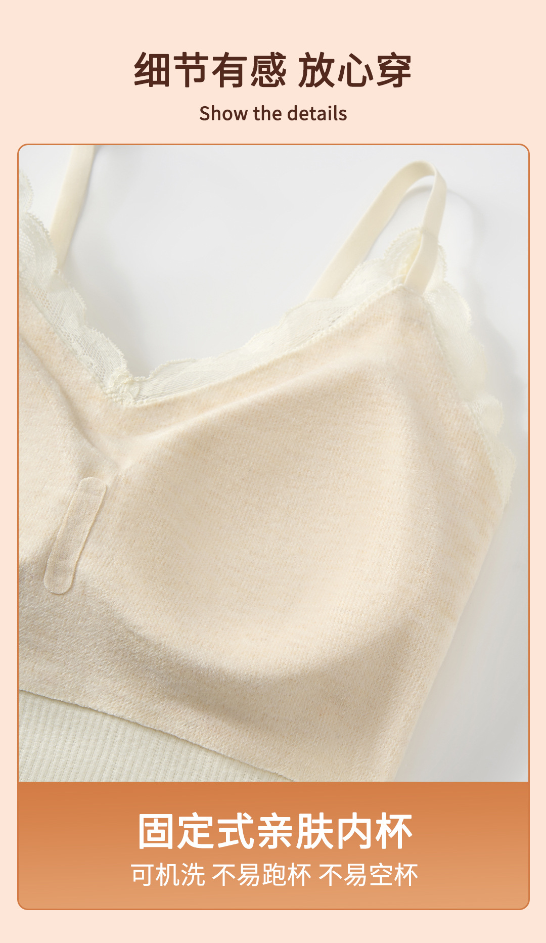 Finna Fu otoño invierno calentamiento ligero reúnido delgado con cabina de encaje con cojín de pecho integrado ropa interior sin marcas para mujeres