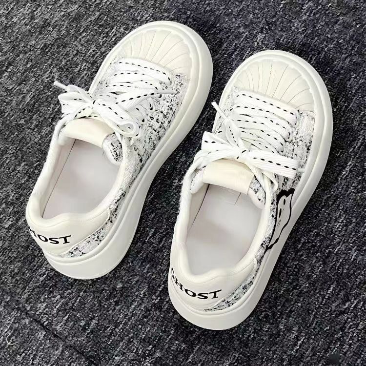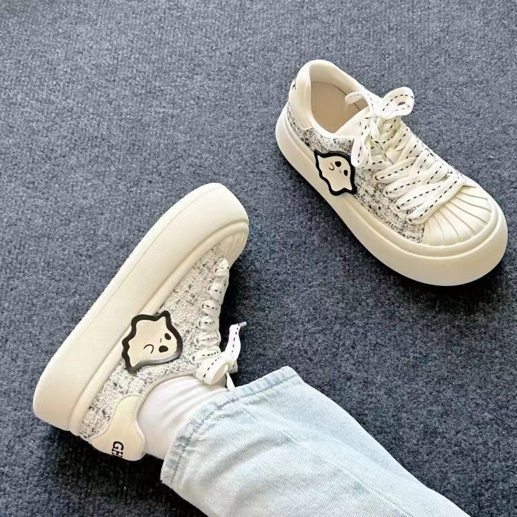 Shell cabeza pequeña zapatos blancos lindos zapatos de mujer 2025 verano nuevo gran altura de fondo grueso zapatos deportivos casuales versátiles