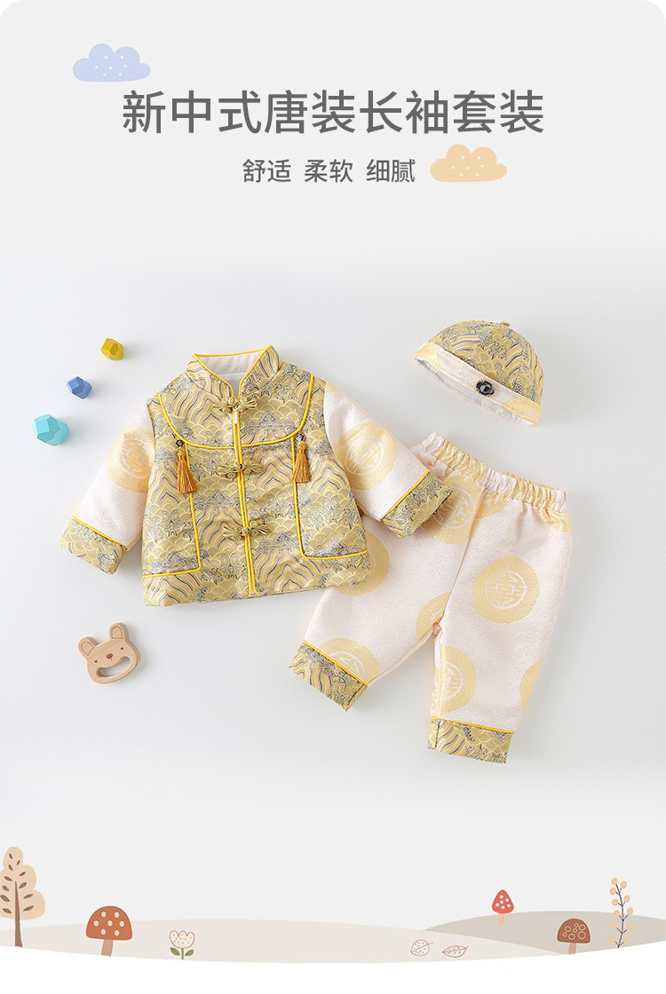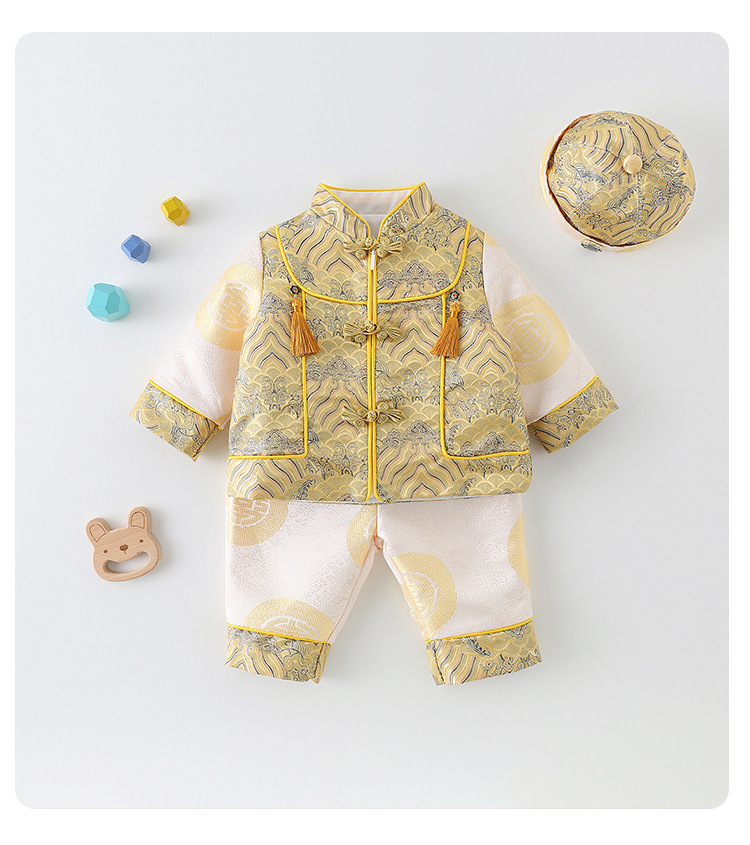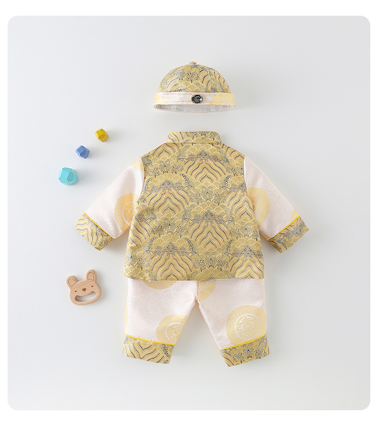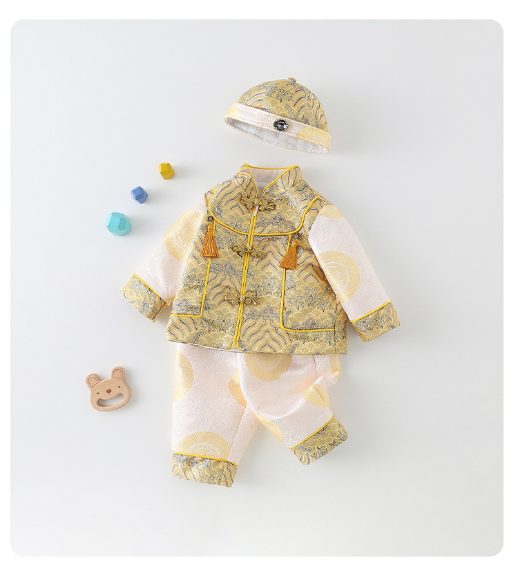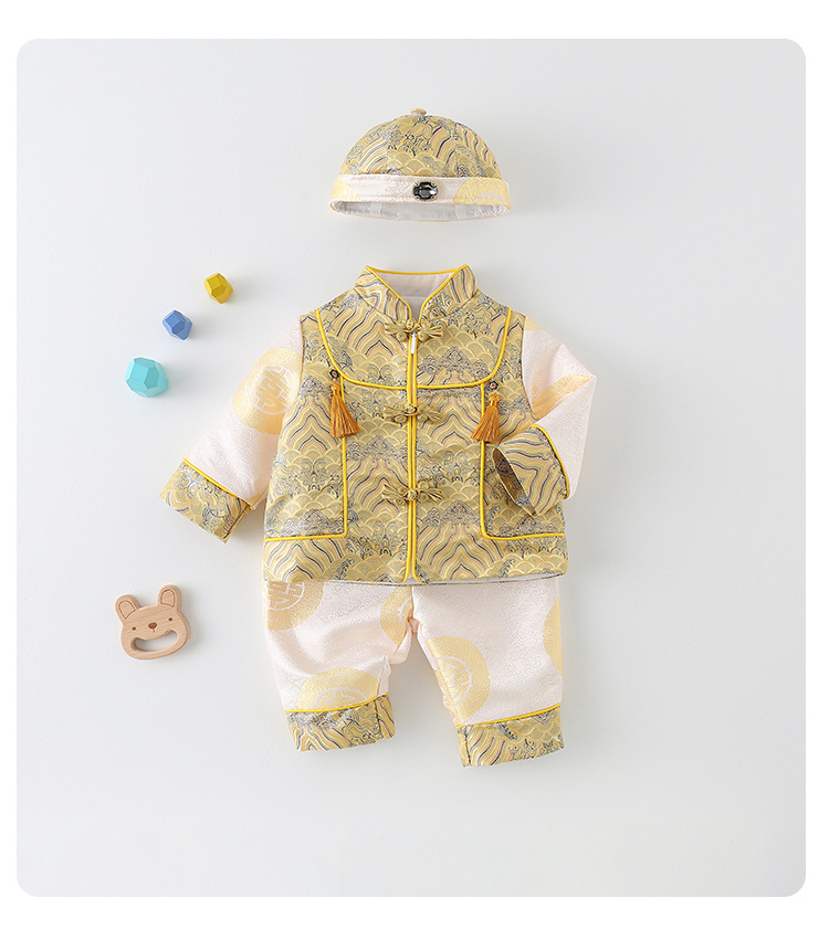 Bebé varón con un aniversario, vestido de Año Nuevo, vestido de estilo chino, vestido de primavera y otoño para niños pequeños, vestido chino