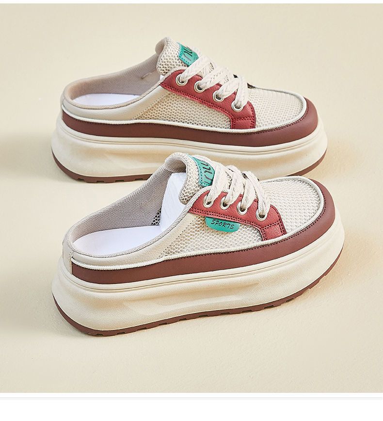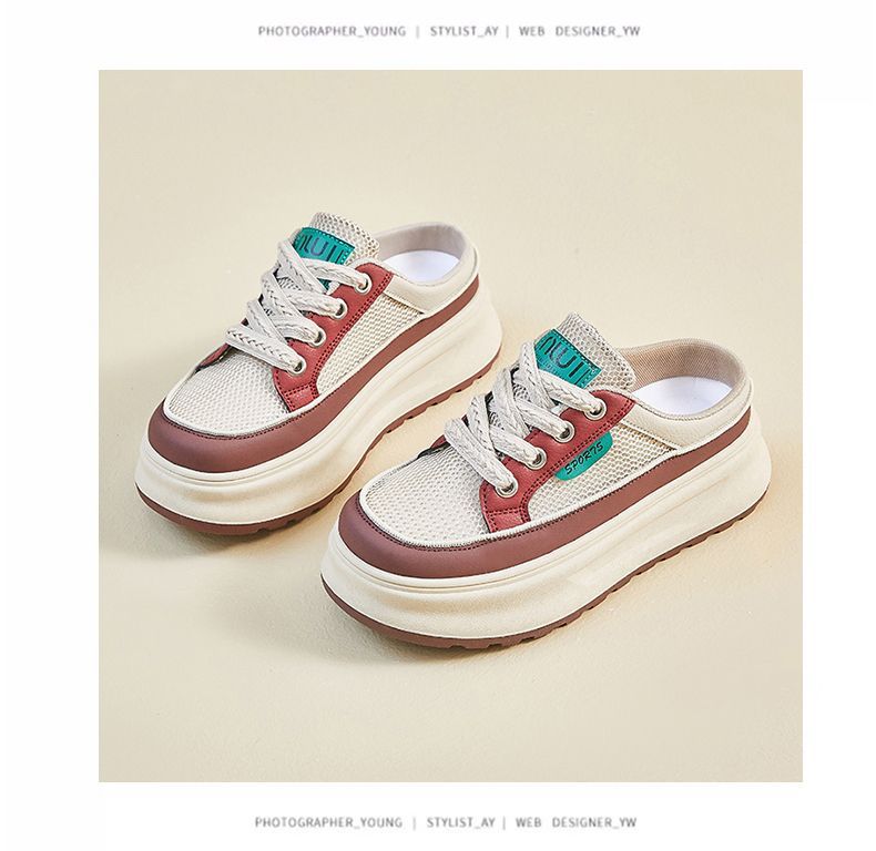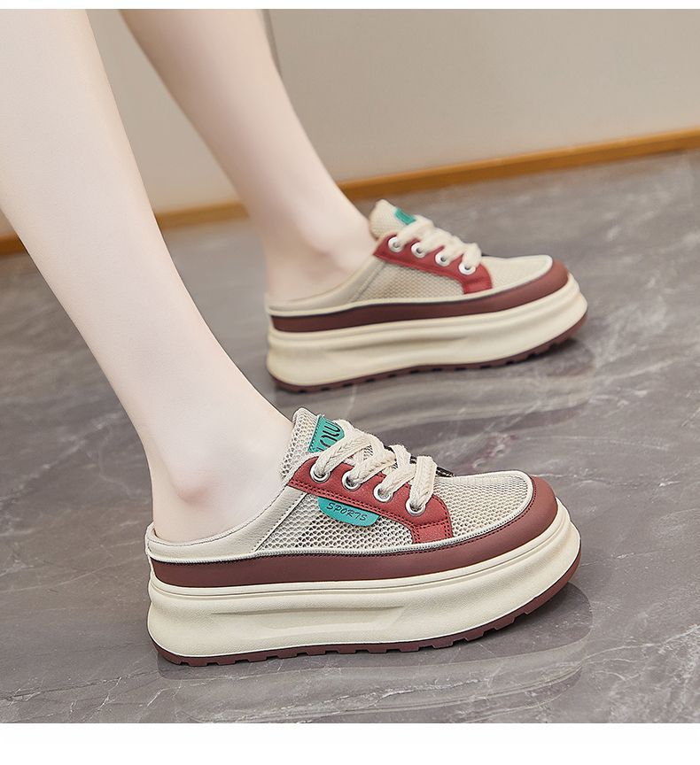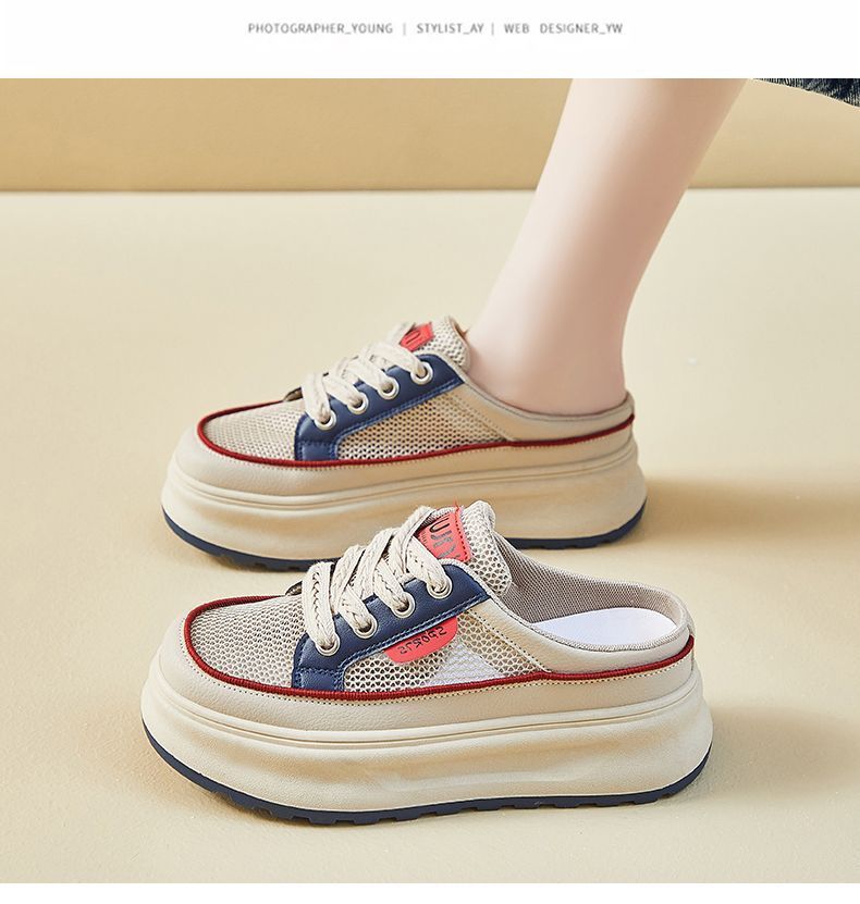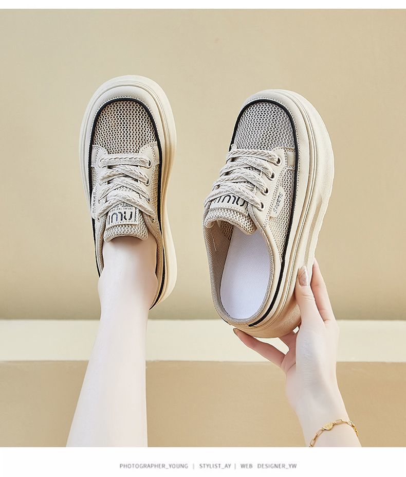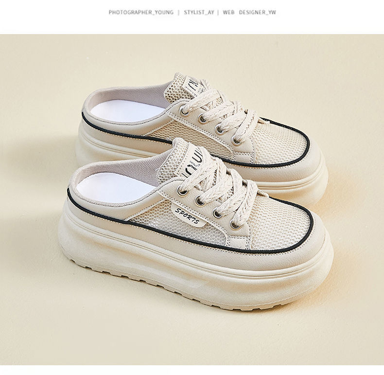 2025 verano medio pequeño zapato blanco nuevo coreano ins estudiantes de malla de fondo grueso casual zapatillas de lazos bajos
