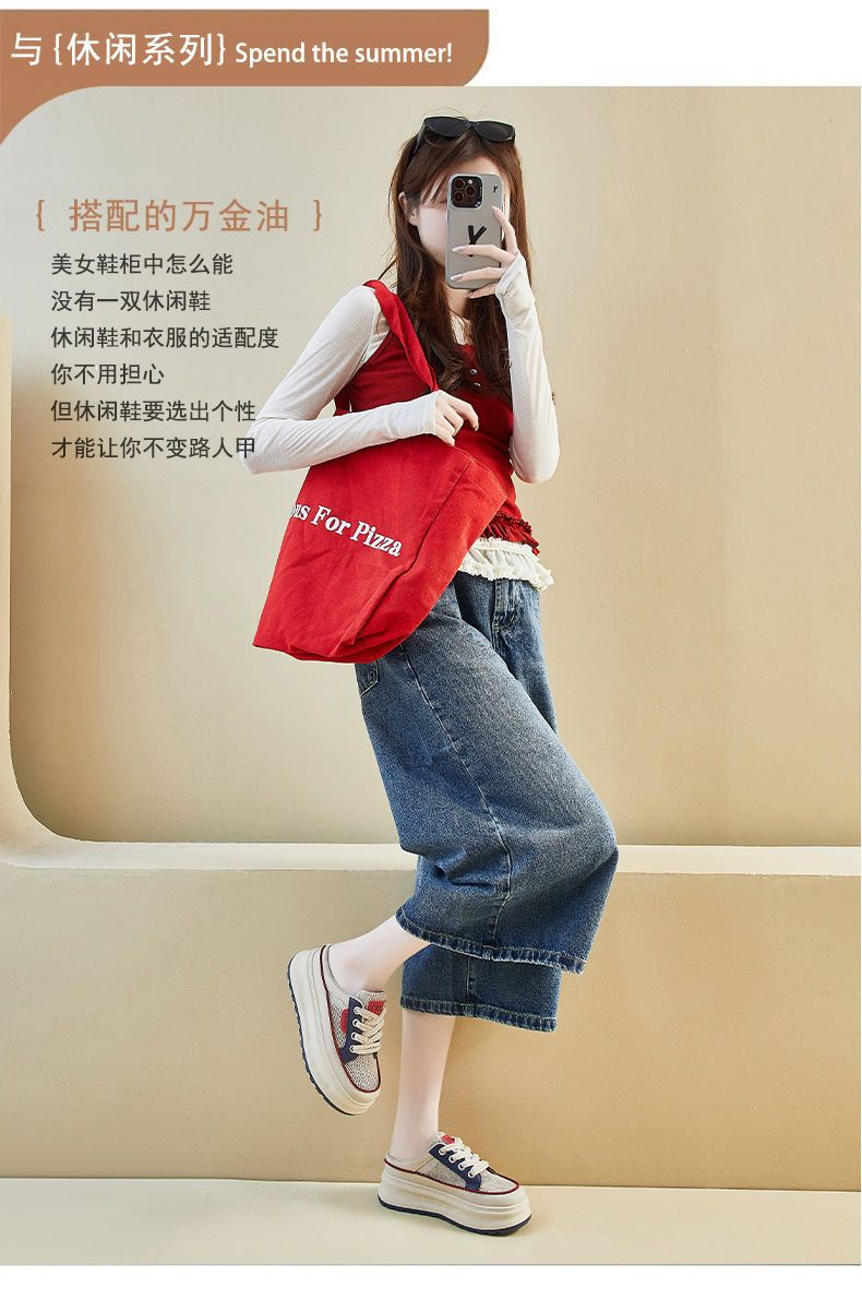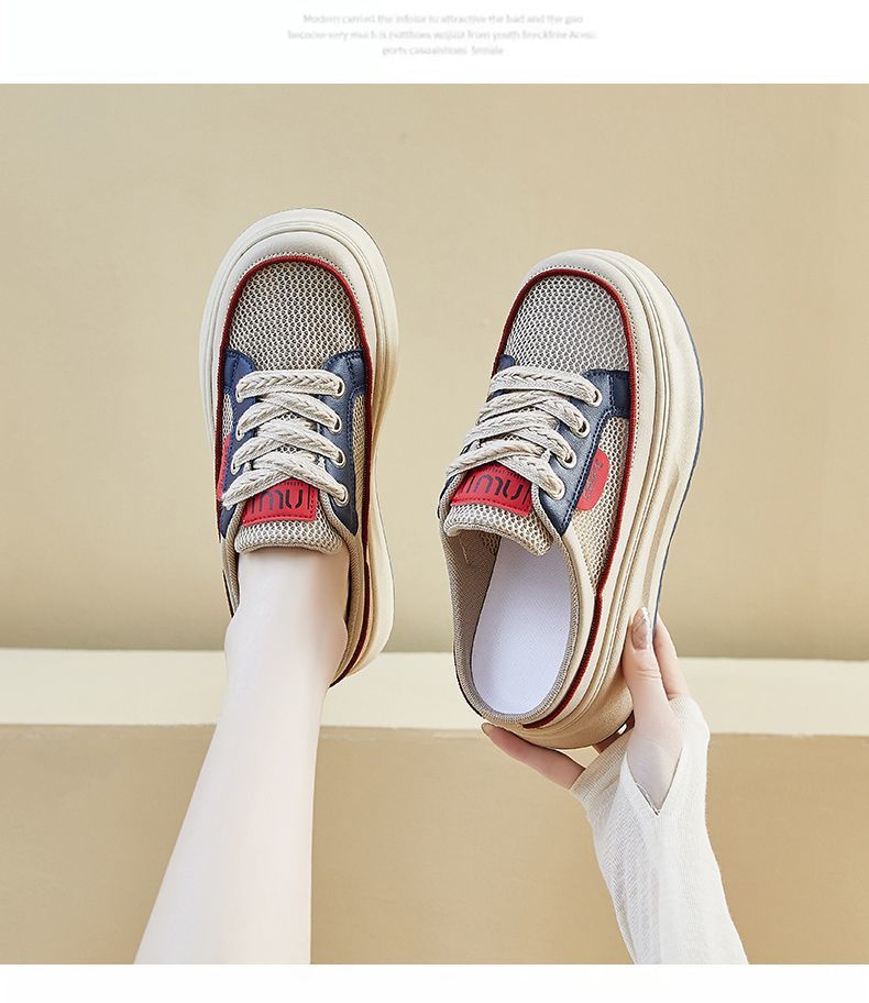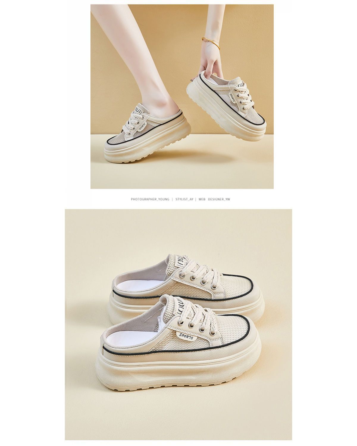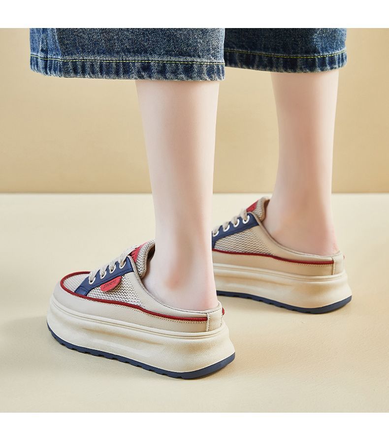 2025 verano medio pequeño zapato blanco nuevo coreano ins estudiantes de malla de fondo grueso casual zapatillas de lazos bajos