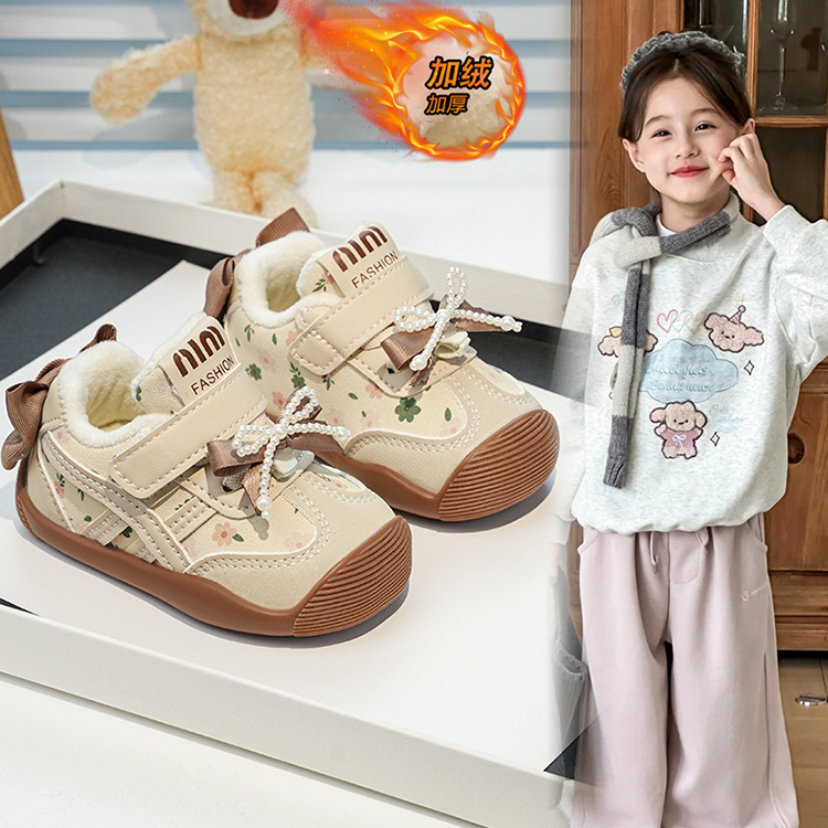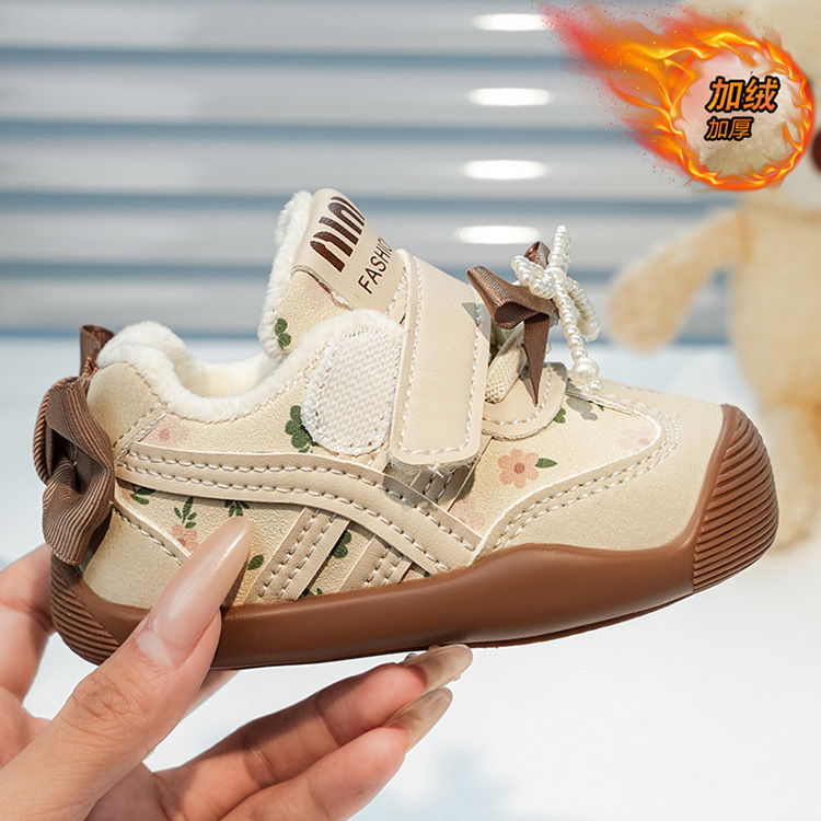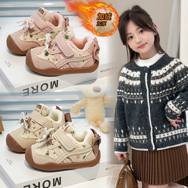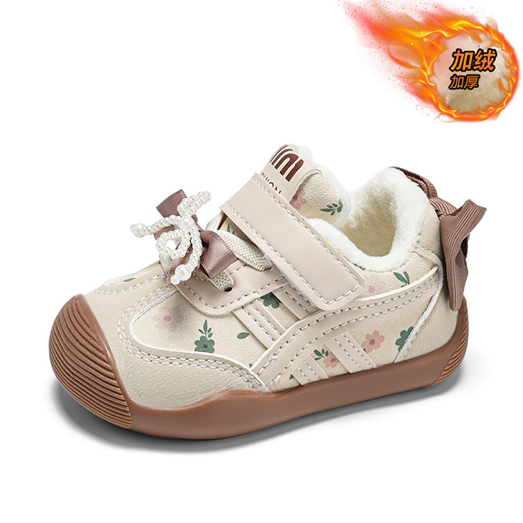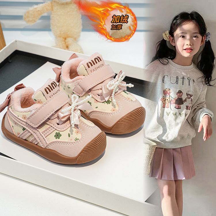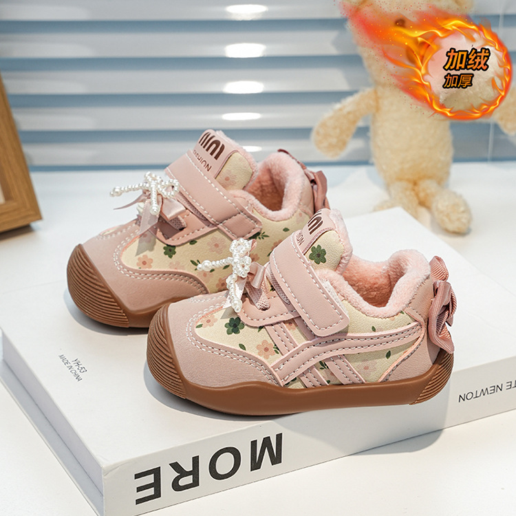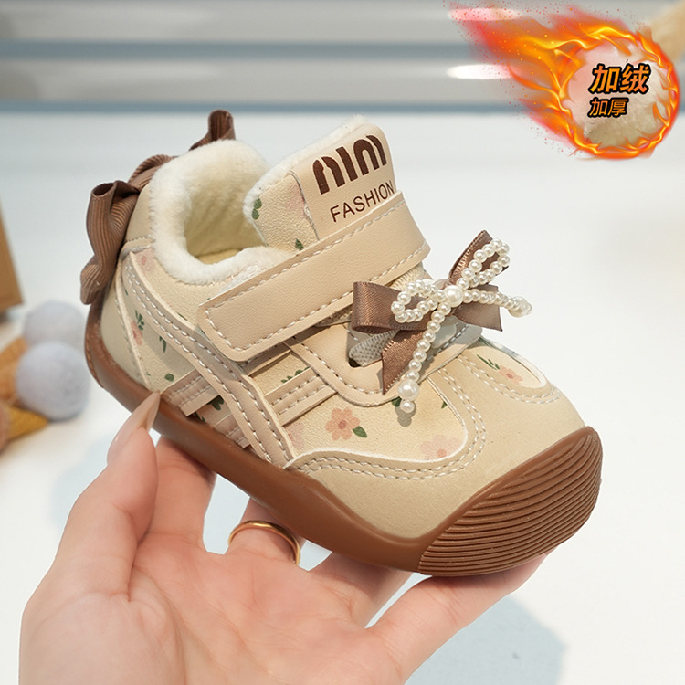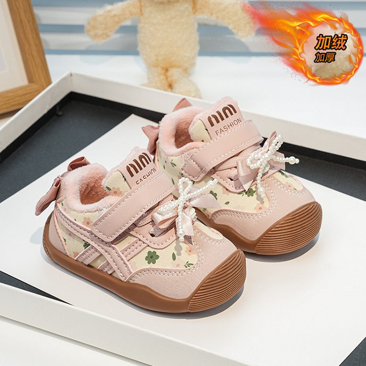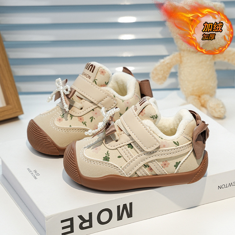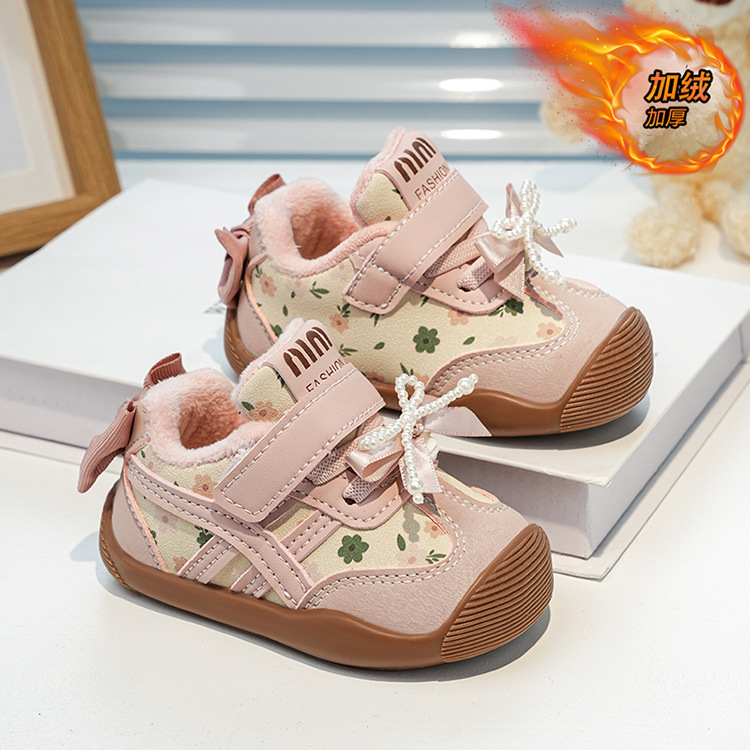 Zapatos de invierno para bebés 0 - 1 - 3 años de edad, zapatos de arco para bebés, zapatos de princesa para niños calentados, zapatos de algodón para niños