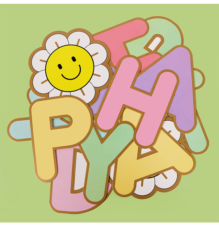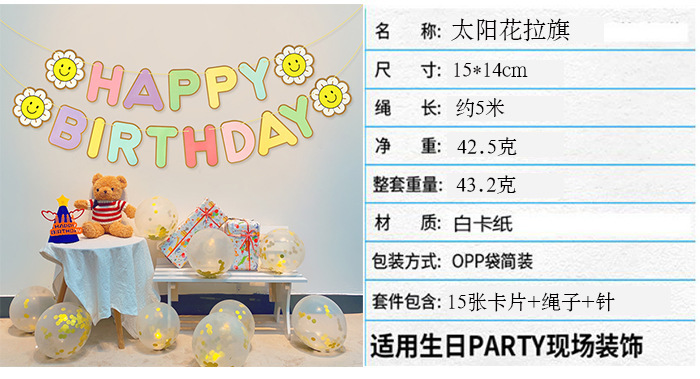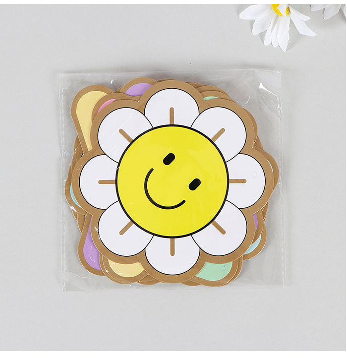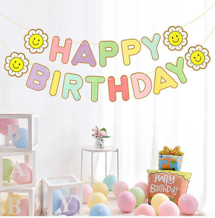 Sunflower pequeña margarita dibujo de bandera de cumpleaños macaron dibujo de bandera de papel dibujo de flores decoración de cumpleaños de bandera de dibujo de bandera