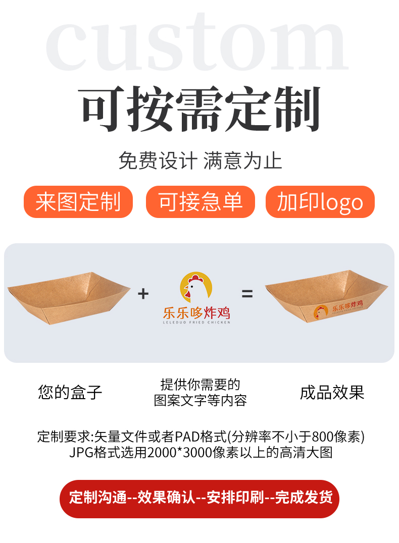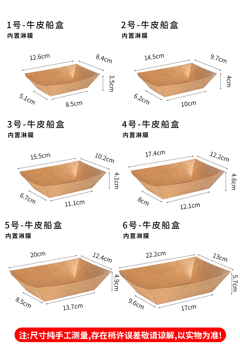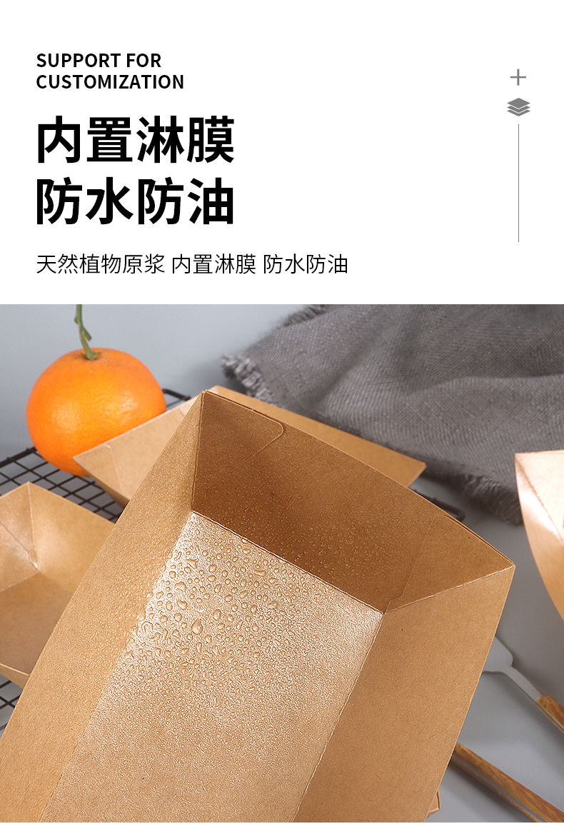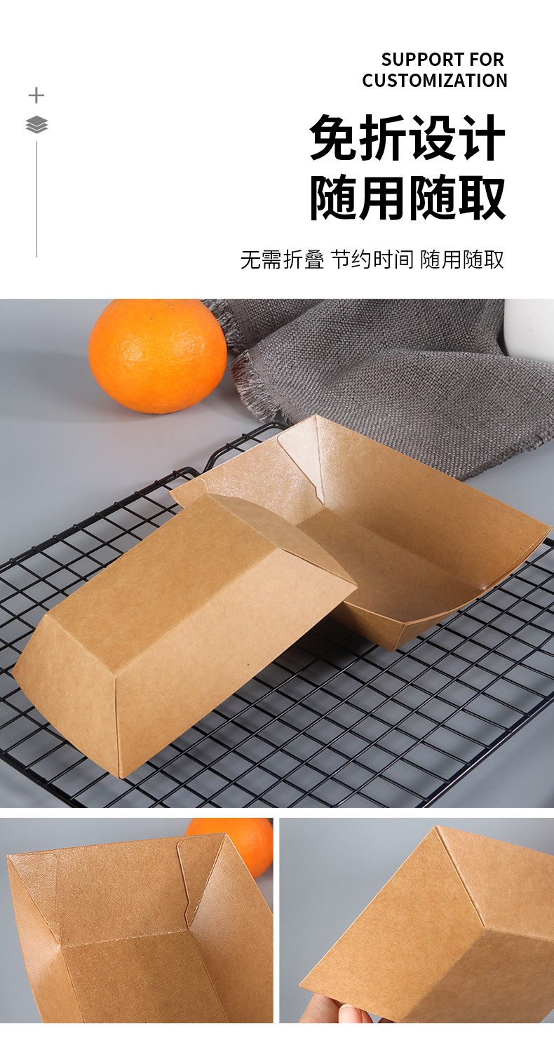 Caja de barco kraft comercial a prueba de aceite gruesa, frita de papas fritas, barbecue, bocadillos en forma de barco, caja de embalaje personalizada