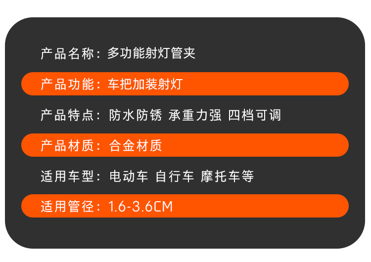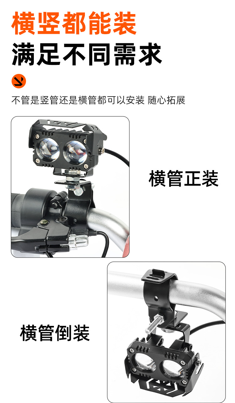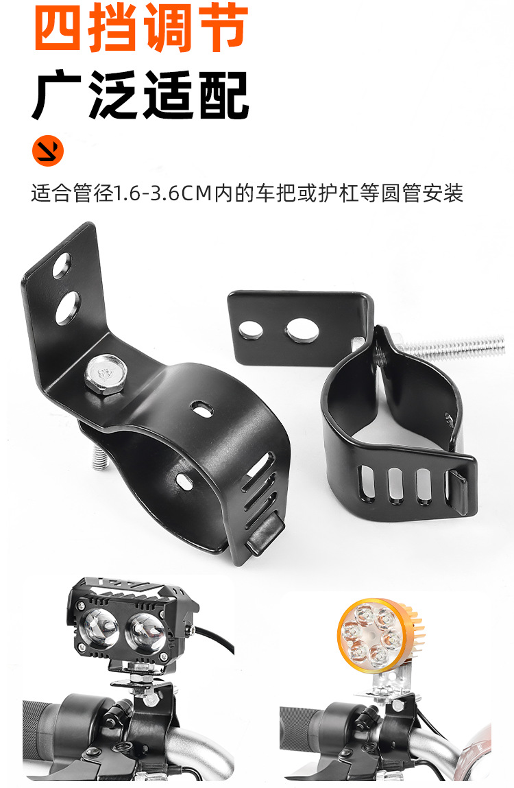Soporte de fijación de parachoques de motocicleta, abrazadera de tubo de amortiguador, varilla de extensión, vehículo eléctrico, foco externo LED, soporte universal