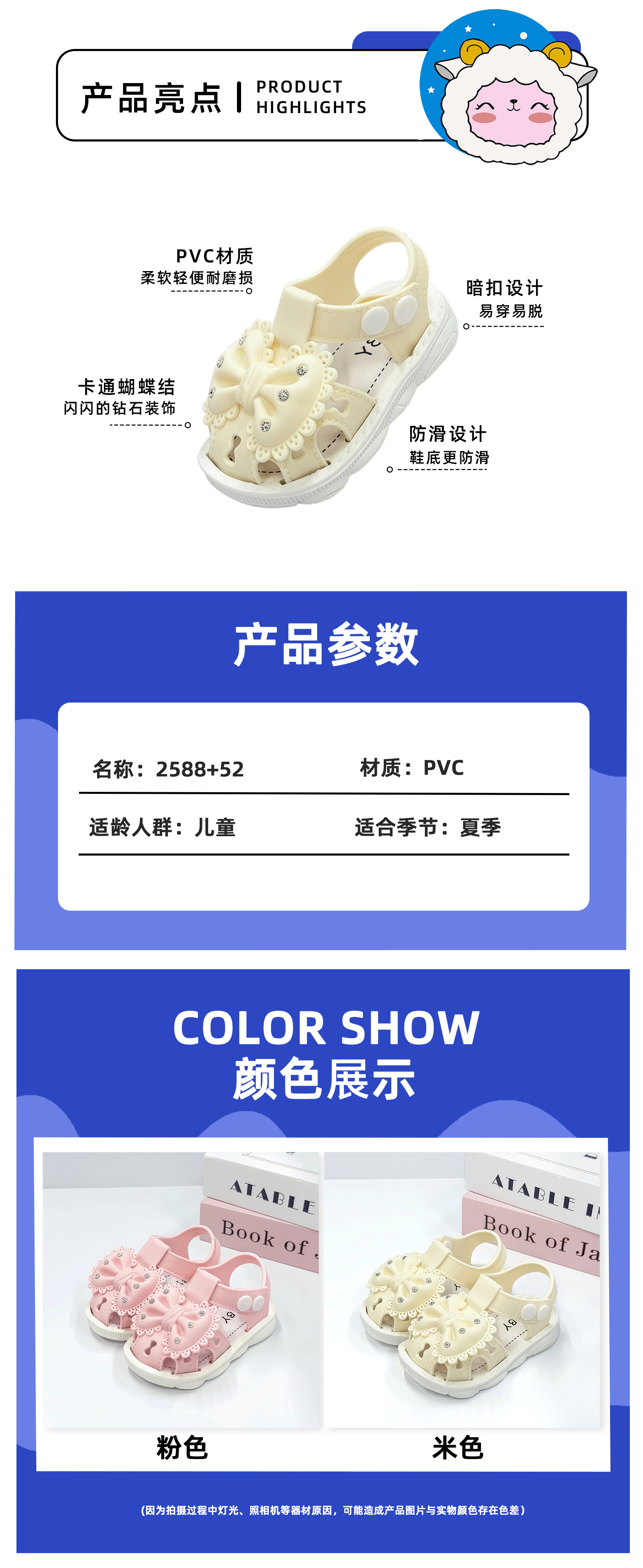 Fábrica de sandalias al por mayor transfronterizas suministro directo de arco de perforación de agua pequeña y media niña bebé zapatos de toddler pequeña princesa