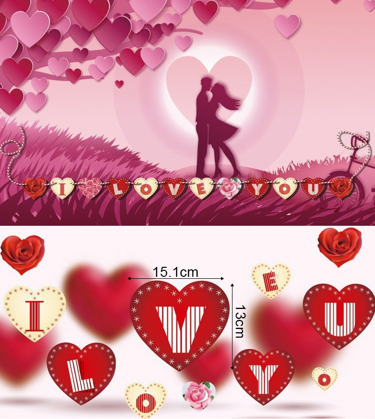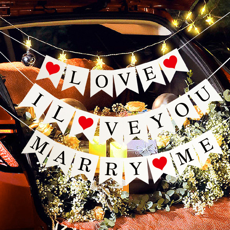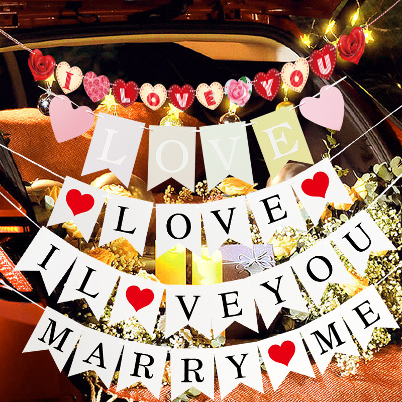Día de San Valentín amor decoración de bandera I love you amor propuesta de boda bandera de decoración de baúl
