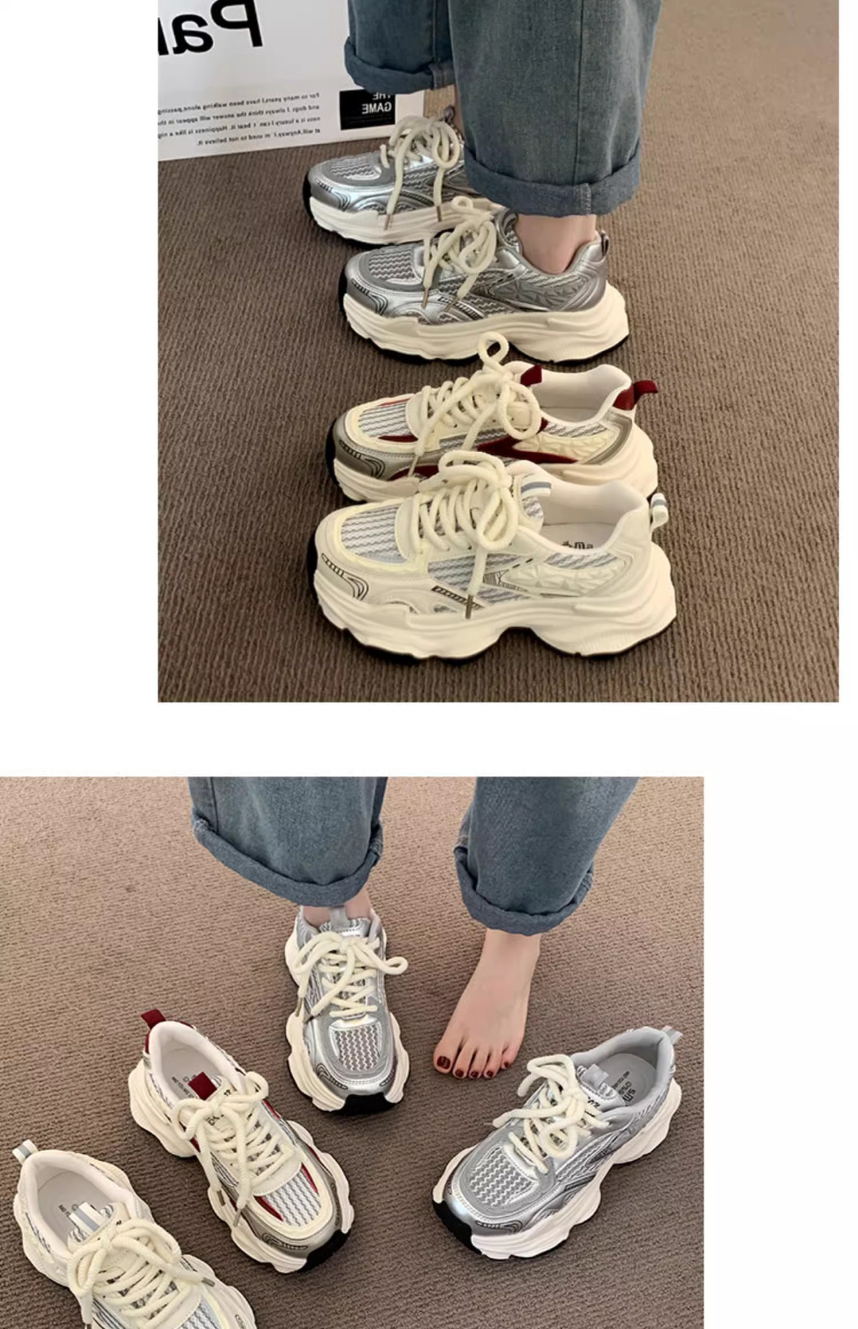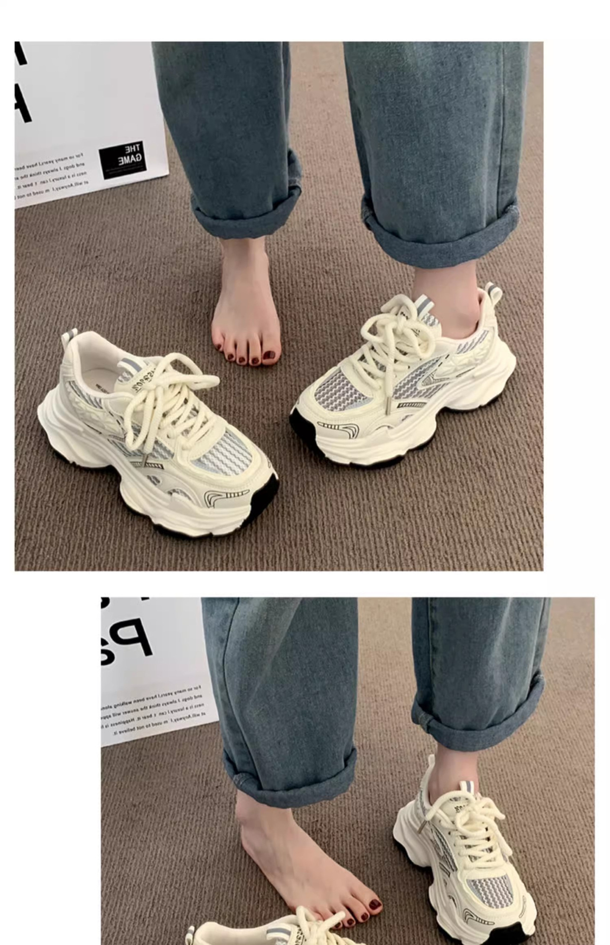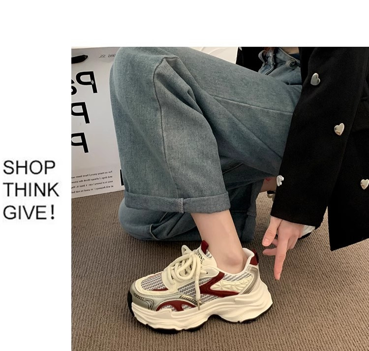 Zapatos de base gruesa para mujeres 2025 nueva primavera y verano transpirable red de estudiantes callejera frita red única zapatos deportivos rojos casuales