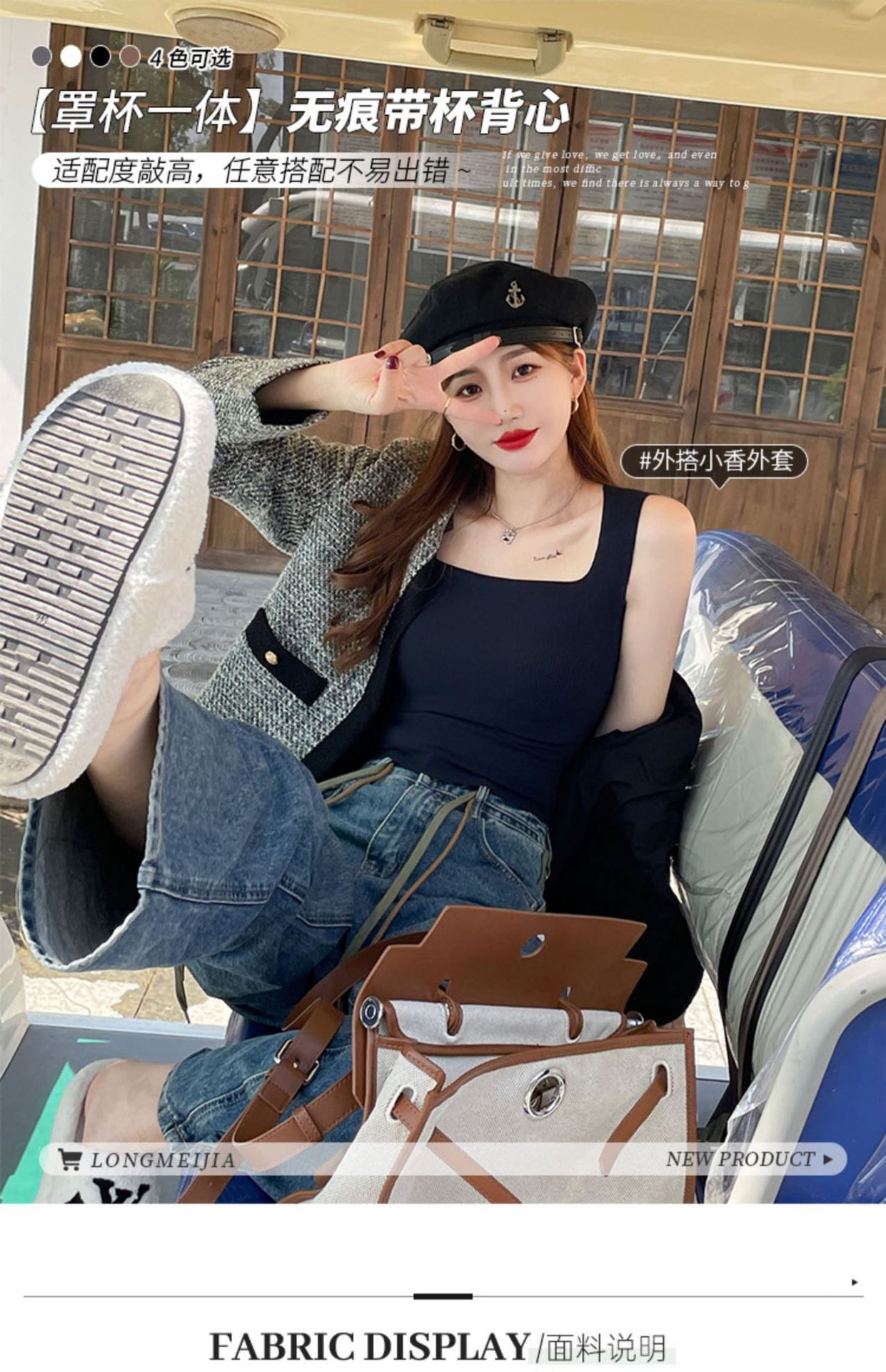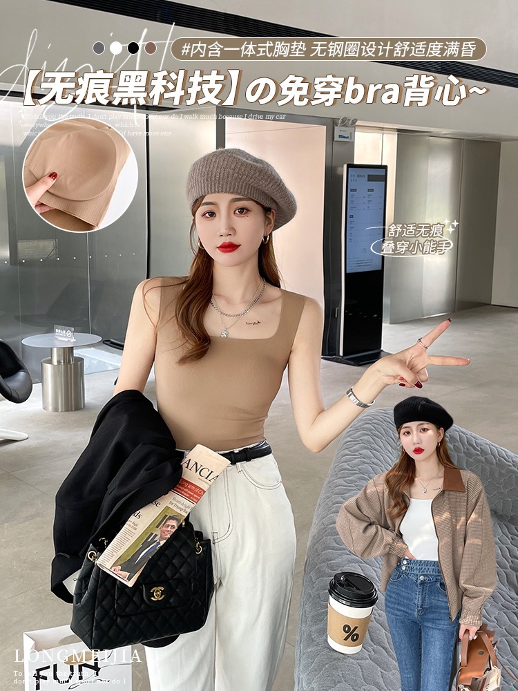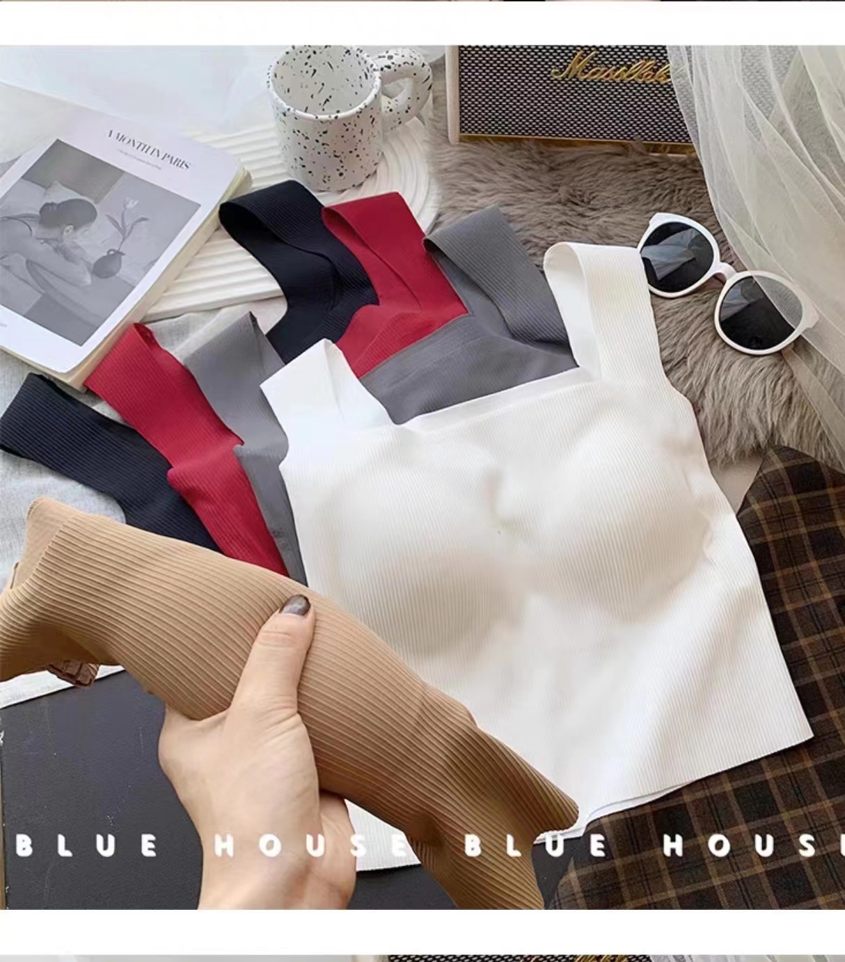 Verano chaleco de cuello cuadrado sujetador hilo integral fija taza cojín de pecho hermosa espalda para usar chicas calientes envueltas en ropa interior de pecho mujer