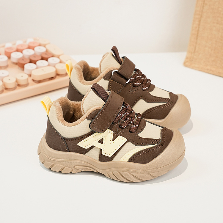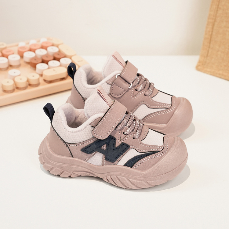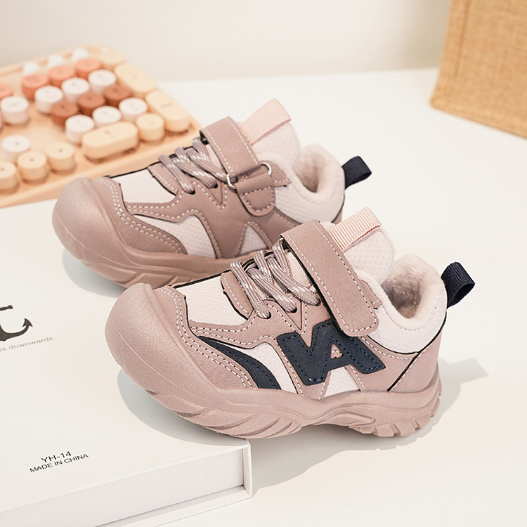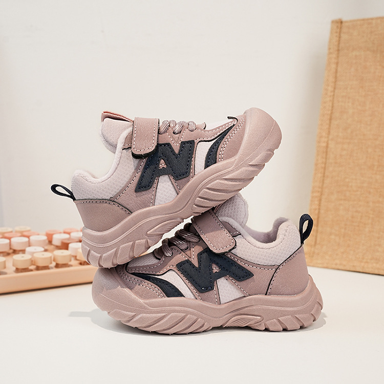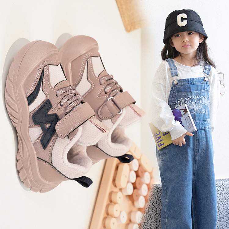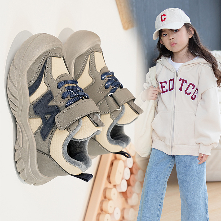 Zapatos deportivos para niños coreanos de estilo universal zapatos de entrenamiento para niñas 2025 invierno nuevos zapatos infantiles para niños con suela suave de terciopelo caliente